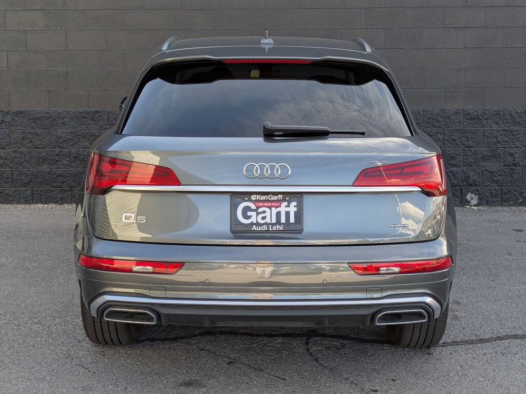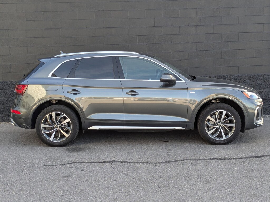 **AUDI CERTIFIED PRE-OWNED** **Daytona Gray Pearl Effect**. 2023 Audi Q5 45 S line Premium quattro quattro 7-Speed Automatic S tronic 2.0L Turbocharged Traditional Certified, 10 Speakers, 4-Wheel Disc Brakes, 5.302 Axle Ratio, ABS brakes, Air Conditioning, Alloy wheels, AM/FM radio, Auto-dimming Rear-View mirror, Automatic temperature control, Brake assist, Bumpers: body-color, Compass, Delay-off headlights, Driver door bin, Driver vanity mirror, Dual front impact airbags, Dual front side impact airbags, Electronic Stability Control, Emergency communication system: Audi connect CARE, Exterior Parking Camera Rear, Four wheel independent suspension, Front anti-roll bar, Front Bucket Seats, Front Center Armrest, Front dual zone A/C, Front fog lights, Front reading lights, Garage door transmitter: HomeLink, Genuine wood console insert, Genuine wood dashboard insert, Genuine wood door panel insert, Heated 8-Way Power Front Bucket Seats, Heated door mirrors, Heated front seats, Illuminated entry, Leather Seating Surfaces, Leather Shift Knob, Low tire pressure warning, Occupant sensing airbag, Outside temperature display, Overhead airbag, Overhead console, Panic alarm, Passenger door bin, Passenger vanity mirror, Power door mirrors, Power driver seat, Power Liftgate, Power passenger seat, Power steering, Power windows, Radio data system, Radio: Audi Sound System, Rain sensing wipers, Rear air conditioning, Rear anti-roll bar, Rear fog lights, Rear reading lights, Rear seat center armrest, Rear window defroster, Rear window wiper, Remote keyless entry, Roof rack, Security system, Speed control, Speed-sensing steering, Speed-Sensitive Wipers, Split folding rear seat, Spoiler, Steering wheel mounted audio controls, Tachometer, Telescoping steering wheel, Tilt steering wheel, Traction control, Trip computer, Turn signal indicator mirrors, Variably intermittent wipers, Wheels: 18 5-Arm-Turbine Design.Recent Arrival! 22/29 City/Highway MPG