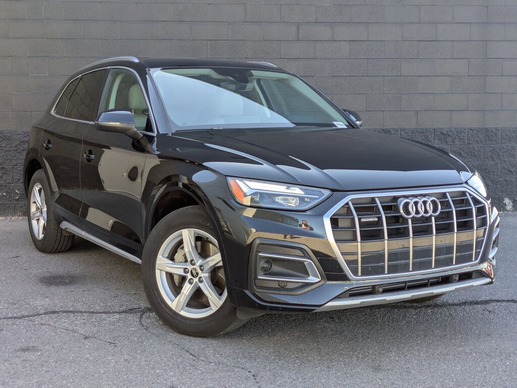 **AUDI CERTIFIED PRE-OWNED** Mythos Black Metallic 2023 Audi Q5 40 Premium quattro quattro 7-Speed Automatic S tronic 2.0L Turbocharged Gray Leather, 10 Speakers, 4-Wheel Disc Brakes, 5.302 Axle Ratio, ABS brakes, Air Conditioning, Alloy wheels, AM/FM radio, Audi Advanced Key, Audi Beam-Rings, Auto High-beam Headlights, Auto-Dimming Power Folding Exterior Mirrors, Auto-dimming Rear-View mirror, Automatic temperature control, Brake assist, Bumpers: body-color, Compass, Convenience Package, Delay-off headlights, Driver door bin, Driver Seat & Mirror Memory, Driver vanity mirror, Dual front impact airbags, Dual front side impact airbags, Electronic Stability Control, Emergency communication system: Audi connect CARE, Exterior Parking Camera Rear, Four wheel independent suspension, Front anti-roll bar, Front Bucket Seats, Front Center Armrest, Front dual zone A/C, Front fog lights, Front reading lights, Garage door transmitter: HomeLink, Genuine wood console insert, Genuine wood dashboard insert, Genuine wood door panel insert, Heated 8-Way Power Front Bucket Seats, Heated door mirrors, Heated front seats, Heated Steering Wheel, Illuminated entry, Integrated Toll Module Delete (DISC), Leather Seating Surfaces, Leather Shift Knob, Low tire pressure warning, Occupant sensing airbag, Outside temperature display, Overhead airbag, Overhead console, Panic alarm, Passenger door bin, Passenger vanity mirror, Power door mirrors, Power driver seat, Power Liftgate, Power passenger seat, Power steering, Power windows, Privacy Trunk Cover, Radio data system, Radio: Audi Sound System, Rain sensing wipers, Rear air conditioning, Rear anti-roll bar, Rear fog lights, Rear reading lights, Rear seat center armrest, Rear window defroster, Rear window wiper, Remote keyless entry, Roof rack, Security system, SiriusXM w/360L, Speed control, Speed-sensing steering, Speed-Sensitive Wipers, Split folding rear seat, Spoiler, Steering wheel mounted audio controls, Tachometer, Telescoping steering wheel, Tilt steering wheel, Traction control, Trip computer, Turn signal indicator mirrors, Variably intermittent wipers, Wheels: 18 5-Arm-Star Design, Gray Leather.Recent Arrival! 23/29 City/Highway MPG