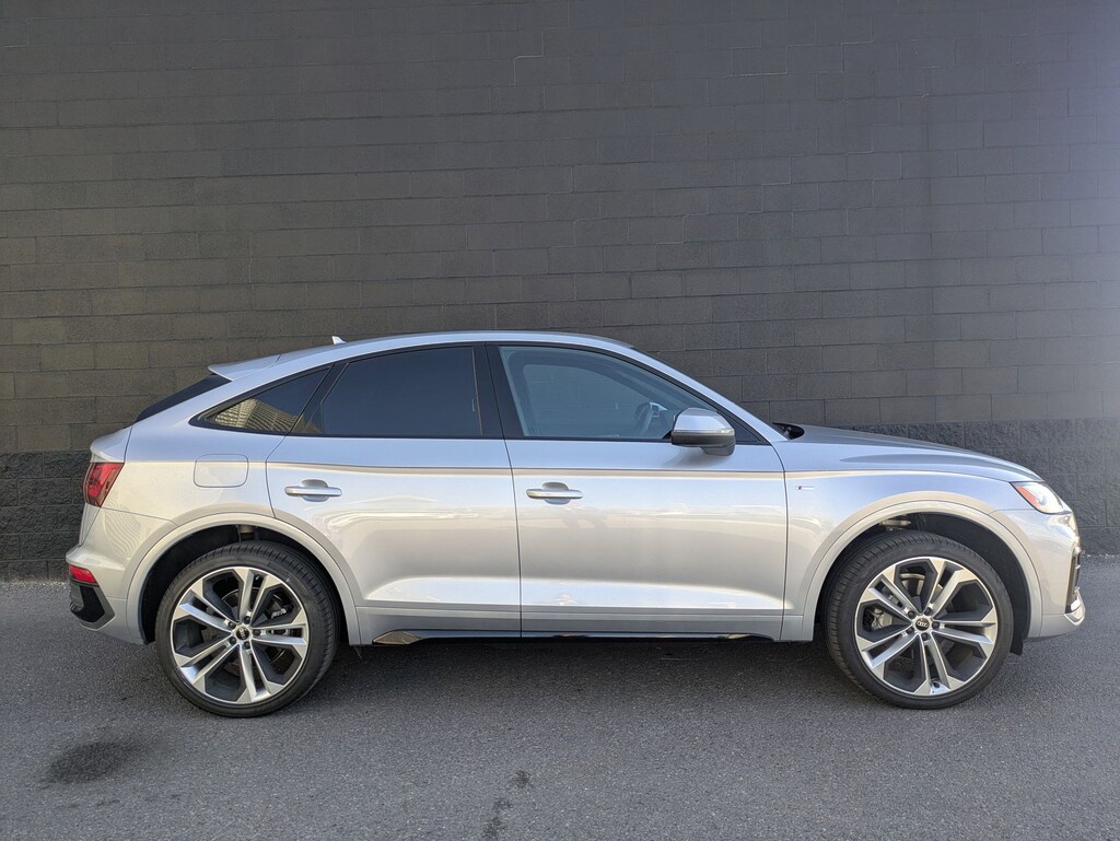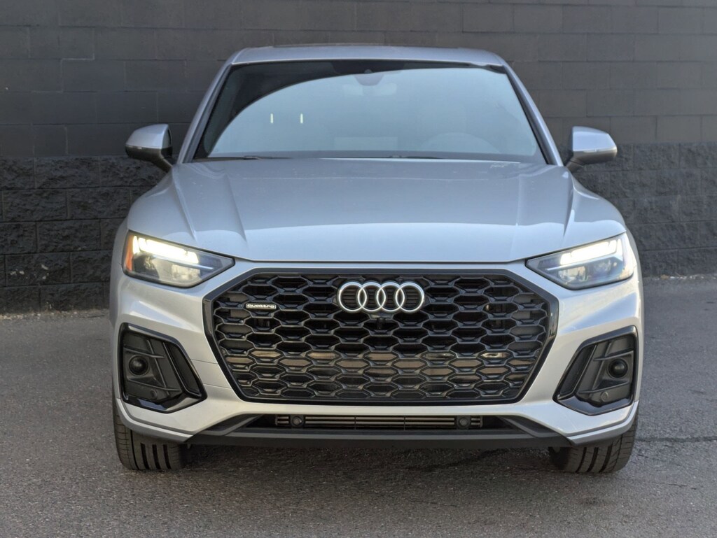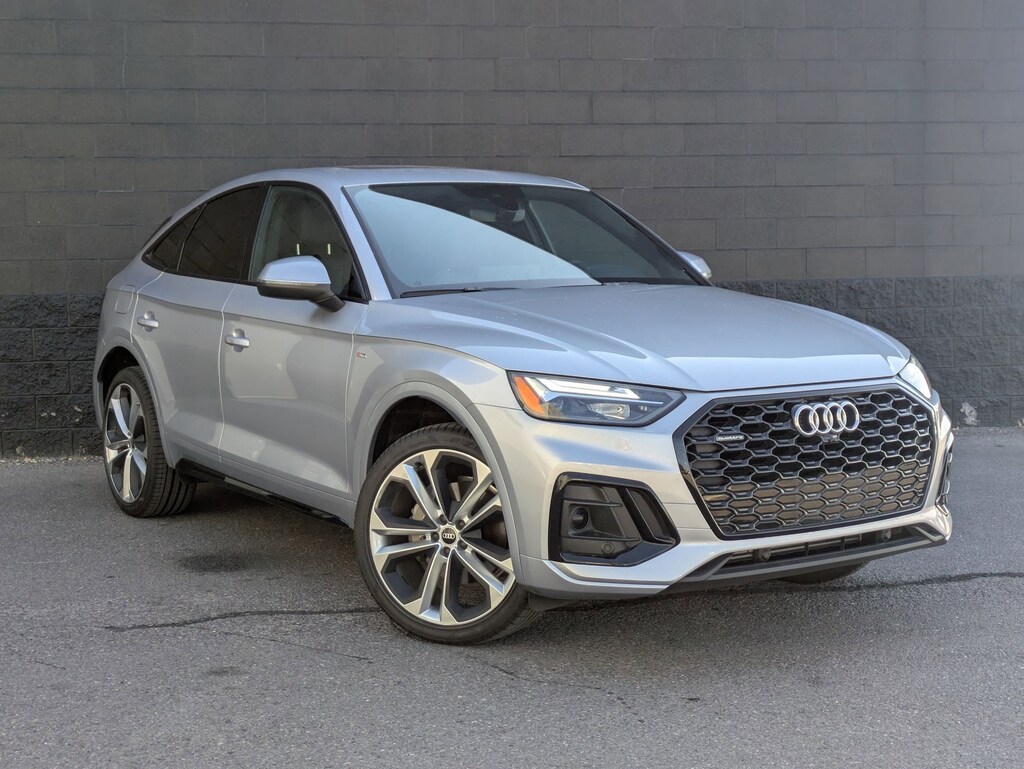 **AUDI CERTIFIED PRE-OWNED** Clean Carfax! Florett Silver Metallic 2023 Audi Q5 Sportback 45 S line Premium Plus quattro quattro 7-Speed Automatic S tronic 2.0L Turbocharged 10 Speakers, 4-Wheel Disc Brakes, ABS brakes, Air Conditioning, Alloy wheels, AM/FM radio, Auto High-beam Headlights, Auto-dimming Rear-View mirror, Automatic temperature control, Axle Ratio: TBD, Brake assist, Bumpers: body-color, Compass, Delay-off headlights, Driver door bin, Driver vanity mirror, Dual front impact airbags, Dual front side impact airbags, Electronic Stability Control, Emergency communication system: Audi connect CARE, Exterior Parking Camera Rear, Four wheel independent suspension, Front anti-roll bar, Front Bucket Seats, Front Center Armrest, Front dual zone A/C, Front fog lights, Front reading lights, Garage door transmitter: HomeLink, Genuine wood console insert, Genuine wood dashboard insert, Genuine wood door panel insert, Heated 8-Way Power Front Bucket Sport Seats, Heated door mirrors, Heated front seats, Illuminated entry, Leather Seating Surfaces, Leather Shift Knob, Low tire pressure warning, Occupant sensing airbag, Outside temperature display, Overhead airbag, Overhead console, Panic alarm, Passenger door bin, Passenger vanity mirror, Power door mirrors, Power driver seat, Power Liftgate, Power moonroof: Panoramic, Power passenger seat, Power steering, Power windows, Radio data system, Radio: Audi Sound System, Rain sensing wipers, Rear air conditioning, Rear anti-roll bar, Rear fog lights, Rear reading lights, Rear seat center armrest, Rear window defroster, Rear window wiper, Remote keyless entry, Security system, Speed control, Speed-sensing steering, Speed-Sensitive Wipers, Split folding rear seat, Spoiler, Steering wheel mounted audio controls, Tachometer, Telescoping steering wheel, Tilt steering wheel, Traction control, Trip computer, Turn signal indicator mirrors, Variably intermittent wipers, Wheels: 19 5-Double-Arm Design Bi-Color Finish.Recent Arrival! 22/29 City/Highway MPG