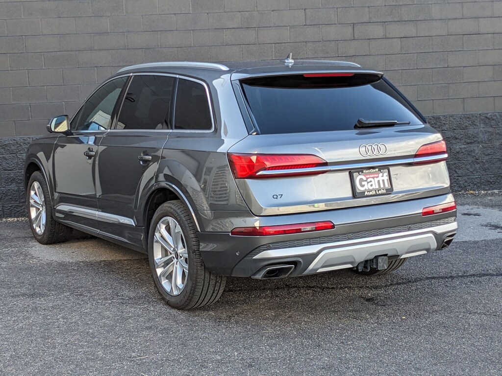 **AUDI CERTIFIED PRE-OWNED** Clean Carfax 1 Owner! Samurai Gray Metallic 2025 Audi Q7 55 Premium Plus QUATTRO! Executive Package! Towing Package! 8-Speed Automatic with Tiptronic 3.0L TFSI 10 Speakers, 3rd row seats, 4-Wheel Disc Brakes, ABS brakes, Air Conditioning, Alloy wheels, AM/FM radio: SiriusXM w/ 360L, Auto High-beam Headlights, Auto-dimming door mirrors, Auto-dimming Rear-View mirror, Automatic temperature control, Bang & Olufsen Premium Sound System w/3D Sound, Brake assist, Bumpers: body-color, Compass, Convenience Package, Delay-off headlights, Driver door bin, Driver vanity mirror, Dual front impact airbags, Dual front side impact airbags, Dual-Pane Acoustic Glass for Side Windows, Electronic Stability Control, Emergency communication system: Audi connect CARE, Executive Package (DISC), Exterior Parking Camera Rear, Four wheel independent suspension, Four-Zone Automatic Climate Control, Front anti-roll bar, Front Bucket Seats, Front Center Armrest, Front dual zone A/C, Front fog lights, Front reading lights, Front Seats w/Ventilation, Fully automatic headlights, Garage door transmitter: HomeLink, Genuine wood door panel insert, Heated door mirrors, Heated Front Bucket Seats, Heated front seats, Heated Rear Seats, Heated Steering Wheel, Illuminated Door Sills, Illuminated entry, Leather Seating Surfaces, Leather Shift Knob, Leather steering wheel, LED Interior Lighting Package Plus, Low tire pressure warning, Memory seat, Navigation system: Audi MMI Navigation plus with Touch Response, Occupant sensing airbag, Outside temperature display, Overhead airbag, Overhead console, Panic alarm, Passenger door bin, Passenger vanity mirror, Power door mirrors, Power driver seat, Power Liftgate, Power moonroof: Panoramic, Power passenger seat, Power steering, Power windows, Premium Plus Package, Radio data system, Radio: Audi Sound System, Rain sensing wipers, Rear air conditioning, Rear anti-roll bar, Rear Door/Side Windows & Tailgate Sunshades, Rear fog lights, Rear reading lights, Rear seat center armrest, Rear side impact airbag, Rear window defroster, Rear window wiper, Reclining 3rd row seat, Remote keyless entry, Security system, Speed control, Speed-sensing steering, Split folding rear seat, Spoiler, Steering wheel memory, Steering wheel mounted audio controls, Tachometer, Telescoping steering wheel, Tilt steering wheel, Top View Camera System, Tow Package, Traction control, Traffic Sign Recognition, Trailer hitch, Trip computer, Turn signal indicator mirrors, Variably intermittent wipers, Wheels: 19 5-Arm-Star Design, Wheels: 20 5-Double-Spoke, Wireless Phone Charging Pad.Recent Arrival!