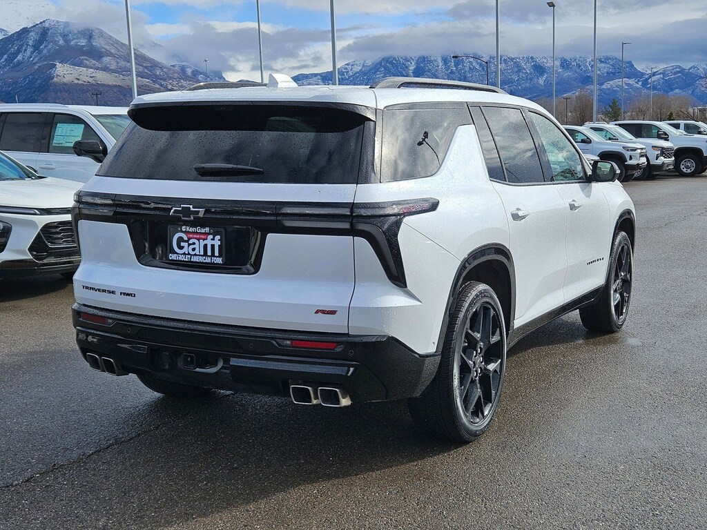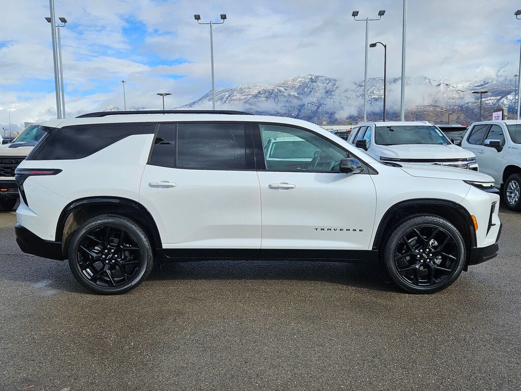 Ken Garff Chevrolet is pumped up to offer this great 2025 Chevrolet Traverse. Sporty, stylish, and family-ready, the 2025 Chevrolet Traverse RS stands out with bold RS badging, blackout grille and roof rails, and 22-inch high-gloss black wheels for a performance-inspired look. Inside enjoy Jet Black leather-appointed seats with red accents, a flat-bottom steering wheel, panoramic sunroof, premium Bose audio, and advanced tech including Super Cruise driver-assist. With seating for seven and turbocharged power, its perfect for daily drives and weekend adventures alike. Clean Carfax One Owner!Includes GarffCare! (Complimentary Towing along Wasatch Front, Roadside Assistance, Complimentary Annual State Safety Inspection, Flat Tire Repair, and Car Wash with every Service Visit)Recent Arrival! Iridescent Pearl Tricoat 2025 Chevrolet Traverse RS