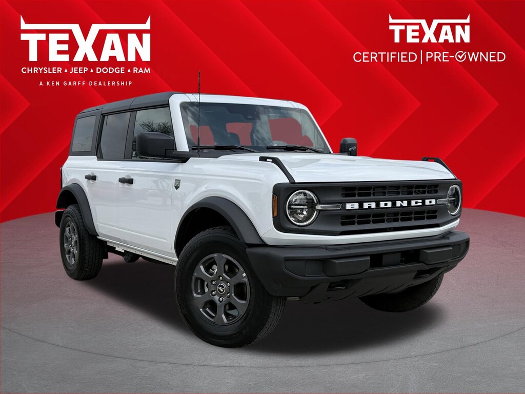 Clean CarFax!, Clean Vehicle History, Non Smoker Vehicle, LOCAL TRADE, ALL VEHICLES UNDERGO A 115 POINT SAFETY INSPECTION, Carfax 1 Owner, 2-Door Intelligent Access w/Lock/Unlock, 4-Wheel Disc Brakes, 4.46 Axle Ratio, 7 Speakers, ABS brakes, AM/FM radio: SiriusXM with 360L, AM/FM Stereo, Ambient Footwell Lighting, Auto High-Beam Headlamps, Auto High-beam Headlights, BLIS Blind Spot Information System, Brake assist, Carbonized Gray Molded-In-Color Hard Top, Cloth Bucket Seats, Compass, Connected Navigation, Delay-off headlights, Dr & Pass Illuminated Sliding Visor Vanity Mirrors, Driver vanity mirror, Dual front impact airbags, Dual front side impact airbags, Dual Smart Charging USB Ports, Dual-Zone Electronic Automatic Temperature Control, Electronic Stability Control, Emergency communication system: 911 Assist, Equipment Group 222A Mid Package, Exterior Parking Camera Rear, Front anti-roll bar, Front Bucket Seats, Front Center Armrest, Front reading lights, Front Row Heated Seats, Front wheel independent suspension, Fully automatic headlights, Heated door mirrors, Illuminated entry, Integrated roll-over protection, Internet access capable: FordPass Connect, Lane-Keeping System, Leather Shift Knob, Low tire pressure warning, Occupant sensing airbag, Overhead airbag, Overhead console, Panic alarm, Passenger vanity mirror, Power door mirrors, Power Outlet - Back Side of Center Floor Console, Pre-Collision Assist w/Automatic Emergency Braking, Rear Parking Sensors, Rear-View Camera, Rear-Window Defroster & Washer, Remote keyless entry, Security system, SiriusXM w/360L, Speed control, Split folding rear seat, Steering wheel mounted audio controls, SYNC 4, Tachometer, Telescoping steering wheel, Traction control, Variably intermittent wipers, Wheels: 17 Carbonized Gray-Painted Aluminum. CARFAX One-Owner. Priced below KBB Fair Purchase Price!Texan Dodge Chrysler Jeep Ram is very proud to offer this great 2025 Ford Bronco Big Bend.In addition to transparent, no hassle pricing and upfront no hassle trade evaluation.....We provide an enjoyably brief and easy Sales Experience...Your Pace...Your Way....CONTACT US AT (281)359-7100 Advertised prices exclude leases. Vehicle may or may not be equipped with vehicle protection products or accessories that are not required for purchase.