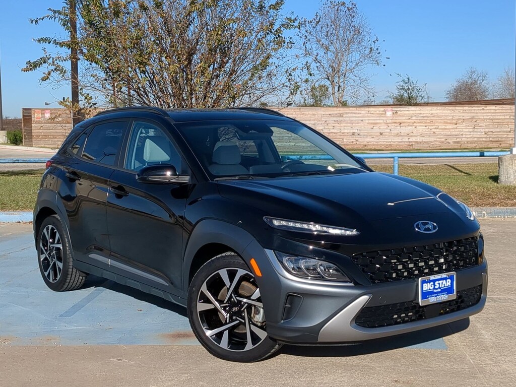 Ultra Black Pearl 2023 Hyundai Kona Limited AWD Shiftronic I4 **CARFAX ONE OWNER**, CLEAN CARFAX!, NON SMOKING VEHICLE!, ALL Ken Garff Customers receive complimentary Garff Care!!, Get you some fuel when you are in trouble!!!, Garff Care can jump a dead battery and will unlock your vehicle if you find yourself locked out!!, 18 x 7.5J Alloy Wheels, 4-Wheel Disc Brakes, 8 Speakers, ABS brakes, Air Conditioning, AM/FM radio: SiriusXM, Apple CarPlay & Android Auto, Auto High-beam Headlights, Brake assist, Delay-off headlights, Dual front impact airbags, Dual front side impact airbags, Electronic Stability Control, Emergency communication system: Blue Link Connected Car Service (3-year complimentary subscription), Exterior Parking Camera Rear, First Aid Kit, Four wheel independent suspension, Front & Rear Mudguards, Front anti-roll bar, Front Bucket Seats, Front Center Armrest, Fully automatic headlights, harman/kardon® Speakers, Heated door mirrors, Heated Front Bucket Seats, Heated front seats, Leather Seat Trim, Low tire pressure warning, Navigation System, Occupant sensing airbag, Option Group 01, Panic alarm, Power door mirrors, Power driver seat, Power moonroof, Power steering, Power windows, Rear window defroster, Remote keyless entry, Security system, Speed control, Speed-sensing steering, Split folding rear seat, Spoiler, Steering wheel mounted audio controls, Traction control, Turn signal indicator mirrors.Recent Arrival! Odometer is 15096 miles below market average! 27/32 City/Highway MPG