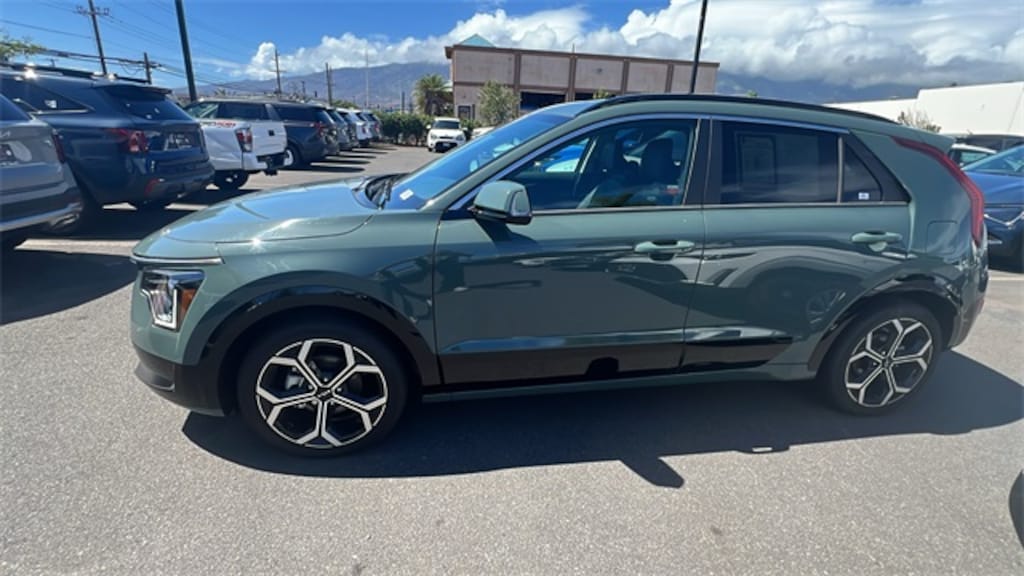 Cityscape Green 2025 Kia Niro EX Touring FWD 6-Speed Dual Clutch 1.6L I4 DGI Hybrid DOHC 16V LEV3-SULEV30 Bluetooth, Backup Camera, Apple Carplay / Android Auto, Navigation, Kia Certified Pre-Owned Certified, 1.6L I4 DGI Hybrid DOHC 16V LEV3-SULEV30, 4-Wheel Disc Brakes, 6 Speakers, ABS brakes, Air Conditioning, Alloy wheels, AM/FM radio: SiriusXM, Apple CarPlay & Android Auto, Auto High-beam Headlights, Automatic temperature control, Brake assist, Bumpers: body-color, Cargo Cover, Cargo Net, Carpeted Floor Mats, Cloth & Vegan Leather-Trimmed Seats, Delay-off headlights, Driver door bin, Driver vanity mirror, Dual front impact airbags, Dual front side impact airbags, Electronic Stability Control, Emergency communication system: Kia Connect (includes 1 year free trial), Exterior Parking Camera Rear, Four wheel independent suspension, Front anti-roll bar, Front Bucket Seats, Front Center Armrest, Front dual zone A/C, Front fog lights, Front reading lights, Fully automatic headlights, Heated door mirrors, Heated Front Bucket Seats (3-Steps), Heated front seats, Illuminated entry, Knee airbag, Leather Shift Knob, Low tire pressure warning, Navigation System, Occupant sensing airbag, Outside temperature display, Overhead airbag, Overhead console, Panic alarm, Passenger door bin, Passenger vanity mirror, Power door mirrors, Power driver seat, Power moonroof, Power steering, Power windows, Radio: AM/FM/HD/SiriusXM, Rain sensing wipers, Rear anti-roll bar, Rear seat center armrest, Rear window defroster, Rear window wiper, Remote keyless entry, Security system, Speed control, Speed-sensing steering, Split folding rear seat, Spoiler, Steering wheel mounted audio controls, Telescoping steering wheel, Tilt steering wheel, Traction control, Trip computer, Turn signal indicator mirrors, Variably intermittent wipers, Wheels: 7.5J x 18" Machine Finished Alloy, 1.6L I4 DGI Hybrid DOHC 16V LEV3-SULEV30, 4-Wheel Disc Brakes, 6 Speakers, ABS brakes, Air Conditioning, Alloy wheels, AM/FM radio: SiriusXM, Apple CarPlay & Android Auto, Auto High-beam Headlights, Automatic temperature control, Brake assist, Bumpers: body-color, Cargo Cover, Cargo Net, Carpeted Floor Mats, Cloth & Vegan Leather-Trimmed Seats, Delay-off headlights, Driver door bin, Driver vanity mirror, Dual front impact airbags, Dual front side impact airbags, Electronic Stability Control, Emergency communication system: Kia Connect (includes 1 year free trial), Exterior Parking Camera Rear, Four wheel independent suspension, Front anti-roll bar, Front Bucket Seats, Front Center Armrest, Front dual zone A/C, Front fog lights, Front reading lights, Fully automatic headlights, Heated door mirrors, Heated Front Bucket Seats (3-Steps), Heated front seats, Illuminated entry, Knee airbag, Leather Shift Knob, Low tire pressure warning, Navigation System, Occupant sensing airbag, Outside temperature display, Overhead airbag, Overhead console, Panic alarm, Passenger door bin, Passenger vanity mirror, Power door mirrors, Power driver seat, Power moonroof, Power steering, Power windows, Radio: AM/FM/HD/SiriusXM, Rain sensing wipers, Rear anti-roll bar, Rear seat center armrest, Rear window defroster, Rear window wiper, Remote keyless entry, Security system, Speed control, Speed-sensing steering, Split folding rear seat, Spoiler, Steering wheel mounted audio controls, Telescoping steering wheel, Tilt steering wheel, Traction control, Trip computer, Turn signal indicator mirrors, Variably intermittent wipers, Wheels: 7.5J x 18" Machine Finished Alloy.