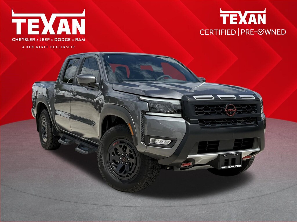 Clean CarFax!, Clean Vehicle History, Non Smoker Vehicle, LOCAL TRADE, LOW LOW MILES!!, ALL VEHICLES UNDERGO A 115 POINT SAFETY INSPECTION, Garff Certified Pre-Owned Certified, 4WD, 120V Power Outlet in Bed, 120V Power Outlet in Rear Center Console, 6 Speakers, Air Conditioning, AM/FM radio: SiriusXM, Auto-Dimming Mirror, Auto-Tilt and Slide Sunroof with Manual Shade, Automatic temperature control, Bed Under-Rail Lighting, Bumpers: body-color, Fender Premium Audio System with 10 Speakers, Front dual zone A/C, Heated Front Seats, Heated Outside Mirrors, Heated Steering Wheel, HomeLink UGDO, Intelligent Around View Monitor (I-AVM), Leather Seat Trim, Mud Flaps, Nissan Door-to-Door Navigation, Off-Road Style Step Rails, Partial Under-Seat Storage Delete, Power door mirrors, PRO Premium Package, PRO-4X Convenience Package, Radio data system, Radio: SiriusXM/AM/FM/Auxiliary/USB Audio System, Remote Engine Starter, Spray-in Bedliner, Tow Package, Traffic Sign Recognition (TSR), Trailer Hitch with Wiring Harness, Utili-Track System, Wireless Charging For Personal Devices, 17 Painted Alloy Wheels, 3.692 Axle Ratio, 4-Wheel Disc Brakes, ABS brakes, Alloy wheels, Anti-whiplash front head restraints, Auto High-beam Headlights, Blind Spot Warning, Brake assist, Delay-off headlights, Driver door bin, Driver vanity mirror, Dual front impact airbags, Dual front side impact airbags, Electronic Stability Control, Electronic Tailgate Lock, Emergency communication system, Essentials Kit, Front anti-roll bar, Front Bucket Seats, Front Center Armrest, Front fog lights, Front reading lights, Front wheel independent suspension, Fully automatic headlights, Heated Front Bucket Seats, Heated front seats, Heated steering wheel, Illuminated entry, Knee airbag, Leather steering wheel, Low tire pressure warning, Occupant sensing airbag, Overhead airbag, Overhead console, Panic alarm, Passenger door bin, Passenger vanity mirror, Power driver seat, Power passenger seat, Power steering, Power windows, PRO Embroidered Premium Cloth Seat Trim, PRO-4X Carpeted Floor Mats, Rear anti-roll bar, Rear seat center armrest, Rear side impact airbag, Rear step bumper, Remote keyless entry, Security system, Speed control, Speed-sensing steering, Split folding rear seat, Steering wheel mounted audio controls, Tachometer, Telescoping steering wheel, Tilt steering wheel, Traction control, Trip computer, Variably intermittent wipers, Voltmeter, Wireless Apple CarPlay/Wireless Android Auto, Fully Serviced, 4WD, 120V Power Outlet in Bed, 120V Power Outlet in Rear Center Console, 6 Speakers, Air Conditioning, AM/FM radio: SiriusXM, Auto-Dimming Mirror, Auto-Tilt and Slide Sunroof with Manual Shade, Automatic temperature control, Bed Under-Rail Lighting, Bumpers: body-color, Fender Premium Audio System with 10 Speakers, Front dual zone A/C, Heated Front Seats, Heated Outside Mirrors, Heated Steering Wheel, HomeLink UGDO, Intelligent Around View Monitor (I-AVM), Leather Seat Trim, Mud Flaps, Nissan Door-to-Door Navigation, Off-Road Style Step Rails, Partial Under-Seat Storage Delete, Power door mirrors, PRO Premium Package, PRO-4X Convenience Package, Radio data system, Radio: SiriusXM/AM/FM/Auxiliary/USB Audio System, Remote Engine Starter, Spray-in Bedliner, Tow Package, Traffic Sign Recognition (TSR), Trailer Hitch with Wiring Harness, Utili-Track System, Wireless Charging For Personal Devices. CARFAX One-Owner. Texan Dodge Chrysler Jeep Ram is honored to offer this terrific 2026 Nissan Frontier PRO-4X.In addition to transparent, no hassle pricing and upfront no hassle trade evaluation.....We provide an enjoyably brief and easy Sales Experience...Your Pace...Your Way....CONTACT US AT (281)359-7100 Advertised prices exclude leases. Vehicle may or may not be equipped with vehicle protection products or accessories that are not required for purchase.
