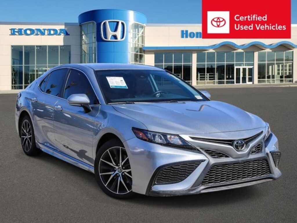CARFAX One-Owner. Clean CARFAX. 2023 Toyota Certified. Camry SE FWD 8-Speed Automatic 2.5L I4 DOHC 16V TOYOTA CERTIFIED, Black w/Sport SofTex Seat Trim w/Fabric Inserts.
