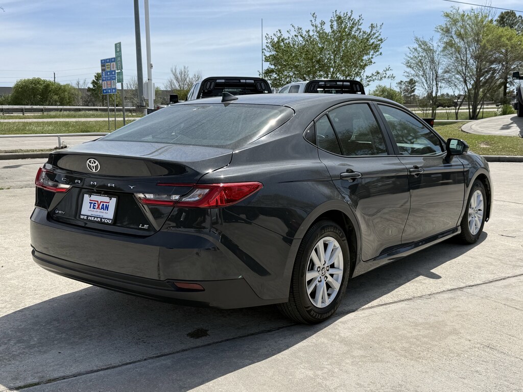 Clean CarFax!, Clean Vehicle History, Non Smoker Vehicle, LOCAL TRADE, ALL VEHICLES UNDERGO A 115 POINT SAFETY INSPECTION, Fully Serviced, Bluetooth, 1-Owner, 2.5L 4-Cylinder 16V DOHC, Cloth, 4-Wheel Disc Brakes, 6 Speakers, ABS brakes, Air Conditioning, Alloy wheels, AM/FM radio: SiriusXM, Apple CarPlay/Android Auto, Auto High-beam Headlights, Automatic temperature control, Brake assist, Bumpers: body-color, Delay-off headlights, Driver door bin, Driver vanity mirror, Dual front impact airbags, Dual front side impact airbags, Electronic Stability Control, Emergency communication system: Safety Connect (up to 10-year trial subscription), Exterior Parking Camera Rear, Fabric Seat Trim, Four wheel independent suspension, Front anti-roll bar, Front Bucket Seats, Front Center Armrest, Front dual zone A/C, Front reading lights, Fully automatic headlights, Heated door mirrors, Illuminated entry, Knee airbag, Low tire pressure warning, Occupant sensing airbag, Outside temperature display, Overhead airbag, Overhead console, Panic alarm, Passenger door bin, Passenger vanity mirror, Power door mirrors, Power steering, Power windows, Radio data system, Radio: Toyota Audio Multimedia w/8 Touchscreen, Rear anti-roll bar, Rear seat center armrest, Rear side impact airbag, Rear window defroster, Remote keyless entry, Security system, Speed control, Speed-sensing steering, Split folding rear seat, Steering wheel mounted audio controls, Telescoping steering wheel, Tilt steering wheel, Traction control, Trip computer, Turn signal indicator mirrors, Variably intermittent wipers, Wheels: 16 Silver-Finished Alloy. CARFAX One-Owner. Texan Dodge Chrysler Jeep Ram is honored to offer this charming 2025 Toyota Camry LE.In addition to transparent, no hassle pricing and upfront no hassle trade evaluation.....We provide an enjoyably brief and easy Sales Experience...Your Pace...Your Way....CONTACT US AT (281)359-7100 Advertised prices exclude leases. Vehicle may or may not be equipped with vehicle protection products or accessories that are not required for purchase.