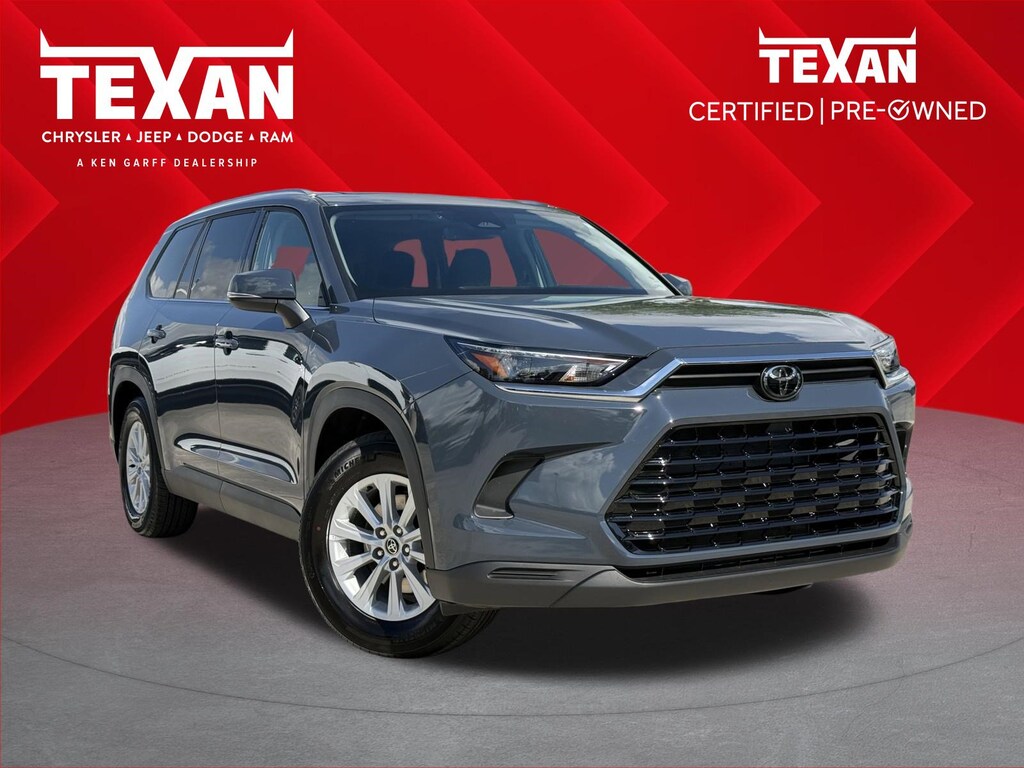 Clean CarFax!, Clean Vehicle History, Non Smoker Vehicle, LOCAL TRADE, LOW LOW MILES!!, ALL VEHICLES UNDERGO A 115 POINT SAFETY INSPECTION, Garff Certified Pre-Owned Certified, 3rd row seats: split-bench, 4-Wheel Disc Brakes, 6 Speakers, ABS brakes, Air Conditioning, Alloy wheels, AM/FM radio: SiriusXM, Apple CarPlay/Android Auto, Auto High-beam Headlights, Auto-dimming Rear-View mirror, Automatic temperature control, Brake assist, Bumpers: body-color, Delay-off headlights, Driver door bin, Driver vanity mirror, Dual front impact airbags, Dual front side impact airbags, Electronic Stability Control, Emergency communication system: Safety Connect (up to 10-year trial subscription), Exterior Parking Camera Rear, Four wheel independent suspension, Front anti-roll bar, Front Bucket Seats, Front Center Armrest, Front dual zone A/C, Front reading lights, Fully automatic headlights, Garage door transmitter: HomeLink, Heated door mirrors, Heated Front Seats, Heated front seats, Illuminated entry, Knee airbag, Leather Shift Knob, Leather steering wheel, Low tire pressure warning, Navigation system: Drive Connect Cloud Navigation (1-year trial subscription), Occupant sensing airbag, Outside temperature display, Overhead airbag, Overhead console, Panic alarm, Passenger door bin, Passenger vanity mirror, Power door mirrors, Power driver seat, Power Liftgate, Power passenger seat, Power steering, Power windows, Radio: 12.3 Toyota Multimedia Audio, Rear air conditioning, Rear anti-roll bar, Rear reading lights, Rear window defroster, Rear window wiper, Reclining 3rd row seat, Remote keyless entry, Security system, SofTex Seat Trim, Speed control, Speed-sensing steering, Split folding rear seat, Spoiler, Steering wheel mounted audio controls, Tachometer, Telescoping steering wheel, Tilt steering wheel, Traction control, Trip computer, Turn signal indicator mirrors, Variably intermittent wipers, Wheels: 18 Multi-Spoke Silver Painted Alloy, Fully Serviced, Bluetooth, 1-Owner, Garff CARFAX One-Owner. Texan Dodge Chrysler Jeep Ram is proud to offer this stunning-looking 2025 Toyota Grand Highlander XLE.In addition to transparent, no hassle pricing and upfront no hassle trade evaluation.....We provide an enjoyably brief and easy Sales Experience...Your Pace...Your Way....CONTACT US AT (281)359-7100 Advertised prices exclude leases. Vehicle may or may not be equipped with vehicle protection products or accessories that are not required for purchase.