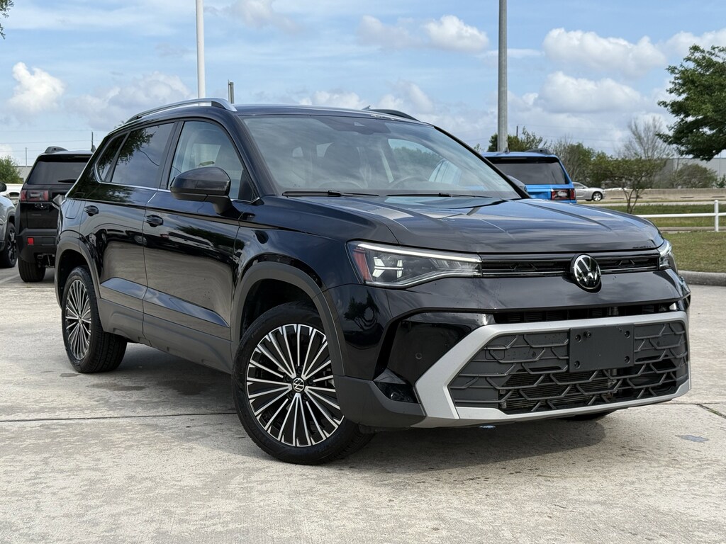 Clean CarFax!, Clean Vehicle History, Non Smoker Vehicle, LOCAL TRADE, ALL VEHICLES UNDERGO A 115 POINT SAFETY INSPECTION, Garff Certified Pre-Owned Certified, Alloy wheels, Cloudtex and Cloth Seating Surfaces, Front Bucket Seats, Front Center Armrest, Heated Front Bucket Seats, Heated front seats, Passenger door bin, Rain sensing wipers, Rear window wiper, Split folding rear seat, Variably intermittent wipers, Wheels: 18 2-Tone Machined Alloy, 4-Wheel Disc Brakes, 6 Speakers, ABS brakes, Active Blind Spot Monitor, Air Conditioning, AM/FM radio: SiriusXM with 360L, Auto High-beam Headlights, Automatic temperature control, Brake assist, Bumpers: body-color, Compass, Delay-off headlights, Driver door bin, Driver vanity mirror, Dual front impact airbags, Dual front side impact airbags, Electronic Stability Control, Emergency communication system: VW Car-Net Safe & Secure 5-year, Exterior Parking Camera Rear, Front anti-roll bar, Front dual zone A/C, Front reading lights, Front Strut Rear Torsion Beam Suspension, Front wheel independent suspension, Fully automatic headlights, Heated door mirrors, Heated steering wheel, Illuminated entry, Leather Shift Knob, Low tire pressure warning, Occupant sensing airbag, Outside temperature display, Overhead airbag, Overhead console, Panic alarm, Passenger vanity mirror, Power door mirrors, Power driver seat, Power steering, Power windows, Radio data system, Radio: MIB3 Composition Media AM/FM/HD, Rear anti-roll bar, Rear seat center armrest, Rear window defroster, Remote keyless entry, Security system, Speed control, Speed-sensing steering, Spoiler, Steering wheel mounted audio controls, Tachometer, Telescoping steering wheel, Tilt steering wheel, Traction control, Trip computer, Garff Certified, Fully Serviced, Bluetooth, 1-Owner, Alloy wheels, Cloudtex and Cloth Seating Surfaces, Front Bucket Seats, Front Center Armrest, Heated Front Bucket Seats, Heated front seats, Passenger door bin, Rain sensing wipers, Rear window wiper, Split folding rear seat, Variably intermittent wipers, Wheels: 18 2-Tone Machined Alloy. CARFAX One-Owner. Texan Dodge Chrysler Jeep Ram is pleased to offer this terrific 2025 Volkswagen Taos 1.5T SE.In addition to transparent, no hassle pricing and upfront no hassle trade evaluation.....We provide an enjoyably brief and easy Sales Experience...Your Pace...Your Way....CONTACT US AT (281)359-7100 Advertised prices exclude leases. Vehicle may or may not be equipped with vehicle protection products or accessories that are not required for purchase.