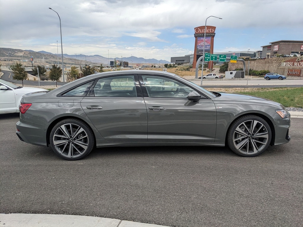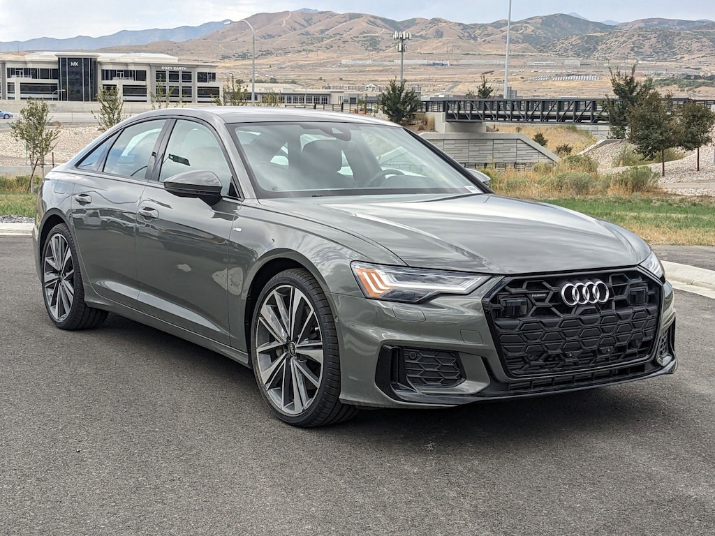Chronos Gray Metallic 2025 Audi A6 quattro quattro 7-Speed Automatic 3.0L V6 Turbocharged DOHC 24V LEV3-ULEV70 335hp quattro, Leather, 10 Speakers, 4-Wheel Disc Brakes, ABS brakes, Air Conditioning, Alloy wheels, AM/FM radio: SiriusXM w/ 360L, Auto High-beam Headlights, Auto tilt-away steering wheel, Auto-dimming door mirrors, Auto-dimming Rear-View mirror, Automatic temperature control, Brake assist, Bumpers: body-color, Compass, Delay-off headlights, Driver door bin, Driver vanity mirror, Dual front impact airbags, Dual front side impact airbags, Electronic Stability Control, Emergency communication system: Audi connect CARE (limited time subscription - acceptance of terms required), Exterior Parking Camera Rear, Four wheel independent suspension, Front anti-roll bar, Front Bucket Seats, Front Center Armrest, Front dual zone A/C, Front fog lights, Front reading lights, Garage door transmitter: HomeLink, Genuine wood console insert, Genuine wood dashboard insert, Genuine wood door panel insert, Heated door mirrors, Heated Front Seats, Heated front seats, Illuminated entry, Knee airbag, Leather Seating Surfaces, Leather Shift Knob, Leather steering wheel, Low tire pressure warning, Memory seat, Navigation system: Audi MMI Navigation plus with Touch Response, Occupant sensing airbag, Outside temperature display, Overhead airbag, Overhead console, Panic alarm, Passenger door bin, Passenger vanity mirror, Power door mirrors, Power driver seat, Power moonroof, Power passenger seat, Power steering, Power windows, Radio data system, Radio: Audi MMI Nav Plus w/MMI Touch Response, Rain sensing wipers, Rear air conditioning, Rear anti-roll bar, Rear reading lights, Rear seat center armrest, Rear side impact airbag, Rear window defroster, Remote keyless entry, Security system, Speed control, Speed-sensing steering, Speed-Sensitive Wipers, Split folding rear seat, Steering wheel memory, Steering wheel mounted audio controls, Tachometer, Telescoping steering wheel, Tilt steering wheel, Traction control, Trip computer, Turn signal indicator mirrors, Variably intermittent wipers, Wheels: 19 5-Arm Platinum Gray Dynamic Design, quattro, Leather.22/30 City/Highway MPGAdvertised Prices do not include any dealer installed options and advertised prices exclude leases.