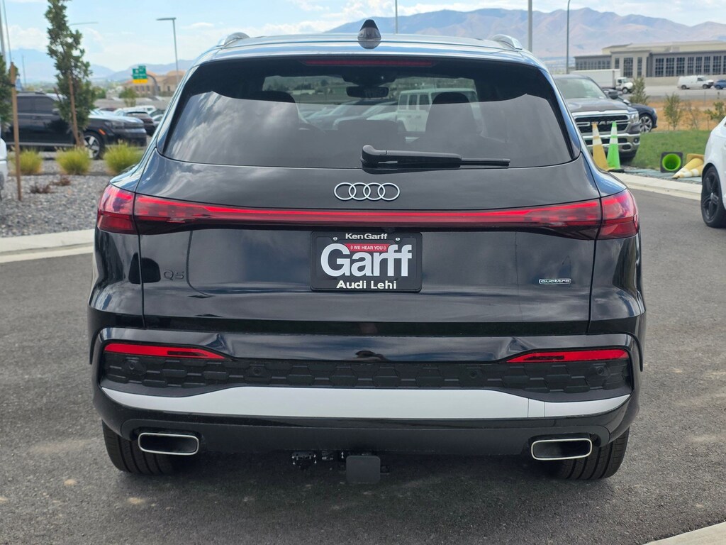 Mythos Black Metallic 2025 Audi All-new Q5 2.0T Premium Plus quattro quattro 7-Speed Automatic S tronic 2.0L 4-Cylinder TFSI 10 Speakers, 4-Wheel Disc Brakes, ABS brakes, Air Conditioning, Alloy wheels, AM/FM radio: SiriusXM w/ 360L, Auto High-beam Headlights, Auto tilt-away steering wheel, Auto-dimming door mirrors, Auto-dimming Rear-View mirror, Automatic temperature control, Brake assist, Bumpers: body-color, Compass, Delay-off headlights, Driver door bin, Driver vanity mirror, Dual front impact airbags, Dual front side impact airbags, Electronic Stability Control, Emergency communication system: Audi connect CARE, Exterior Parking Camera Rear, Four wheel independent suspension, Front anti-roll bar, Front Bucket Seats, Front Center Armrest, Front dual zone A/C, Front fog lights, Front reading lights, Garage door transmitter: HomeLink, Genuine wood console insert, Genuine wood dashboard insert, Genuine wood door panel insert, Heated door mirrors, Heated Front Bucket Seats, Heated front seats, Illuminated entry, Leather Seating Surfaces, Leather steering wheel, Low tire pressure warning, Memory seat, Navigation system: Audi Navigation Plus, Occupant sensing airbag, Outside temperature display, Overhead airbag, Overhead console, Panic alarm, Passenger door bin, Passenger vanity mirror, Power door mirrors, Power driver seat, Power Liftgate, Power passenger seat, Power steering, Power windows, Radio data system, Radio: MMI Navigation Plus, Rain sensing wipers, Rear air conditioning, Rear anti-roll bar, Rear fog lights, Rear reading lights, Rear seat center armrest, Rear window defroster, Rear window wiper, Remote keyless entry, Roof rack, Security system, Speed control, Speed-sensing steering, Speed-Sensitive Wipers, Split folding rear seat, Spoiler, Steering wheel mounted audio controls, Tachometer, Telescoping steering wheel, Tilt steering wheel, Traction control, Trip computer, Turn signal indicator mirrors, Variably intermittent wipers, Wheels: 18 5-Arm-Twist Design.22/30 City/Highway MPGAdvertised Prices do not include any dealer installed options and advertised prices exclude leases.