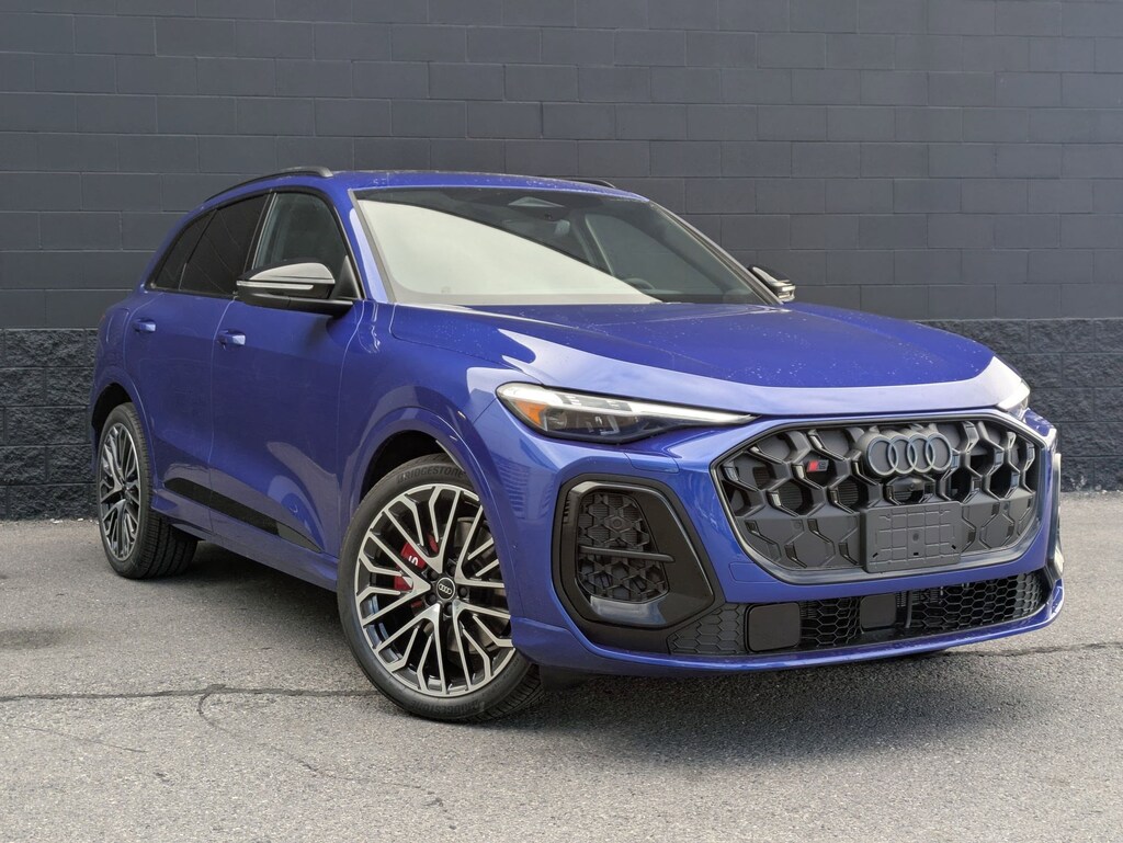 ALL NEW SQ5!PRESTIGE! Ultra Blue Metallic 2025 Audi All-new SQ5 3.0T Prestige quattro, 7-Speed Automatic, V6, 10 Speakers, 4-Wheel Disc Brakes, ABS brakes, Adaptive suspension, Air Conditioning, Alloy wheels, AM/FM radio: SiriusXM w/ 360L, Auto High-beam Headlights, Auto tilt-away steering wheel, Auto-dimming door mirrors, Auto-dimming Rear-View mirror, Auto-leveling suspension, Automatic temperature control, Brake assist, Bumpers: body-color, Compass, Delay-off headlights, Driver door bin, Driver vanity mirror, Dual front impact airbags, Dual front side impact airbags, Electronic Stability Control, Emergency communication system: Audi connect CARE, Exterior Parking Camera Rear, Four wheel independent suspension, Front anti-roll bar, Front Bucket Seats, Front Center Armrest, Front dual zone A/C, Front fog lights, Front reading lights, Garage door transmitter: HomeLink, Heated door mirrors, Heated front seats, Heated Front Sport Seats, Illuminated entry, Leather steering wheel, Leather/Dinamica Seating Surfaces, Low tire pressure warning, Memory seat, Navigation system: Audi Navigation Plus, Occupant sensing airbag, Outside temperature display, Overhead airbag, Overhead console, Panic alarm, Passenger door bin, Passenger vanity mirror, Power door mirrors, Power driver seat, Power Liftgate, Power passenger seat, Power steering, Power windows, Radio data system, Radio: MMI Navigation Plus, Rain sensing wipers, Rear air conditioning, Rear anti-roll bar, Rear fog lights, Rear reading lights, Rear seat center armrest, Rear window defroster, Rear window wiper, Remote keyless entry, Roof rack, Security system, Speed control, Speed-sensing steering, Speed-Sensitive Wipers, Split folding rear seat, Spoiler, Sport steering wheel, Steering wheel mounted audio controls, Tachometer, Telescoping steering wheel, Tilt steering wheel, Traction control, Trip computer, Turn signal indicator mirrors, Variably intermittent wipers, Wheels: 20 5-Double-Spoke-Twist Design.19/26 City/Highway MPGAdvertised Prices do not include any dealer installed options and advertised prices exclude leases.