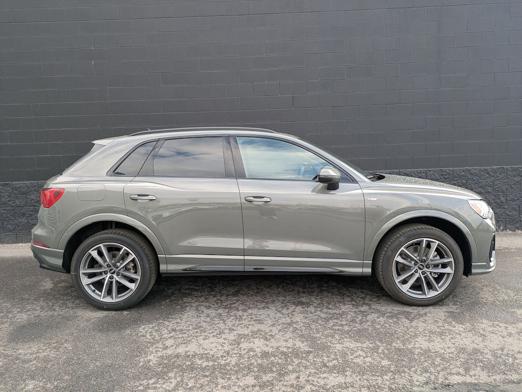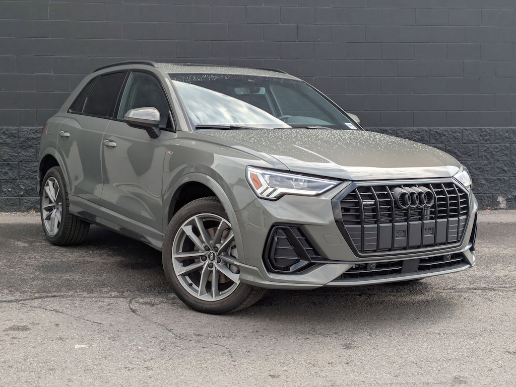 Chronos Gray Metallic 2025 Audi Q3 Premium S Line quattro quattro 8-Speed Automatic with Tiptronic 2.0L 4-Cylinder TFSI 10 Speakers, 4-Wheel Disc Brakes, ABS brakes, Air Conditioning, Alloy wheels, AM/FM radio, Audi smartphone interface (Apple CarPlay/Android Auto), Auto High-beam Headlights, Automatic temperature control, Brake assist, Bumpers: body-color, Delay-off headlights, Driver door bin, Driver vanity mirror, Dual front impact airbags, Dual front side impact airbags, Electronic Stability Control, Emergency communication system: Audi connect CARE, Exterior Parking Camera Rear, Four wheel independent suspension, Front anti-roll bar, Front Bucket Seats, Front Center Armrest, Front dual zone A/C, Front fog lights, Front reading lights, Fully automatic headlights, Heated door mirrors, Heated Front Bucket Seats, Heated front seats, Illuminated entry, Knee airbag, Leather Seating Surfaces, Leather Shift Knob, Leather steering wheel, Low tire pressure warning, Occupant sensing airbag, Outside temperature display, Overhead airbag, Overhead console, Panic alarm, Passenger door bin, Passenger vanity mirror, Power door mirrors, Power driver seat, Power Liftgate, Power moonroof: Panoramic, Power passenger seat, Power steering, Power windows, Radio data system, Radio: Audi Sound System, Rain sensing wipers, Rear air conditioning, Rear anti-roll bar, Rear fog lights, Rear reading lights, Rear seat center armrest, Rear window defroster, Rear window wiper, Remote keyless entry, Speed control, Speed-sensing steering, Split folding rear seat, Spoiler, Steering wheel mounted audio controls, Tachometer, Telescoping steering wheel, Tilt steering wheel, Traction control, Trip computer, Turn signal indicator mirrors, Variably intermittent wipers, Wheels: 18 5-V-Spoke-S Design.20/28 City/Highway MPGAdvertised Prices do not include any dealer installed options and advertised prices exclude leases.