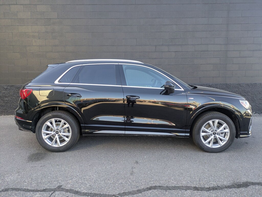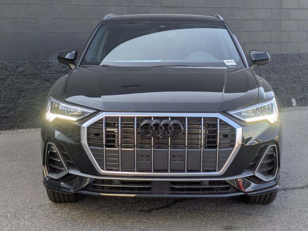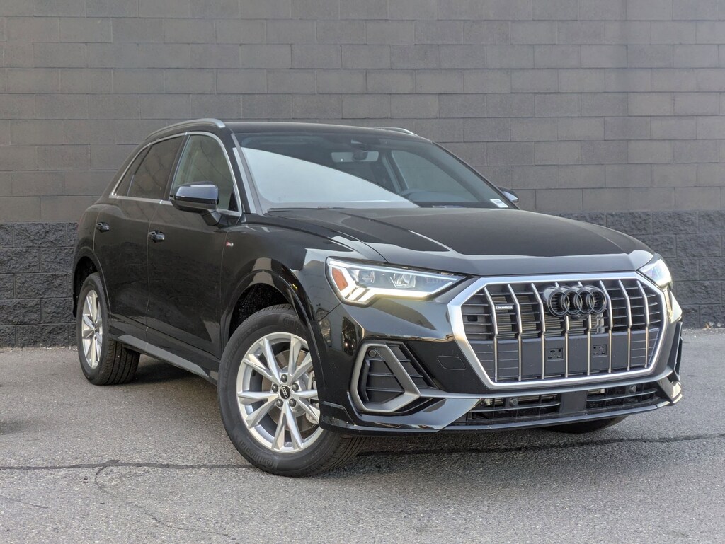 Mythos Black Metallic 2025 Audi Q3 Premium Plus S Line quattro quattro 8-Speed Automatic with Tiptronic 2.0L 4-Cylinder TFSI 10 Speakers, 4-Wheel Disc Brakes, ABS brakes, Air Conditioning, Alloy wheels, AM/FM radio, Audi smartphone interface (Apple CarPlay/Android Auto), Auto High-beam Headlights, Automatic temperature control, Brake assist, Bumpers: body-color, Delay-off headlights, Driver door bin, Driver vanity mirror, Dual front impact airbags, Dual front side impact airbags, Electronic Stability Control, Emergency communication system: Audi connect CARE, Exterior Parking Camera Rear, Four wheel independent suspension, Front anti-roll bar, Front Bucket Seats, Front Center Armrest, Front dual zone A/C, Front fog lights, Front reading lights, Fully automatic headlights, Heated door mirrors, Heated Front Bucket Seats, Heated front seats, Illuminated entry, Knee airbag, Leather Seating Surfaces, Leather Shift Knob, Leather steering wheel, Low tire pressure warning, Occupant sensing airbag, Outside temperature display, Overhead airbag, Overhead console, Panic alarm, Passenger door bin, Passenger vanity mirror, Power door mirrors, Power driver seat, Power Liftgate, Power moonroof: Panoramic, Power passenger seat, Power steering, Power windows, Radio data system, Radio: Audi Sound System, Rain sensing wipers, Rear air conditioning, Rear anti-roll bar, Rear fog lights, Rear reading lights, Rear seat center armrest, Rear window defroster, Rear window wiper, Remote keyless entry, Speed control, Speed-sensing steering, Split folding rear seat, Spoiler, Steering wheel mounted audio controls, Tachometer, Telescoping steering wheel, Tilt steering wheel, Traction control, Trip computer, Turn signal indicator mirrors, Variably intermittent wipers, Wheels: 18 5-V-Spoke-S Design.20/28 City/Highway MPGAdvertised Prices do not include any dealer installed options and advertised prices exclude leases.