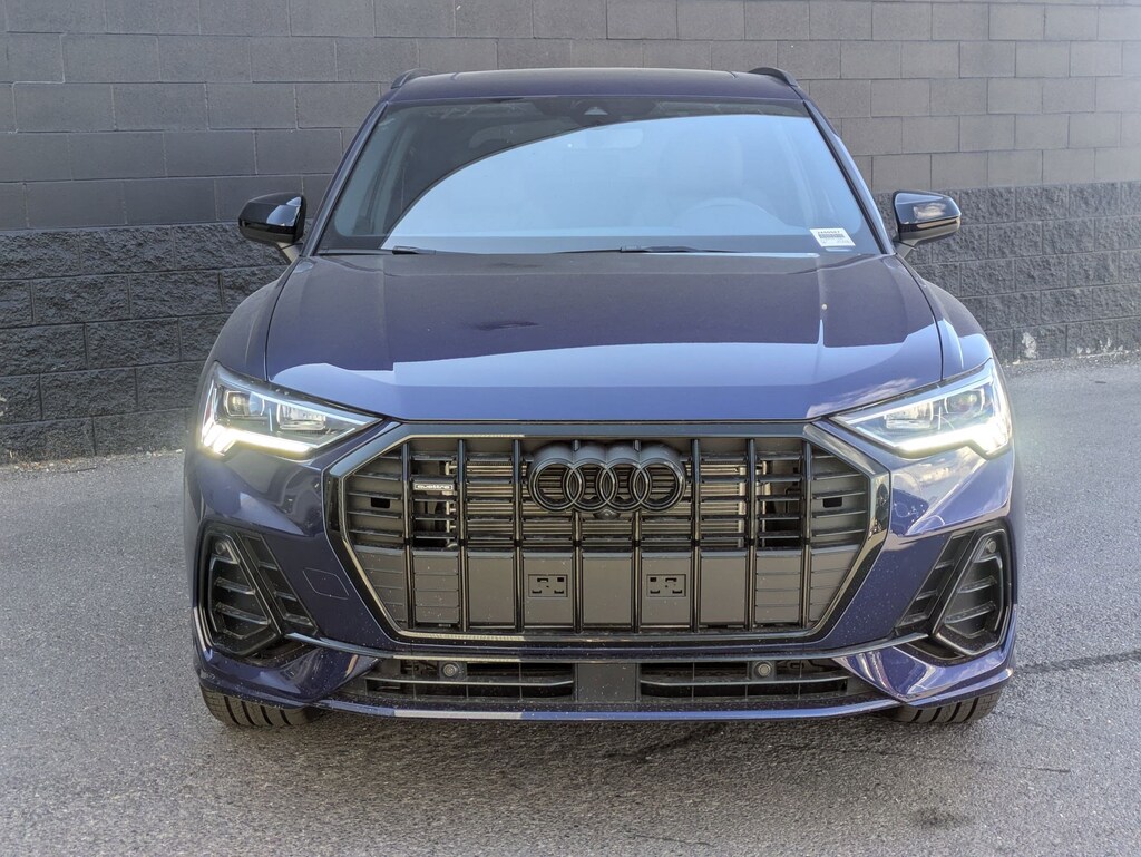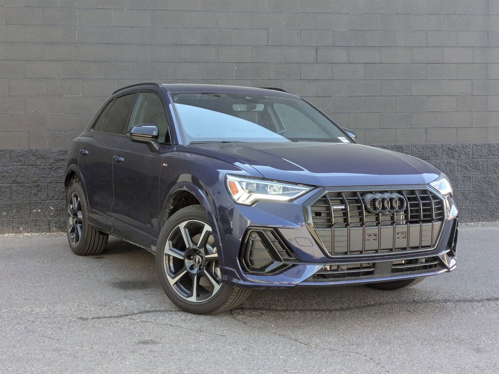 Navarra Blue Metallic 2025 Audi Q3 Premium Plus S Line quattro quattro 8-Speed Automatic with Tiptronic 2.0L 4-Cylinder TFSI 10 Speakers, 4-Wheel Disc Brakes, ABS brakes, Air Conditioning, Alloy wheels, AM/FM radio, Audi smartphone interface (Apple CarPlay/Android Auto), Auto High-beam Headlights, Automatic temperature control, Brake assist, Bumpers: body-color, Delay-off headlights, Driver door bin, Driver vanity mirror, Dual front impact airbags, Dual front side impact airbags, Electronic Stability Control, Emergency communication system: Audi connect CARE, Exterior Parking Camera Rear, Four wheel independent suspension, Front anti-roll bar, Front Bucket Seats, Front Center Armrest, Front dual zone A/C, Front fog lights, Front reading lights, Fully automatic headlights, Heated door mirrors, Heated Front Bucket Seats, Heated front seats, Illuminated entry, Knee airbag, Leather Seating Surfaces, Leather Shift Knob, Leather steering wheel, Low tire pressure warning, Occupant sensing airbag, Outside temperature display, Overhead airbag, Overhead console, Panic alarm, Passenger door bin, Passenger vanity mirror, Power door mirrors, Power driver seat, Power Liftgate, Power moonroof: Panoramic, Power passenger seat, Power steering, Power windows, Radio data system, Radio: Audi Sound System, Rain sensing wipers, Rear air conditioning, Rear anti-roll bar, Rear fog lights, Rear reading lights, Rear seat center armrest, Rear window defroster, Rear window wiper, Remote keyless entry, Speed control, Speed-sensing steering, Split folding rear seat, Spoiler, Steering wheel mounted audio controls, Tachometer, Telescoping steering wheel, Tilt steering wheel, Traction control, Trip computer, Turn signal indicator mirrors, Variably intermittent wipers, Wheels: 18 5-V-Spoke-S Design.20/28 City/Highway MPGAdvertised Prices do not include any dealer installed options and advertised prices exclude leases.