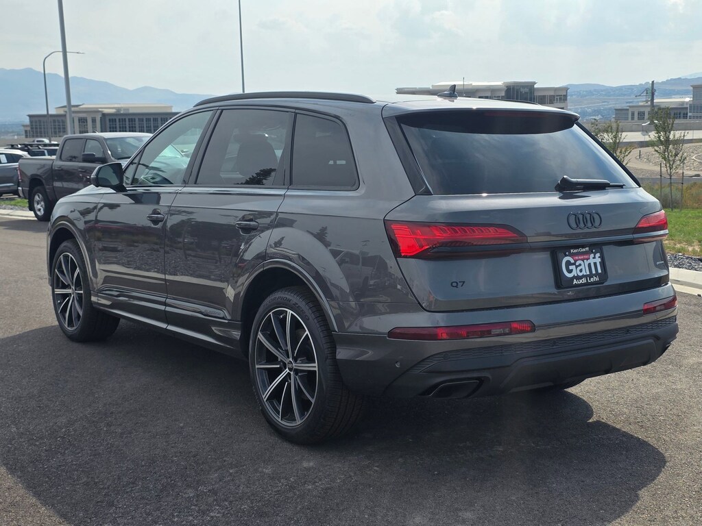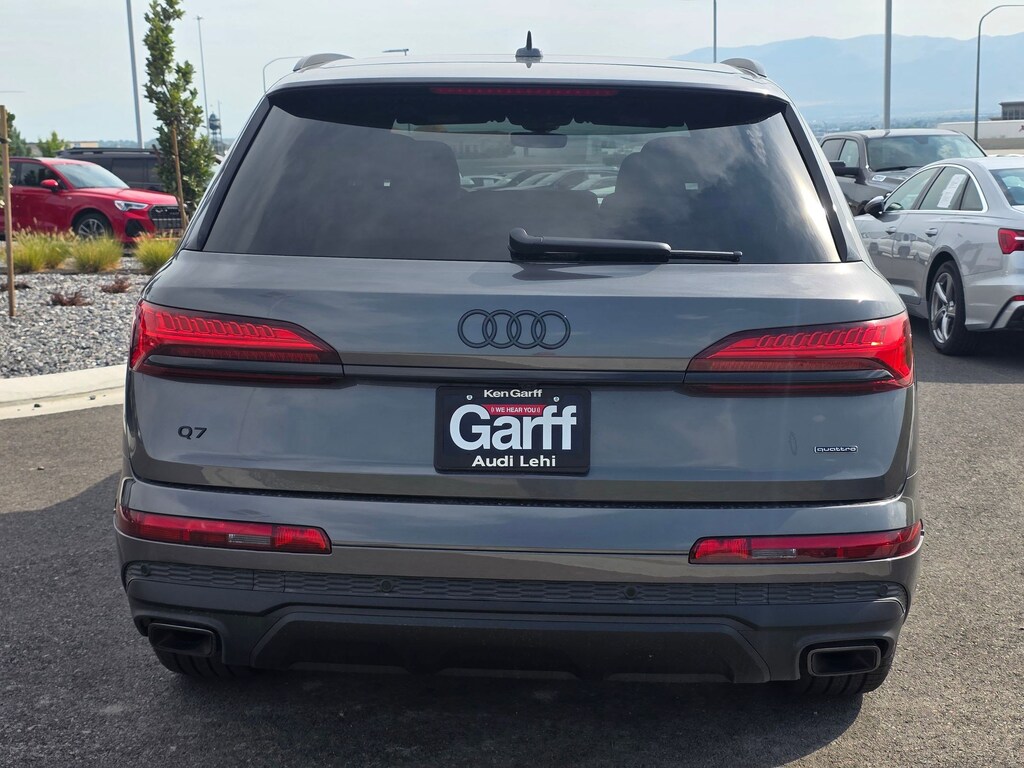Samurai Gray Metallic 2025 Audi Q7 45 Premium Plus quattro quattro 8-Speed Automatic with Tiptronic 2.0L 4-Cylinder TFSI 10 Speakers, 3rd row seats, 4-Wheel Disc Brakes, ABS brakes, Air Conditioning, Alloy wheels, AM/FM radio: SiriusXM w/ 360L, Auto High-beam Headlights, Auto-dimming door mirrors, Auto-dimming Rear-View mirror, Automatic temperature control, Brake assist, Bumpers: body-color, Compass, Delay-off headlights, Driver door bin, Driver vanity mirror, Dual front impact airbags, Dual front side impact airbags, Electronic Stability Control, Emergency communication system: Audi connect CARE, Exterior Parking Camera Rear, Four wheel independent suspension, Front anti-roll bar, Front Bucket Seats, Front Center Armrest, Front dual zone A/C, Front fog lights, Front reading lights, Fully automatic headlights, Garage door transmitter: HomeLink, Genuine wood door panel insert, Heated door mirrors, Heated Front Bucket Seats, Heated front seats, Illuminated entry, Leather Seating Surfaces, Leather Shift Knob, Leather steering wheel, Low tire pressure warning, Memory seat, Navigation system: Audi MMI Navigation plus with Touch Response, Occupant sensing airbag, Outside temperature display, Overhead airbag, Overhead console, Panic alarm, Passenger door bin, Passenger vanity mirror, Power door mirrors, Power driver seat, Power Liftgate, Power moonroof: Panoramic, Power passenger seat, Power steering, Power windows, Radio data system, Radio: Audi Sound System, Rain sensing wipers, Rear air conditioning, Rear anti-roll bar, Rear fog lights, Rear reading lights, Rear seat center armrest, Rear side impact airbag, Rear window defroster, Rear window wiper, Reclining 3rd row seat, Remote keyless entry, Security system, Speed control, Speed-sensing steering, Split folding rear seat, Spoiler, Steering wheel memory, Steering wheel mounted audio controls, Tachometer, Telescoping steering wheel, Tilt steering wheel, Traction control, Trip computer, Turn signal indicator mirrors, Variably intermittent wipers, Wheels: 19 5-Arm-Star Design.20/26 City/Highway MPGAdvertised Prices do not include any dealer installed options and advertised prices exclude leases.