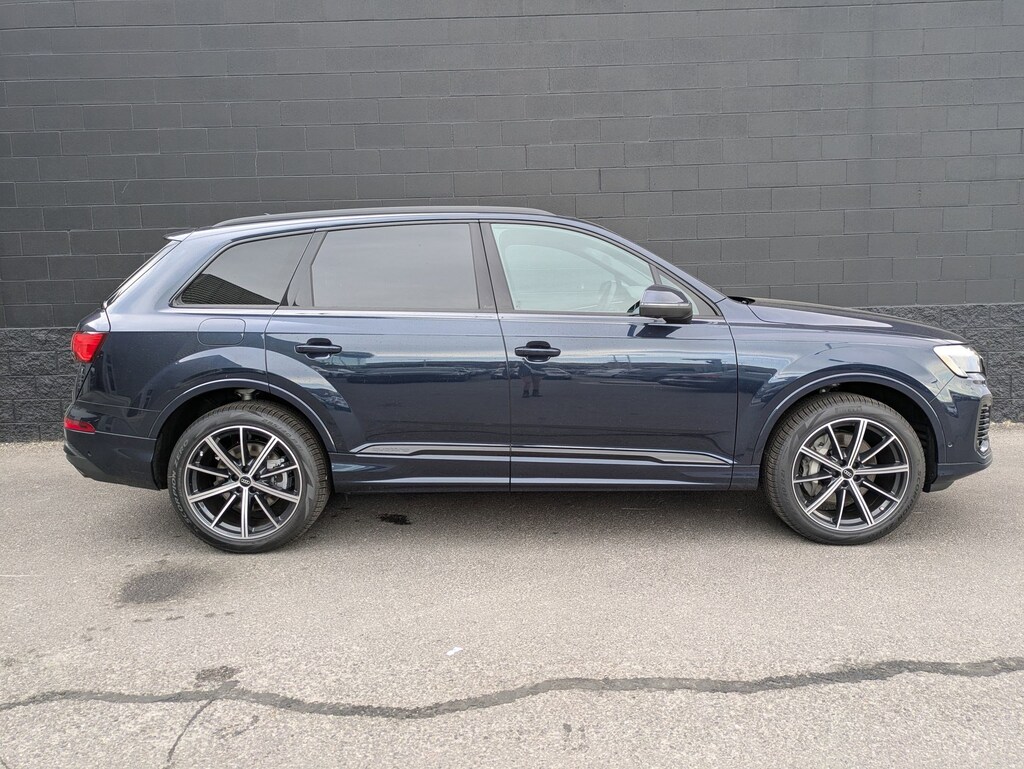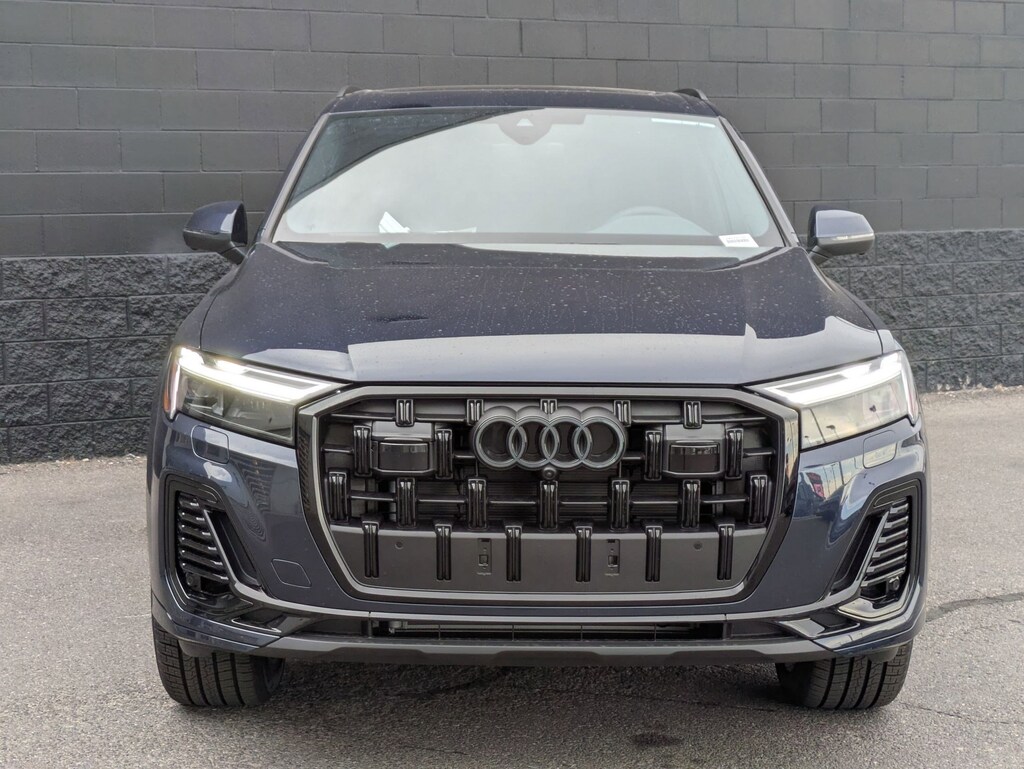 Waitomo Blue Metallic 2025 Audi Q7 45 Premium Plus quattro quattro 8-Speed Automatic with Tiptronic 2.0L 4-Cylinder TFSI 10 Speakers, 3rd row seats, 4-Wheel Disc Brakes, ABS brakes, Air Conditioning, Alloy wheels, AM/FM radio: SiriusXM w/360L, Auto High-beam Headlights, Auto-dimming door mirrors, Auto-dimming Rear-View mirror, Automatic temperature control, Brake assist, Bumpers: body-color, Compass, Delay-off headlights, Driver door bin, Driver vanity mirror, Dual front impact airbags, Dual front side impact airbags, Electronic Stability Control, Emergency communication system: Audi connect CARE, Exterior Parking Camera Rear, Four wheel independent suspension, Front anti-roll bar, Front Bucket Seats, Front Center Armrest, Front dual zone A/C, Front fog lights, Front reading lights, Fully automatic headlights, Garage door transmitter: HomeLink, Genuine wood door panel insert, Heated door mirrors, Heated Front Bucket Seats, Heated front seats, Illuminated entry, Leather Seating Surfaces, Leather Shift Knob, Leather steering wheel, Low tire pressure warning, Memory seat, Navigation system: Audi MMI Navigation plus with Touch Response, Occupant sensing airbag, Outside temperature display, Overhead airbag, Overhead console, Panic alarm, Passenger door bin, Passenger vanity mirror, Power door mirrors, Power driver seat, Power Liftgate, Power moonroof: Panoramic, Power passenger seat, Power steering, Power windows, Radio data system, Radio: Audi Sound System, Rain sensing wipers, Rear air conditioning, Rear anti-roll bar, Rear fog lights, Rear reading lights, Rear seat center armrest, Rear side impact airbag, Rear window defroster, Rear window wiper, Reclining 3rd row seat, Remote keyless entry, Security system, Speed control, Speed-sensing steering, Split folding rear seat, Spoiler, Steering wheel memory, Steering wheel mounted audio controls, Tachometer, Telescoping steering wheel, Tilt steering wheel, Traction control, Trip computer, Turn signal indicator mirrors, Variably intermittent wipers, Wheels: 19 5-Arm-Star Design.20/26 City/Highway MPGAdvertised Prices do not include any dealer installed options and advertised prices exclude leases.