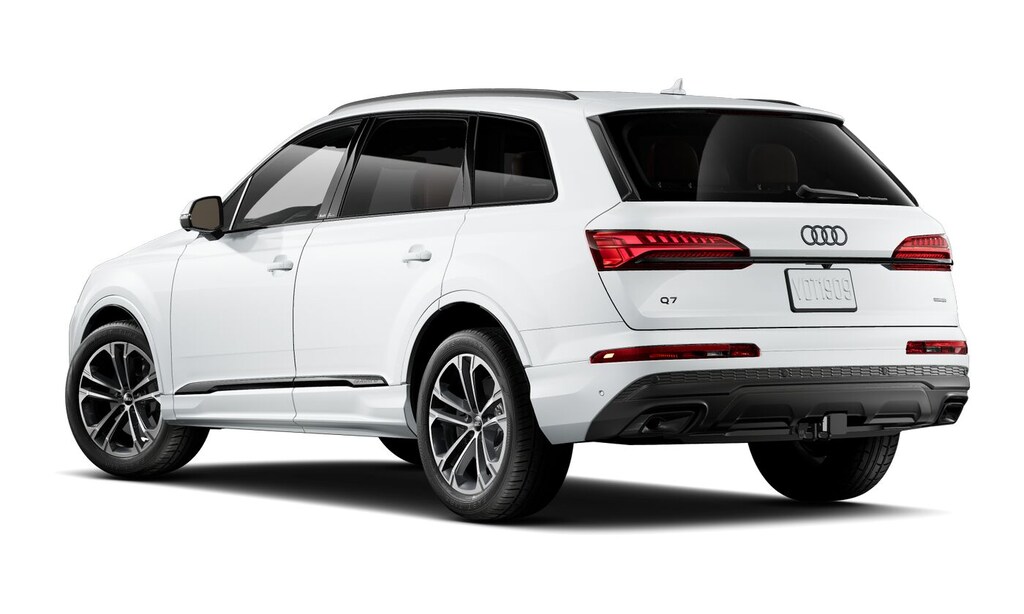 Glacier White Metallic 2025 Audi Q7 45 Premium quattro quattro 8-Speed Automatic with Tiptronic 2.0L 4-Cylinder TFSI 10 Speakers, 3rd row seats, 4-Wheel Disc Brakes, ABS brakes, Air Conditioning, Alloy wheels, AM/FM radio: SiriusXM w/ 360L, Auto High-beam Headlights, Auto-dimming door mirrors, Auto-dimming Rear-View mirror, Automatic temperature control, Brake assist, Bumpers: body-color, Compass, Delay-off headlights, Driver door bin, Driver vanity mirror, Dual front impact airbags, Dual front side impact airbags, Electronic Stability Control, Emergency communication system: Audi connect CARE, Exterior Parking Camera Rear, Four wheel independent suspension, Front anti-roll bar, Front Bucket Seats, Front Center Armrest, Front dual zone A/C, Front fog lights, Front reading lights, Fully automatic headlights, Garage door transmitter: HomeLink, Genuine wood door panel insert, Heated door mirrors, Heated Front Bucket Seats, Heated front seats, Illuminated entry, Leather Seating Surfaces, Leather Shift Knob, Leather steering wheel, Low tire pressure warning, Memory seat, Navigation system: Audi MMI Navigation plus with Touch Response, Occupant sensing airbag, Outside temperature display, Overhead airbag, Overhead console, Panic alarm, Passenger door bin, Passenger vanity mirror, Power door mirrors, Power driver seat, Power Liftgate, Power moonroof: Panoramic, Power passenger seat, Power steering, Power windows, Radio data system, Radio: Audi Sound System, Rain sensing wipers, Rear air conditioning, Rear anti-roll bar, Rear fog lights, Rear reading lights, Rear seat center armrest, Rear side impact airbag, Rear window defroster, Rear window wiper, Reclining 3rd row seat, Remote keyless entry, Security system, Speed control, Speed-sensing steering, Split folding rear seat, Spoiler, Steering wheel memory, Steering wheel mounted audio controls, Tachometer, Telescoping steering wheel, Tilt steering wheel, Traction control, Trip computer, Turn signal indicator mirrors, Variably intermittent wipers, Wheels: 19 5-Arm-Star Design.20/26 City/Highway MPGAdvertised Prices do not include any dealer installed options and advertised prices exclude leases.