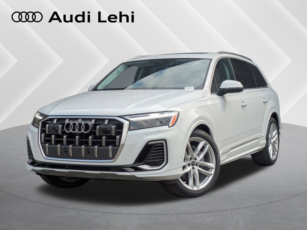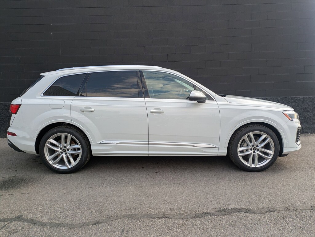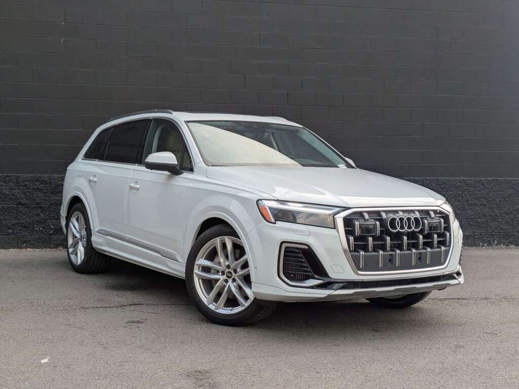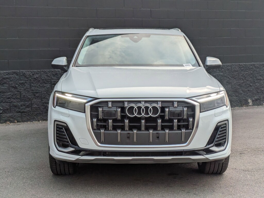 Glacier White Metallic 2025 Audi Q7 55 Premium Plus quattro quattro 8-Speed Automatic with Tiptronic 3.0L TFSI 10 Speakers, 3rd row seats, 4-Wheel Disc Brakes, ABS brakes, Air Conditioning, Alloy wheels, AM/FM radio: SiriusXM w/360L, Auto High-beam Headlights, Auto-dimming door mirrors, Auto-dimming Rear-View mirror, Automatic temperature control, Brake assist, Bumpers: body-color, Compass, Delay-off headlights, Driver door bin, Driver vanity mirror, Dual front impact airbags, Dual front side impact airbags, Electronic Stability Control, Emergency communication system: Audi connect CARE, Exterior Parking Camera Rear, Four wheel independent suspension, Front anti-roll bar, Front Bucket Seats, Front Center Armrest, Front dual zone A/C, Front fog lights, Front reading lights, Fully automatic headlights, Garage door transmitter: HomeLink, Genuine wood door panel insert, Heated door mirrors, Heated Front Bucket Seats, Heated front seats, Illuminated entry, Leather Seating Surfaces, Leather Shift Knob, Leather steering wheel, Low tire pressure warning, Memory seat, Navigation system: Audi MMI Navigation plus with Touch Response, Occupant sensing airbag, Outside temperature display, Overhead airbag, Overhead console, Panic alarm, Passenger door bin, Passenger vanity mirror, Power door mirrors, Power driver seat, Power Liftgate, Power moonroof: Panoramic, Power passenger seat, Power steering, Power windows, Radio data system, Radio: Audi Sound System, Rain sensing wipers, Rear air conditioning, Rear anti-roll bar, Rear fog lights, Rear reading lights, Rear seat center armrest, Rear side impact airbag, Rear window defroster, Rear window wiper, Reclining 3rd row seat, Remote keyless entry, Security system, Speed control, Speed-sensing steering, Split folding rear seat, Spoiler, Steering wheel memory, Steering wheel mounted audio controls, Tachometer, Telescoping steering wheel, Tilt steering wheel, Traction control, Trip computer, Turn signal indicator mirrors, Variably intermittent wipers, Wheels: 19 5-Arm-Star Design.Advertised Prices do not include any dealer installed options and advertised prices exclude leases.