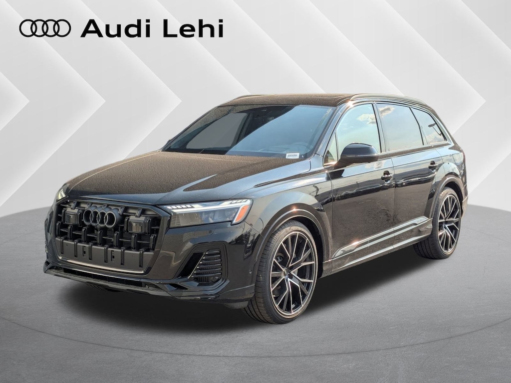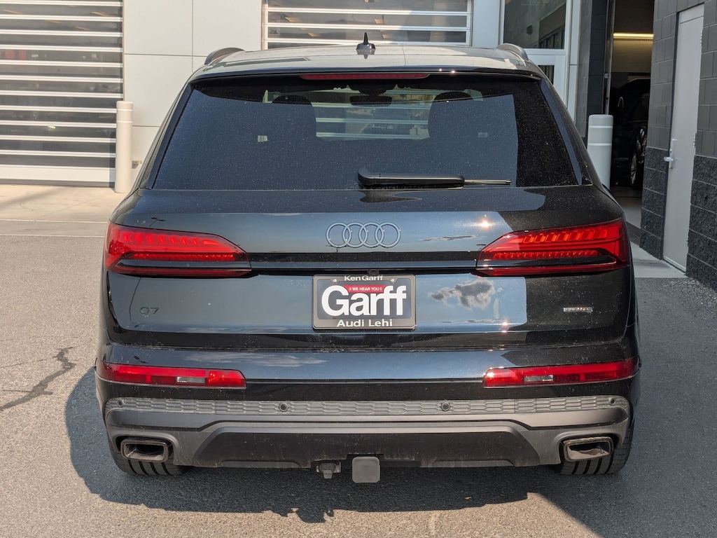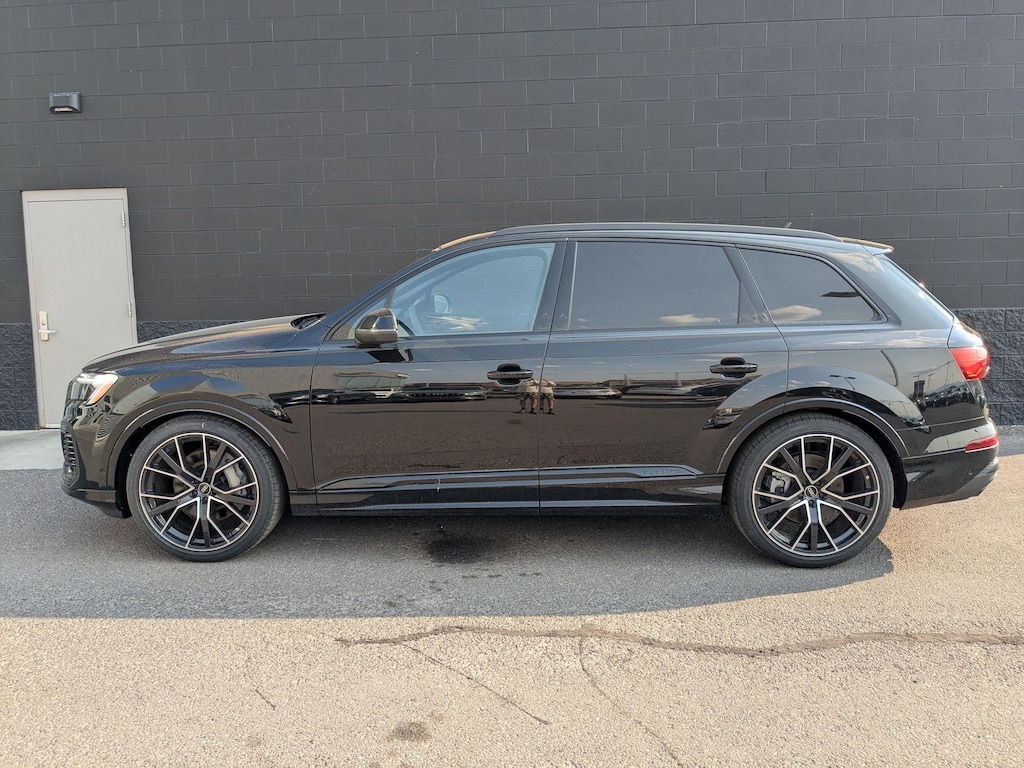 Mythos Black Metallic 2025 Audi Q7 55 Prestige quattro quattro 8-Speed Automatic with Tiptronic 3.0L TFSI 10 Speakers, 3rd row seats, 4-Wheel Disc Brakes, ABS brakes, Air Conditioning, Alloy wheels, AM/FM radio: SiriusXM w/ 360L, Auto High-beam Headlights, Auto-dimming door mirrors, Auto-dimming Rear-View mirror, Automatic temperature control, Brake assist, Bumpers: body-color, Compass, Delay-off headlights, Driver door bin, Driver vanity mirror, Dual front impact airbags, Dual front side impact airbags, Electronic Stability Control, Emergency communication system: Audi connect CARE, Exterior Parking Camera Rear, Four wheel independent suspension, Front anti-roll bar, Front Bucket Seats, Front Center Armrest, Front dual zone A/C, Front fog lights, Front reading lights, Fully automatic headlights, Garage door transmitter: HomeLink, Genuine wood door panel insert, Heated door mirrors, Heated Front Bucket Seats, Heated front seats, Illuminated entry, Leather Seating Surfaces, Leather Shift Knob, Leather steering wheel, Low tire pressure warning, Memory seat, Navigation system: Audi MMI Navigation plus with Touch Response, Occupant sensing airbag, Outside temperature display, Overhead airbag, Overhead console, Panic alarm, Passenger door bin, Passenger vanity mirror, Power door mirrors, Power driver seat, Power Liftgate, Power moonroof: Panoramic, Power passenger seat, Power steering, Power windows, Radio data system, Radio: Audi Sound System, Rain sensing wipers, Rear air conditioning, Rear anti-roll bar, Rear fog lights, Rear reading lights, Rear seat center armrest, Rear side impact airbag, Rear window defroster, Rear window wiper, Reclining 3rd row seat, Remote keyless entry, Security system, Speed control, Speed-sensing steering, Split folding rear seat, Spoiler, Steering wheel memory, Steering wheel mounted audio controls, Tachometer, Telescoping steering wheel, Tilt steering wheel, Traction control, Trip computer, Turn signal indicator mirrors, Variably intermittent wipers, Wheels: 19 5-Arm-Star Design.Advertised Prices do not include any dealer installed options and advertised prices exclude leases.