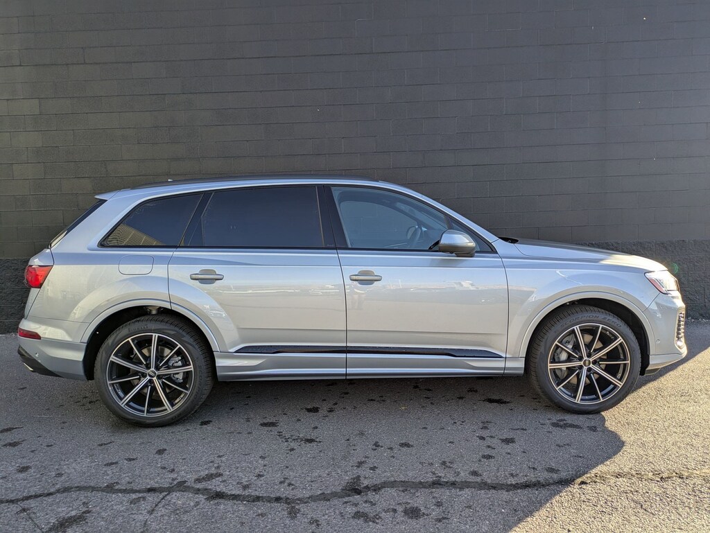 satellite silver metallic 2026 Audi Q7 45 Premium Plus quattro quattro 8-Speed Automatic with Tiptronic 2.0L 4-Cylinder TFSI 10 Speakers, 3rd row seats, 4-Wheel Disc Brakes, ABS brakes, Air Conditioning, Alloy wheels, AM/FM radio, Auto High-beam Headlights, Auto-dimming door mirrors, Auto-dimming Rear-View mirror, Automatic temperature control, Brake assist, Bumpers: body-color, Compass, Delay-off headlights, Driver door bin, Driver vanity mirror, Dual front impact airbags, Dual front side impact airbags, Electronic Stability Control, Emergency communication system: Audi connect CARE, Exterior Parking Camera Rear, Four wheel independent suspension, Front anti-roll bar, Front Bucket Seats, Front Center Armrest, Front dual zone A/C, Front fog lights, Front reading lights, Fully automatic headlights, Garage door transmitter: HomeLink, Genuine wood door panel insert, Heated door mirrors, Heated Front Bucket Seats, Heated front seats, Illuminated entry, Leather Seating Surfaces, Leather Shift Knob, Leather steering wheel, Low tire pressure warning, Memory seat, Navigation system: Audi MMI Navigation plus with Touch Response, Occupant sensing airbag, Outside temperature display, Overhead airbag, Overhead console, Panic alarm, Passenger door bin, Passenger vanity mirror, Power door mirrors, Power driver seat, Power Liftgate, Power moonroof: Panoramic, Power passenger seat, Power steering, Power windows, Radio data system, Radio: Audi Sound System, Rain sensing wipers, Rear air conditioning, Rear anti-roll bar, Rear fog lights, Rear reading lights, Rear seat center armrest, Rear side impact airbag, Rear window defroster, Rear window wiper, Reclining 3rd row seat, Remote keyless entry, Security system, Speed control, Speed-sensing steering, Split folding rear seat, Spoiler, Steering wheel memory, Steering wheel mounted audio controls, Tachometer, Telescoping steering wheel, Tilt steering wheel, Traction control, Trip computer, Turn signal indicator mirrors, Variably intermittent wipers, Wheels: 19 5-Arm-Star Design.20/26 City/Highway MPGAdvertised Prices do not include any dealer installed options and advertised prices exclude leases.