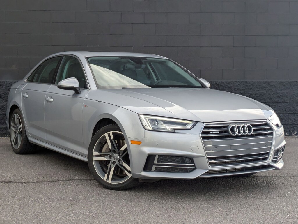 **Clean Carfax!!** Silver 2018 Audi A4 2.0T Premium Plus quattro 7-Speed Automatic S tronic 2.0L I4 TFSI DOHC Traditional Certified, 7-Speed Automatic S tronic, quattro, Gone, 10 Speakers, 4-Wheel Disc Brakes, ABS brakes, Air Conditioning, Alloy wheels, AM/FM radio, Anti-whiplash front head restraints, Audi smartphone interface (Apple CarPlay/Android Auto), Auto-dimming Rear-View mirror, Automatic temperature control, Brake assist, Bumpers: body-color, Compass, Delay-off headlights, Driver door bin, Driver vanity mirror, Dual front impact airbags, Dual front side impact airbags, Electronic Stability Control, Exterior Parking Camera Rear, Four wheel independent suspension, Front anti-roll bar, Front Bucket Seats, Front Center Armrest, Front dual zone A/C, Front fog lights, Front reading lights, Garage door transmitter: HomeLink, Heated 3-Step Front Bucket Seats, Heated door mirrors, Heated front seats, High intensity discharge headlights: Xenon plus, Illuminated entry, Knee airbag, Leather Seating Surfaces, Leather Shift Knob, Leather steering wheel, Low tire pressure warning, Occupant sensing airbag, Outside temperature display, Overhead airbag, Overhead console, Panic alarm, Passenger door bin, Passenger vanity mirror, Power door mirrors, Power driver seat, Power moonroof, Power passenger seat, Power steering, Power windows, Radio data system, Radio: Audi Sound System, Rain sensing wipers, Rear air conditioning, Rear anti-roll bar, Rear fog lights, Rear reading lights, Rear seat center armrest, Rear window defroster, Remote CD player, Remote keyless entry, Speed control, Speed-sensing steering, Speed-Sensitive Wipers, Split folding rear seat, Steering wheel mounted audio controls, Tachometer, Telescoping steering wheel, Tilt steering wheel, Traction control, Trip computer, Turn signal indicator mirrors, Variably intermittent wipers, Wheels: 7.5 x 17 5-Spoke-Y Design, 7-Speed Automatic S tronic, quattro, Gone.Recent Arrival! 24/34 City/Highway MPG Awards: * 2018 KBB.com 10 Most Awarded Brands
