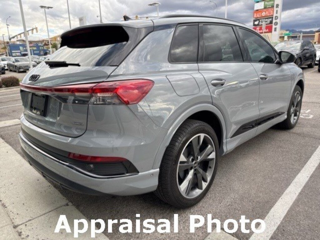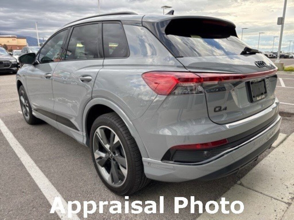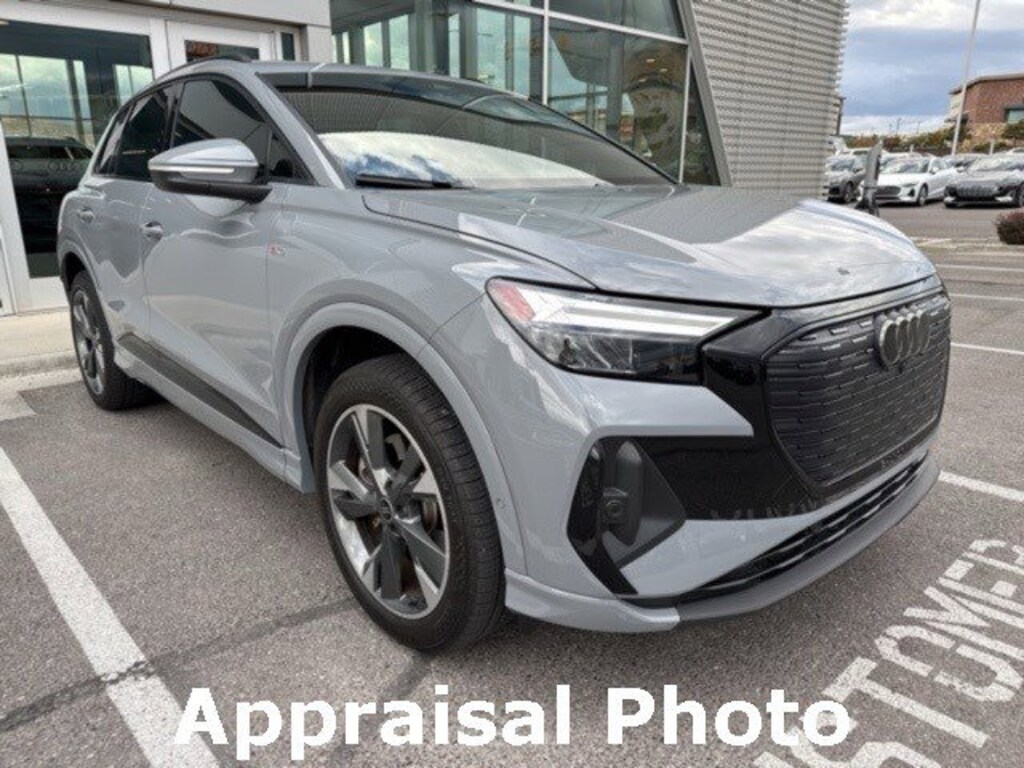 **CLEAN CARFAX 1 OWNER** Pebble Gray 2023 Audi Q4 e-tron Premium Plus QUATTRO! Pristine Condition! Black Optic Package! **Rare Santos Brown Interior** Single-Speed Automatic Electric Motor 8 Speakers, ABS brakes, Air Conditioning, Alloy wheels, Auto High-beam Headlights, Automatic temperature control, Brake assist, Bumpers: body-color, Delay-off headlights, Driver door bin, Driver vanity mirror, Dual front impact airbags, Dual front side impact airbags, Electronic Stability Control, Emergency communication system: Audi connect CARE, Exterior Parking Camera Rear, Four wheel independent suspension, Front anti-roll bar, Front Bucket Seats, Front Center Armrest, Front dual zone A/C, Front reading lights, Fully automatic headlights, Genuine wood dashboard insert, Heated door mirrors, Heated Front Seats, Heated front seats, Illuminated entry, Leather Seating Surfaces, Leather steering wheel, Low tire pressure warning, Occupant sensing airbag, Outside temperature display, Overhead airbag, Overhead console, Panic alarm, Passenger door bin, Passenger vanity mirror, Power door mirrors, Power driver seat, Power Liftgate, Power moonroof: Panoramic, Power steering, Power windows, Radio data system, Radio: Audi Sound System, Rain sensing wipers, Rear air conditioning, Rear anti-roll bar, Rear reading lights, Rear seat center armrest, Rear window defroster, Rear window wiper, Remote keyless entry, Security system, Speed control, Speed-sensing steering, Split folding rear seat, Spoiler, Steering wheel mounted audio controls, TBD Axle Ratio, Telescoping steering wheel, Tilt steering wheel, Traction control, Trip computer, Turn signal indicator mirrors, Variably intermittent wipers, Wheels: 19 5-Arm Design.Recent Arrival! 97/87 City/Highway MPG