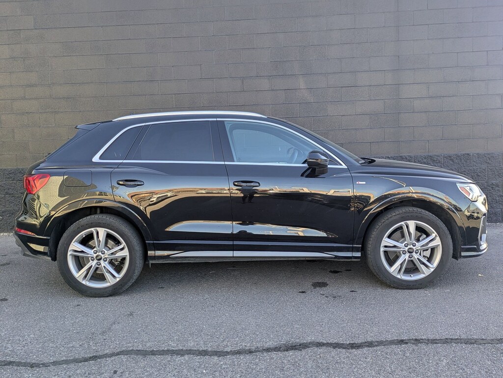 **Audi Certified Pre-Owned Clean Carfax 1 Owner!!**Black Metallic 2024 Audi Q3 Premium S Line quattro quattro 8-Speed Automatic with Tiptronic 2.0L 4-Cylinder TFSI Traditional Certified, 10 Speakers, 19 Wheel Package, 4-Wheel Disc Brakes, ABS brakes, Air Conditioning, Alarm w/Motion Sensor, Alloy wheels, AM/FM radio, Audi Advanced Key, Audi Beam-Rings, Audi Guard All-Weather Mats, Audi smartphone interface (Apple CarPlay/Android Auto), Auto High-beam Headlights, Auto-Dimming Power-Folding Exterior Mirrors, Auto-Dimming Rear-View Mirror, Automatic temperature control, Brake assist, Brown Gray Natural Wood Inlay, Bumpers: body-color, Convenience Package, Delay-off headlights, Driver door bin, Driver Seat Memory, Driver vanity mirror, Dual front impact airbags, Dual front side impact airbags, Electronic Stability Control, Emergency communication system: Audi connect CARE, Exterior Parking Camera Rear, Four wheel independent suspension, Front anti-roll bar, Front Bucket Seats, Front Center Armrest, Front dual zone A/C, Front fog lights, Front reading lights, Fully automatic headlights, Garage Door Opener (HomeLink), Heated door mirrors, Heated Front Bucket Seats, Heated front seats, Illuminated entry, Knee airbag, Lane Guidance & Emergency Assist Delete, Leather Seating Surfaces, Leather Shift Knob, Leather steering wheel, LED Interior Lighting Package, Low tire pressure warning, Occupant sensing airbag, Outside temperature display, Overhead airbag, Overhead console, Panic alarm, Passenger door bin, Passenger vanity mirror, Power door mirrors, Power driver seat, Power Liftgate, Power moonroof: Panoramic, Power passenger seat, Power steering, Power windows, Radio data system, Radio: Audi Sound System, Rain sensing wipers, Rear air conditioning, Rear anti-roll bar, Rear fog lights, Rear reading lights, Rear seat center armrest, Rear window defroster, Rear window wiper, Remote keyless entry, SiriusXM, Speed control, Speed-sensing steering, Split folding rear seat, Spoiler, Steering wheel mounted audio controls, Tachometer, Telescoping steering wheel, Tilt steering wheel, Traction control, Trip computer, Turn signal indicator mirrors, Variably intermittent wipers, Wheels: 18 5-V-Spoke-S Design, Wheels: 19 5-Double-Spoke Dynamic Design, Wireless Phone Charging Pad.Recent Arrival! 20/28 City/Highway MPG