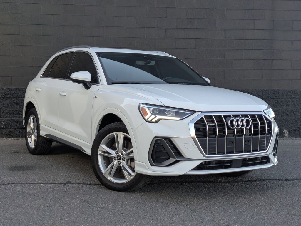 **Certified Audi Pre-Owned Clean Carfax 1 Owner!!** Glacier White Metallic 2024 Audi Q3 Premium S Line quattro 8-Speed Automatic with Tiptronic 2.0L 4-Cylinder TFSI Audi Certified pre-owned Certified, 10 Speakers, 4-Wheel Disc Brakes, ABS brakes, Air Conditioning, Alarm w/Motion Sensor, Alloy wheels, AM/FM radio, Audi Advanced Key, Audi smartphone interface (Apple CarPlay/Android Auto), Auto High-beam Headlights, Auto-Dimming Power-Folding Exterior Mirrors, Auto-Dimming Rear-View Mirror, Automatic temperature control, Brake assist, Bumpers: body-color, Convenience Package, Delay-off headlights, Driver door bin, Driver Seat Memory, Driver vanity mirror, Dual front impact airbags, Dual front side impact airbags, Electronic Stability Control, Emergency communication system: Audi connect CARE, Exterior Parking Camera Rear, Four wheel independent suspension, Front anti-roll bar, Front Bucket Seats, Front Center Armrest, Front dual zone A/C, Front fog lights, Front reading lights, Fully automatic headlights, Garage Door Opener (HomeLink), Heated door mirrors, Heated Front Bucket Seats, Heated front seats, Illuminated entry, Knee airbag, Leather Seating Surfaces, Leather Shift Knob, Leather steering wheel, LED Interior Lighting Package, Low tire pressure warning, Occupant sensing airbag, Outside temperature display, Overhead airbag, Overhead console, Panic alarm, Passenger door bin, Passenger vanity mirror, Power door mirrors, Power driver seat, Power Liftgate, Power moonroof: Panoramic, Power passenger seat, Power steering, Power windows, Radio data system, Radio: Audi Sound System, Rain sensing wipers, Rear air conditioning, Rear anti-roll bar, Rear fog lights, Rear reading lights, Rear seat center armrest, Rear window defroster, Rear window wiper, Remote keyless entry, SiriusXM, Speed control, Speed-sensing steering, Split folding rear seat, Spoiler, Steering wheel mounted audio controls, Tachometer, Telescoping steering wheel, Tilt steering wheel, Traction control, Trip computer, Turn signal indicator mirrors, Variably intermittent wipers, Wheels: 18 5-V-Spoke-S Design, Wireless Phone Charging Pad.20/28 City/Highway MPGAudi Certified pre-owned Details: * Roadside Assistance * Certified pre-owned Limited Warranty: For all CPO sales on or after 8/1/23, if New Vehicle Limited Warranty (NVLW) coverage remains at time of CPO purchase, CPO Limited Warranty Coverage commences upon expiration of NVLW and continues for a period of 1 year or 20,000 miles, whichever occurs first. If NVLW coverage has expired at time of CPO purchase, CPO Limited Warranty coverage commences at time of purchase and continues for 1 year or 20,000 miles, whichever occurs first. Roadside Assistance for 1 year with unlimited miles, whichever occurs first. Effective 8/1/23 onward, private party transfers no longer accepted, eligible for previous CPO customers with sale dates prior to 8/1/23 to utilize if they so choose. * Vehicle History * Warranty Deductible: $0 * 125+ Point Inspection