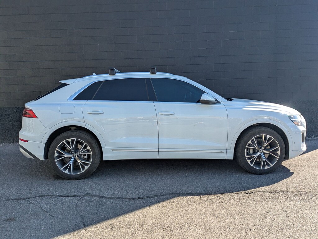 Clean Carfax 1 Owner! Glacier White 2024 Audi Q8 55 Premium Plus QUATTRO! 8-Speed Automatic with Tiptronic 3.0L V6 Turbocharged DOHC 24V LEV3-ULEV70 335hp 10 Speakers, 4-Wheel Disc Brakes, 4-Zone Automatic Climate Control, ABS brakes, Adaptive suspension, Air Conditioning, Alloy wheels, AM/FM radio: SiriusXM w/ 360L, Audi Cargo Box, Auto High-beam Headlights, Auto-dimming door mirrors, Auto-dimming Rear-View mirror, Automatic temperature control, Bang & Olufsen 3D Premium Sound System, Brake assist, Bumpers: body-color, Compass, Convenience Package, Delay-off headlights, Driver door bin, Driver vanity mirror, Dual front impact airbags, Dual front side impact airbags, Dual-Pane Acoustic Glass for Side Windows, Electronic Stability Control, Emergency communication system: Audi connect CARE, Executive Package, Exterior Parking Camera Rear, Four wheel independent suspension, Front & Rear Doors Audi Beam-Rings, Front anti-roll bar, Front Bucket Seats, Front Center Armrest, Front dual zone A/C, Front fog lights, Front reading lights, Front Seats w/Ventilation, Fully automatic headlights, Garage door transmitter: HomeLink, Genuine wood door panel insert, Headlight cleaning, Heated door mirrors, Heated Front Bucket Seats, Heated front seats, Heated Rear Seats, Heated Steering Wheel, Illuminated Door Sills, Illuminated entry, Leather Seating Surfaces, Leather Shift Knob, Leather steering wheel, LED Interior Lighting Plus Package, Low tire pressure warning, Memory seat, Navigation system: Audi MMI Navigation with Touch Response, Occupant sensing airbag, Outside temperature display, Overhead airbag, Overhead console, Panic alarm, Passenger door bin, Passenger vanity mirror, Power door mirrors, Power driver seat, Power Liftgate, Power moonroof: Panoramic, Power passenger seat, Power Rear Side Windows, Power steering, Power windows, Premium Plus Package, Radio data system, Radio: Audi MMI Nav Plus w/MMI Touch Response, Rain sensing wipers, Rear air conditioning, Rear anti-roll bar, Rear fog lights, Rear reading lights, Rear seat center armrest, Rear side impact airbag, Rear window defroster, Rear window wiper, Remote keyless entry, Security system, Speed control, Speed-sensing steering, Split folding rear seat, Spoiler, Steering wheel memory, Steering wheel mounted audio controls, Tachometer, TBD Axle Ratio, Telescoping steering wheel, Tilt steering wheel, Top View Camera System, Tow Package, Traction control, Traffic Sign Recognition, Trailer hitch, Trip computer, Turn signal indicator mirrors, Variably intermittent wipers, Wheels: 21 5-W-Spoke Design Diamond Turned Finish, Wireless Phone Charging Pad.