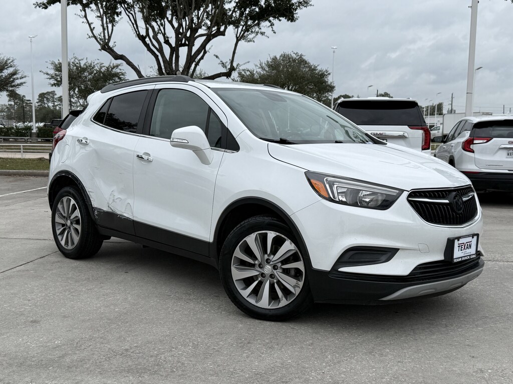 2-Way Manual Front Passenger Seat Adjuster, 3.53 Final Drive Axle Ratio, 4-Wheel Disc Brakes, 6 Speakers, 6-Speaker Audio System, 6-Way Power Driver Seat Adjuster, ABS brakes, Air Conditioning, Alloy wheels, AM/FM radio: SiriusXM, Apple CarPlay/Android Auto, Brake assist, Bumpers: body-color, Cloth w/Leatherette Seat Trim, Compass, Delay-off headlights, Driver door bin, Driver vanity mirror, Driver's Seat Mounted Armrest, Dual front impact airbags, Dual front side impact airbags, Electronic Stability Control, Emergency communication system: OnStar and Buick connected services capable, Exterior Parking Camera Rear, Front anti-roll bar, Front Bucket Seats, Front License Plate Bracket, Front reading lights, Front wheel independent suspension, Fully automatic headlights, Heated door mirrors, Illuminated entry, Knee airbag, Low tire pressure warning, Occupant sensing airbag, Outside temperature display, Overhead airbag, Panic alarm, Passenger door bin, Passenger vanity mirror, Power door mirrors, Power driver seat, Power steering, Power windows, Preferred Equipment Group 1SB, Premium All-Weather Floor Liners (LPO), Radio data system, Radio: Buick Infotainment System AM/FM Stereo, Rear seat center armrest, Rear side impact airbag, Rear window defroster, Rear window wiper, Remote keyless entry, Remote Vehicle Starter System, Ride & Handling Suspension, Roof rack: rails only, Security system, SiriusXM Radio, Speed control, Speed-sensing steering, Split folding rear seat, Spoiler, Steering wheel mounted audio controls, Tachometer, Telescoping steering wheel, Tilt steering wheel, Traction control, Trip computer, Turn signal indicator mirrors, Variably intermittent wipers, Wheels: 18 Machined-Face Alloy.Texan GMC Buick is delighted to offer this good-looking 2019 Buick Encore Preferred. FWD Summit WhiteCertified. 25/30 City/Highway MPGPriced below KBB Fair Purchase Price!Awards: * JD Power Dependability StudyService Loaners...Free WiFi.....Business Center....Roadside Assistance...All Included!! Our Mission: To be the most esteemed automotive group in the eyes of our employees, customers, and partners. Our Promise: We listen and provide a trusted, easy, and enjoyable experience. Our Philosophy: We create lifetime customers. Advertised prices exclude leases. Vehicle may or may not be equipped with vehicle protection products or accessories that are not required for purchase.