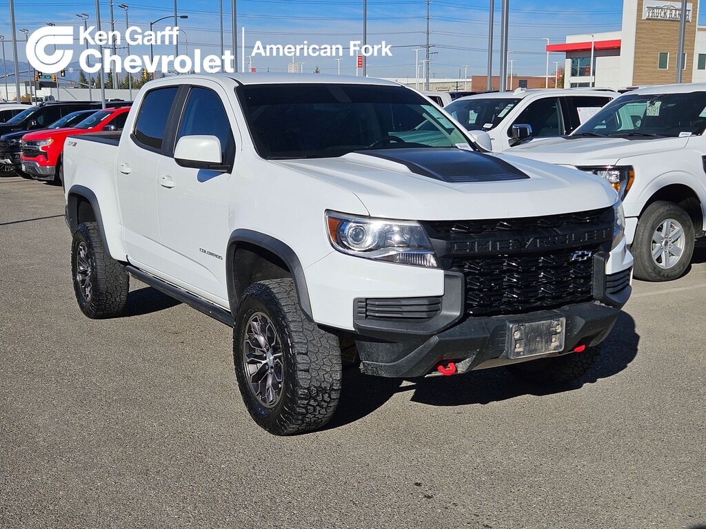 Ken Garff Chevrolet is pleased to offer this tough-looking 2021 Chevrolet Colorado. ZR2 4WDConquer any terrain in this rugged 2021 Chevrolet Colorado ZR2! Powered by a 3.6L V6 DOHC 24V engine, it delivers 308 horsepower and serious off-road capability. The Multimatic DSSV dampers, front and rear electronic locking differentials, and off-road suspension make every adventure unstoppable. Inside, enjoy modern comfort with leather-appointed seats, heated front seats, Apple CarPlay/Android Auto, and a premium audio system. Tough, capable, and ready for anything the Colorado ZR2 is built to dominate on and off the road!Clean Carfax One Owner!! This one won't last long, call us for a test drive today!Includes GarffCare! (Complimentary Towing along Wasatch Front, Roadside Assistance, Complimentary Annual State Safety Inspection, Flat Tire Repair, and Car Wash with every Service Visit)Recent Arrival! Summit White 2021 Chevrolet Colorado ZR2