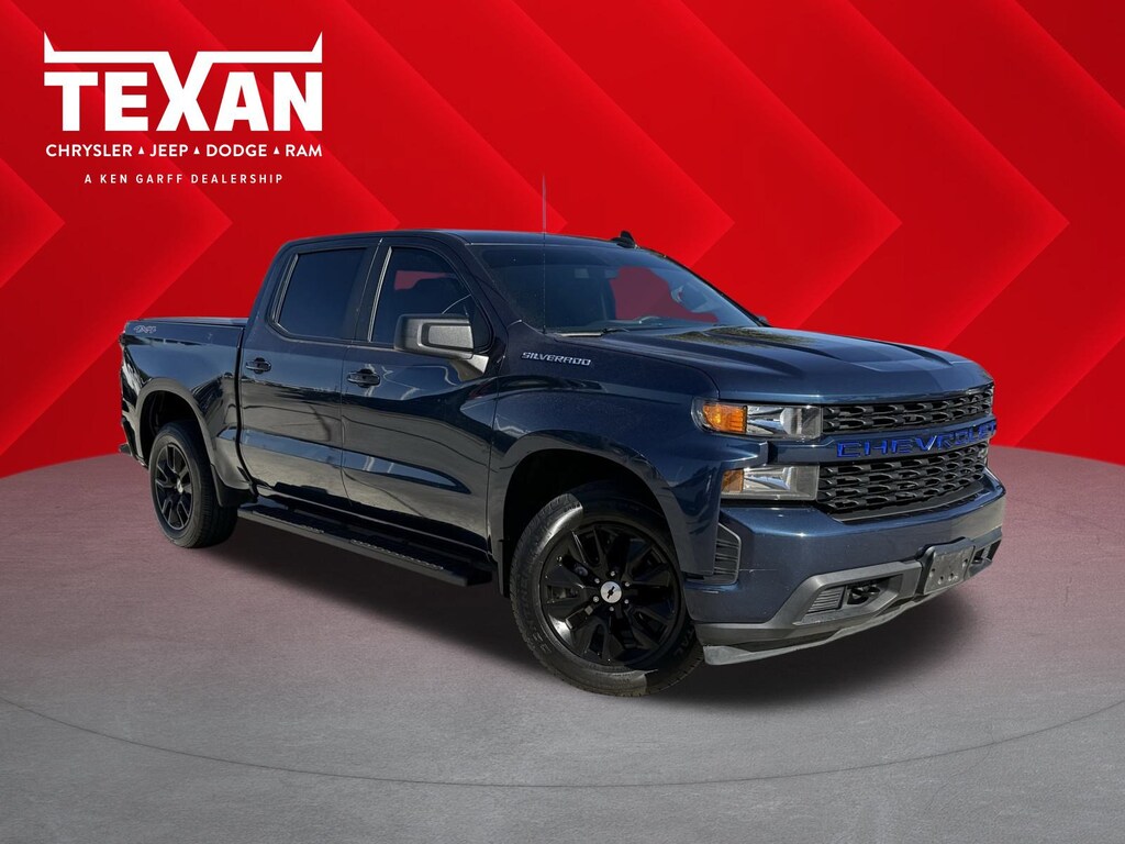Clean CarFax!, Clean Vehicle History, Non Smoker Vehicle, LOCAL TRADE, ALL VEHICLES UNDERGO A 115 POINT SAFETY INSPECTION, 8-Speed Automatic, 4WD, Black Cloth, 120-Volt Bed Mounted Power Outlet, 120-Volt Instrument Panel Power Outlet, 170 Amp Alternator, 3.42 Rear Axle Ratio, 3.5 Diagonal Monochromatic Display, 4-Wheel Disc Brakes, 40/20/40 Front Split Bench Seat, 4G LTE Wi-Fi Hot Spot Capable, 6 Speakers, ABS brakes, AM/FM radio: SiriusXM, Apple CarPlay/Android Auto, Automatic Stop/Start, Bluetooth® For Phone, Body Color Grille, Brake assist, Bumpers: body-color, Chevrolet Connected Access Capable, Cloth Seat Trim, Color-Keyed Carpeting Floor Covering, Compass, Custom Convenience Package, Custom Value Package, Deep-Tinted Glass, Delay-off headlights, Driver vanity mirror, Dual front impact airbags, Dual front side impact airbags, Electric Rear-Window Defogger, Electronic Cruise Control, Electronic Stability Control, EZ Lift Power Lock & Release Tailgate, Front anti-roll bar, Front Center Armrest w/Storage, Front Frame-Mounted Black Recovery Hooks, Front License Plate Kit, Front Rubberized Vinyl Floor Mats, Front wheel independent suspension, Fully automatic headlights, Heated door mirrors, Heavy Duty Suspension, Hitch Guidance, Infotainment Package, LED Cargo Area Lighting, Low tire pressure warning, Manual Tilt Wheel Steering Column, Occupant sensing airbag, OnStar & Chevrolet Connected Services Capable, Outside temperature display, Overhead airbag, Overhead console, Panic alarm, Passenger door bin, Polished Exhaust Tip, Power Door Locks, Power door mirrors, Power Front Windows w/Driver Express Up/Down, Power Front Windows w/Passenger Express Down, Power Rear Windows w/Express Down, Preferred Equipment Group 1CX, Premium audio system: Chevrolet Infotainment 3, Rear 60/40 Folding Bench Seat (Folds Up), Rear Rubberized-Vinyl Floor Mats, Rear step bumper, Remote Keyless Entry, Remote keyless entry, Remote Vehicle Starter System, Security system, SiriusXM Radio, Speed control, Speed-sensing steering, Split folding rear seat, Standard Tailgate, Theft Deterrent System (Unauthorized Entry), Tilt steering wheel, Traction control, Trailering Package, Variably intermittent wipers, Wheels: 20 x 9 Bright Silver Painted Aluminum. Priced below KBB Fair Purchase Price!Texan Dodge Chrysler Jeep Ram is proud to offer this hard-working 2021 Chevrolet Silverado 1500 Custom.In addition to transparent, no hassle pricing and upfront no hassle trade evaluation.....We provide an enjoyably brief and easy Sales Experience...Your Pace...Your Way....CONTACT US AT (281)359-7100 Advertised Prices do not include any dealer installed options and advertised prices exclude leases.