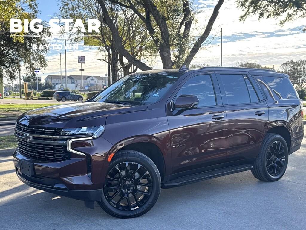 4WD, Jet Black/Victory Red Leather, 10-Way Power Driver & Passenger Seat Adjusters, 120 Point Safety Inspection, 1st & 2nd Row Color-Keyed Carpeted Floor Mats, 20 WHEELS, 2nd Row Pwr Release 60/40 Split-Folding Bench Seat, 3.23 Rear Axle Ratio, 3rd Row 60/40 Power-Folding Split-Bench Seat, 3rd row seats: split-bench, 4-Wheel Disc Brakes, 9 Speakers, ABS brakes, Air Conditioning, Alloy wheels, AM/FM radio: SiriusXM with 360L, Apple CarPlay/Android Auto, Auto High-beam Headlights, Auto-Dimming Inside Rear-View Mirror, Auto-dimming Rear-View mirror, Automatic Stop/Start, Automatic temperature control, BLUETOOTH / HANDSFREE, Bose 9-Speaker Stereo Audio System Feature, Brake assist, Bright Front & Rear Door Sill Plates, Bumpers: body-color, CLEAN CARFAX!, Color-Keyed Carpeting Floor Covering, Compass, Delay-off headlights, Driver & Front Outboard Passenger Airbags, Driver Alert Package, Driver door bin, Driver vanity mirror, Dual front impact airbags, Dual front side impact airbags, Dual-Pane Power Panoramic Sunroof, Electronic Stability Control, Emergency communication system: OnStar and Chevrolet connected services capable, Enhanced Driver Information Center, Floor Console w/Storage Area, Four wheel independent suspension, Front anti-roll bar, Front Bucket Seats, Front Center Armrest, Front dual zone A/C, Front High-Back Reclining Bucket Seats, Front reading lights, Fully automatic headlights, Garage door transmitter, Hands-Free Rear Power Programmable Liftgate, HD Surround Vision, Heated 2nd Row Outboard Seats, Heated door mirrors, Heated Driver & Front Passenger Seats, Heated front seats, Heated Steering Wheel, Illuminated entry, Infotainment Display, Lane Change Alert w/Side Blind Zone Alert, Leather steering wheel, Leather-Wrapped Steering Wheel, LED Daytime Running Lamps, License Plate Front Mounting Package, LOCAL TRADE IN!, Low tire pressure warning, Luxury Package, Memory seat, Memory Settings, Memory Settings for Driver, NAVIGATION, Navigation System, NON SMOKER VEHICLE, Not Equipped w/Heated Steering Wheel (DISC), Not Equipped w/Steering Column Lock, Occupant sensing airbag, Outside Heated Power-Adjustable Mirrors, Outside temperature display, Overhead airbag, Overhead console, Panic alarm, Passenger door bin, Passenger vanity mirror, Perforated Leather Seat Trim, Power door mirrors, Power driver seat, Power Liftgate, Power passenger seat, Power Release 2nd Row Bucket Seats, Power steering, Power Tilt & Telescopic Steering Column, Power windows, Preferred Equipment Group 1SP, Premium audio system: Chevrolet Infotainment System 3, Premium Smooth Ride Suspension, PROFESSIONALLY DETAILED FOR DELIVERY!, Radio: Chevrolet Infotainment 3 Premium System, Rain sensing wipers, Rear air conditioning, Rear anti-roll bar, Rear Cross Traffic Alert, Rear Pedestrian Alert, Rear reading lights, Rear seat center armrest, Rear window defroster, Rear window wiper, Remote keyless entry, Remote Start, Roof rack: rails only, Security system, Set of 4 Wheel Locks (LPO), SiriusXM Radio w/360L, Speed control, Speed-sensing steering, Split folding rear seat, Spoiler, Start/Stop System Disable Button, Steering wheel mounted audio controls, SUNROOF/MOONROOF, SUPER LOW MILES!, Tachometer, Telescoping steering wheel, Tilt steering wheel, Traction control, Trip computer, Universal Home Remote, Variably intermittent wipers, Voltmeter, Wheels: 22 x 9 Bright Machined, Wireless Charging. Clean CARFAX. Certified.Big Star Buick GMC is honored to offer this good-looking 2022 Chevrolet Tahoe. RST 4WD Auburn MetallicPriced below KBB Fair Purchase Price!Why should you buy from Big Star GMC Buick? Our unmatched service and diverse New and Used Buick, GMC, Cars and Trucks inventory have set us apart as the preferred dealer in Baytown. Visit us today to discover why we have the best reputation in the Baytown area. Advertised Prices do not include any dealer installed options and advertised prices exclude leases.Awards: * ALG Residual Value