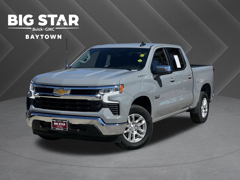 10-Speed Automatic, Black Cloth, 10-Way Power Driver Seat w/Lumbar, 12.3 Multicolor Reconfigurable Digital Display, 120 Point Safety Inspection, 120-Volt Bed Mounted Power Outlet, 120-Volt Interior Power Outlet, 170 Amp Alternator, 18 WHEELS, 2 USB Data Ports, 220 Amp Alternator, 3.23 Rear Axle Ratio, 4-Wheel Disc Brakes, 40/20/40 Front Split-Bench Seat, 6 Speakers, 6-Speaker Audio System, ABS brakes, Air Conditioning, All-Star Edition, Alloy wheels, AM/FM radio: SiriusXM with 360L, Auto High-beam Headlights, Auto-Locking Rear Differential, Automatic Emergency Braking, Automatic temperature control, Auxiliary External Transmission Oil Cooler, BLUETOOTH / HANDSFREE, Bluetooth® For Phone, Brake assist, Bumpers: chrome, Chevrolet Connected Access Capable, Chrome Mirror Caps, CLEAN CARFAX!, Cloth Seat Trim, Color-Keyed Carpeting Floor Covering, Compass, Convenience Package, Deep-Tinted Glass, Delay-off headlights, Driver door bin, Driver vanity mirror, Dual front impact airbags, Dual front side impact airbags, Dual Rear USB Ports (Charge Only), Dual-Zone Automatic Climate Control, Electric Rear-Window Defogger, Electrical Steering Column Lock, Electronic Cruise Control, Electronic Stability Control, Electronic Transmission Range Selector Shifter, External Engine Oil Cooler, EZ Lift Power Lock & Release Tailgate, Floor Mounted Center Console, Following Distance Indicator, Forward Collision Alert, Front anti-roll bar, Front Bucket Seats, Front Center Armrest w/Storage, Front dual zone A/C, Front License Plate Kit, Front Pedestrian Braking, Front reading lights, Front Rubberized Vinyl Floor Mats, Front wheel independent suspension, Fully automatic headlights, HD Rear Vision Camera, Heated door mirrors, Heated Driver & Front Outboard Passenger Seats, Heated front seats, Heated Power-Adjustable Outside Mirrors, Heated Steering Wheel, Heated steering wheel, Hitch Guidance, Illuminated entry, Inside Rear-View Mirror w/Tilt, IntelliBeam Automatic High Beam On/Off, Keyless Open & Start, Lane Keep Assist w/Lane Departure Warning, LED Cargo Area Lighting, LOCAL TRADE IN!, Low tire pressure warning, NAVIGATION, NON SMOKER VEHICLE, Occupant sensing airbag, OnStar & Chevrolet Connected Services Capable, Outside temperature display, Overhead airbag, Overhead console, Panic alarm, Passenger door bin, Passenger vanity mirror, Power door mirrors, Power driver seat, Power Front Windows w/Driver Express Up/Down, Power Front Windows w/Passenger Express Down, Power Rear Windows w/Express Down, Power steering, Power windows, Preferred Equipment Group 1LT, Premium audio system: Chevrolet Infotainment 3 Premium, PROFESSIONALLY DETAILED FOR DELIVERY!, Radio data system, Radio: Chevrolet Infotainment 3 Premium System, Rear 60/40 Folding Bench Seat (Folds Up), Rear reading lights, Rear Rubberized-Vinyl Floor Mats, Rear step bumper, Rear window defroster, Remote keyless entry, Remote Start Package, Remote Vehicle Starter System, Security system, SiriusXM w/360L, Speed control, Speed-sensing steering, Split folding rear seat, Standard Suspension Package, Standard Tailgate, Steering Wheel Audio Controls, Steering wheel mounted audio controls, SUPER LOW MILES!, Tachometer, Telescoping steering wheel, Texas Edition Badging, Theft Deterrent System (Unauthorized Entry), Tilt steering wheel, Traction control, Trailering Package, Trip computer, Variably intermittent wipers, Voltmeter, Wheels: 18 x 8.5 Bright Silver Painted Aluminum, Wi-Fi Hot Spot Capable, Wireless Charging, Wrapped Steering Wheel. Clean CARFAX. Certified.Big Star Buick GMC is proud to offer this reliable 2024 Chevrolet Silverado 1500. LT RWD Slate Gray Metallic CARFAX One-Owner.Why should you buy from Big Star GMC Buick? Our unmatched service and diverse New and Used Buick, GMC, Cars and Trucks inventory have set us apart as the preferred dealer in Baytown. Visit us today to discover why we have the best reputation in the Baytown area. Advertised Prices do not include any dealer installed