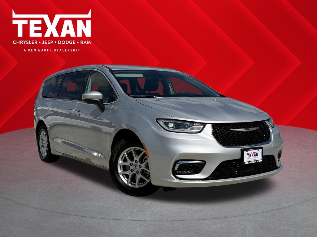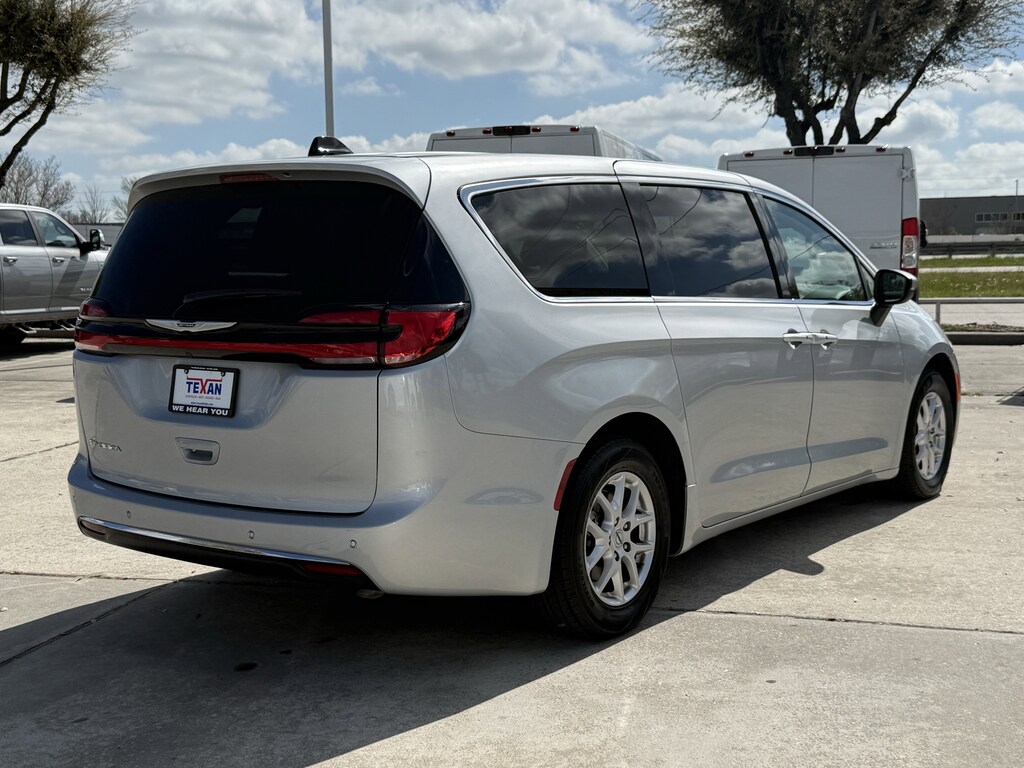 Clean CarFax!, Clean Vehicle History, Non Smoker Vehicle, LOCAL TRADE, LOW LOW MILES!!, ALL VEHICLES UNDERGO A 115 POINT SAFETY INSPECTION, Quick Order Package 27L, 10.1 Touchscreen Display, 17 x 7.0 Aluminum Wheels, 3.25 Axle Ratio, 3rd row seats: split-bench, 4-Wheel Disc Brakes, 6 Speakers, ABS brakes, Air Conditioning, Alloy wheels, AM/FM radio: SiriusXM, Apple CarPlay, Apple CarPlay/Android Auto, Audio memory, Automatic temperature control, Black Seats, Brake assist, Bumpers: body-color, Caprice Leatherette Bucket Seats, Compass, Delay-off headlights, Disassociated Touchscreen Display, Driver door bin, Driver vanity mirror, Driver's Seat Mounted Armrest, Dual front impact airbags, Dual front side impact airbags, Electronic Stability Control, Four wheel independent suspension, Front anti-roll bar, Front Bucket Seats, Front dual zone A/C, Front Fascia Air Deflectors, Front fog lights, Front reading lights, Fully automatic headlights, Google Android Auto, GPS Antenna Input, Heated door mirrors, Heated front seats, Heated steering wheel, Illuminated entry, Integrated Active Noise Cancellation, Integrated Center Stack Radio, Knee airbag, Low tire pressure warning, Memory seat, Occupant sensing airbag, Outside temperature display, Overhead airbag, Overhead console, Panic alarm, ParkView Rear Back-Up Camera, Passenger door bin, Passenger seat mounted armrest, Passenger vanity mirror, Power door mirrors, Power driver seat, Power Liftgate, Power steering, Power windows, Radio data system, Radio: Uconnect 5 w/10.1 Display, Rain sensing wipers, Rear air conditioning, Rear reading lights, Rear window defroster, Rear window wiper, Reclining 3rd row seat, Remote keyless entry, Security system, Speed control, Split folding rear seat, Spoiler, Steering wheel mounted audio controls, Tachometer, Telescoping steering wheel, Tilt steering wheel, Touring Suspension, Traction control, Trip computer, Turn signal indicator mirrors, USB Host Flip, Variably intermittent wipers, Voltmeter, Fully Serviced, Bluetooth, Quick Order Package 27L. CARFAX One-Owner.Texan Dodge Chrysler Jeep Ram is pumped up to offer this great 2023 Chrysler Pacifica Touring L.In addition to transparent, no hassle pricing and upfront no hassle trade evaluation.....We provide an enjoyably brief and easy Sales Experience...Your Pace...Your Way....CONTACT US AT (281)359-7100 Advertised prices exclude leases. Vehicle may or may not be equipped with vehicle protection products or accessories that are not required for purchase.
