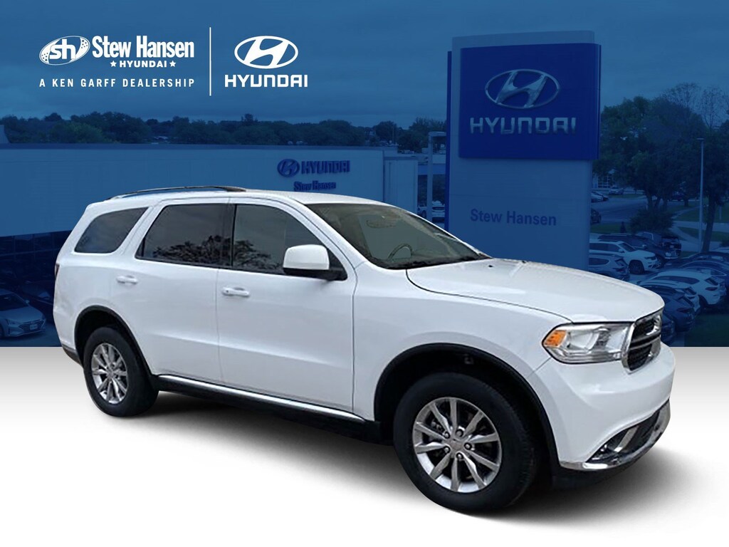 White Knuckle Clearcoat 2017 Dodge Durango SXT AWD 8-Speed Automatic 3.6L V6 24V VVT AWD, CARFAX ONE OWNER, NON SMOKER.STEW HANSEN HYUNDAI UPFRONT PRICING MEANS NO HASSLE NO HAGGLE NO SURPRISES, JUST GREAT DEALS AND SUPER SERVICE. Recent Arrival!STEW HANSEN HYUNDAI UPFRONT PRICING MEANS NO HASSLE NO HAGGLE NO SURPRISES, JUST GREAT DEALS AND SUPER SERVICE. PLEASE CALL OR STOP BY AND SEE WHY WE ARE ONE OF THE FASTEST GROWING DEALERS IN ALL OF THE MIDWEST.Reviews: * Unusually spacious third-row seats; 8.4-inch touchscreen is one of the best in the class; assertive acceleration with the V8 engine; exceptional towing capacity for a crossover; real off-road capabilities with 4WD and low-range gearing. Source: Edmunds