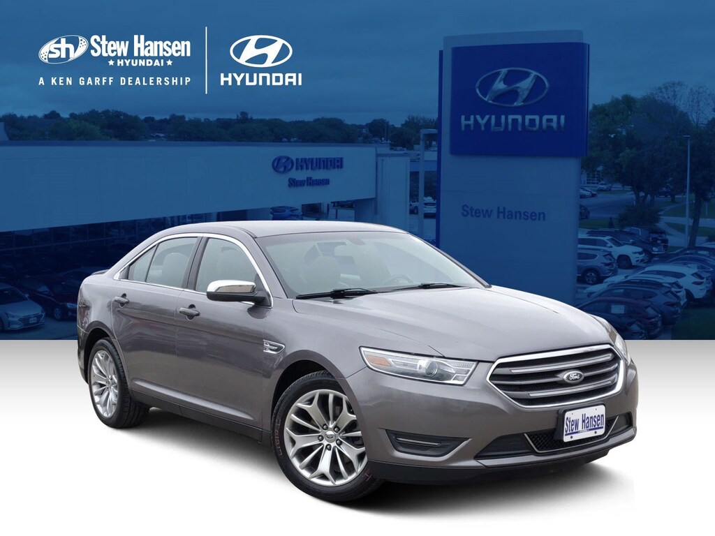 Dark Side Metallic 2014 Ford Taurus Limited FWD 6-Speed Automatic with Select-Shift 3.5L 6-Cylinder SMPI DOHC Leather.STEW HANSEN HYUNDAI UPFRONT PRICING MEANS NO HASSLE NO HAGGLE NO SURPRISES, JUST GREAT DEALS AND SUPER SERVICE. Recent Arrival! 19/29 City/Highway MPGAwards: * 2014 KBB.com Brand Image AwardsSTEW HANSEN HYUNDAI UPFRONT PRICING MEANS NO HASSLE NO HAGGLE NO SURPRISES, JUST GREAT DEALS AND SUPER SERVICE. PLEASE CALL OR STOP BY AND SEE WHY WE ARE ONE OF THE FASTEST GROWING DEALERS IN ALL OF THE MIDWEST.Reviews: * If you re seeking the feel of a big, solid car but can t find anything that doesn t scream SUV, try the 2014 Ford Taurus. Luxury car features abound in this big sedan, and the SHO model should win over enthusiasts forced by circumstances to abandon their tiny 2-seat sports car. Source: KBB.com * Long list of standard features and cutting-edge options; quiet and comfortable ride; humongous trunk; available fuel-efficient four-cylinder engine; available all-wheel drive. Source: Edmunds * The Ford Taurus has aggressive front and rear styling that signals a high level of precision. With clean sharp lines and a fair share of attitude, this sedan is offered in four models: the base SE, SEL, Limited, and SHO. There are 3 amazing engine possibilities with the Taurus: All models except the SHO have the standard 3.5L Ti-VCT V6, with the 2.0L EcoBoost I-4 as an option. The SHO gets the exhilarating 365-Horsepower 3.5L EcoBoost V6. It combines twin turbochargers with direct-injection technology to deliver consistent acceleration and 25 MPG HWY. A 6-speed SelectShift Automatic transmission helps this turbocharged, direct injection powerhouse deliver plenty of torque for acceleration and passing. All-wheel drive is optional in the SEL and Limited, and standard in the SHO, and delivers true enthusiast performance. For fuel efficiency, the 2.0L EcoBoost I-4 engine has a best-in-class EPA-estimated 32 MPG HWY. Inside, the Taurus is crafted to soothe your senses, starting with soft-touch surfaces throughout. Enjoy the comfort of heated and cooled, massaging front seats and a heated steering wheel, available for Limited and SHO trims. Depending on the model you select, enjoy one of the two SYNC systems that come with or are available for your car. SYNC offers possibilities like hands-free calling, Bluetooth music streaming from your phone, audio driving directions, a navigation system with touch screen, and more. Taurus comes standard with Anti-lock brakes, AdvanceTrac Stability Control, and Traction Control. 2014 introduces the Lane-Keeping System available for Limited and SHO models. It uses a series of alerts to tell you to re-center the car in your lane if it senses you are in danger of drifting out. The top two trims also have the option of Adaptive Cruise Control that automatically adjusts your speed if there is slowing traffic ahead, and Active Park Assist that can identify spots for you to parallel park and then steer the vehicle into place by itself. Source: The Manufacturer Summary
