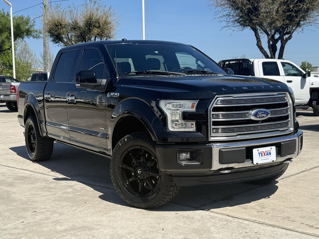 Clean CarFax!, Clean Vehicle History, Non Smoker Vehicle, LOCAL TRADE, MOONROOF, ALL VEHICLES UNDERGO A 115 POINT SAFETY INSPECTION, 4WD, ABS brakes, Active Cruise Control, Alloy wheels, Brake assist, Compass, Electronic Stability Control, Exterior Parking Camera Rear, Front dual zone A/C, Heated door mirrors, Heated front seats, Heated rear seats, Illuminated entry, Low tire pressure warning, Navigation System, Power moonroof: Vista Roof, Rear Parking Sensors, Remote keyless entry, Security system, Traction control, Voice-Activated Navigation, 10 Speakers, 22 Polished Aluminum Wheels, 3.31 Axle Ratio, 4-Wheel Disc Brakes, Adjustable pedals, Air Conditioning, AM/FM radio: SiriusXM, Auto High-beam Headlights, Auto tilt-away steering wheel, Auto-dimming door mirrors, Auto-dimming Rear-View mirror, Automatic temperature control, Bumpers: chrome, CD player, Delay-off headlights, Driver door bin, Driver vanity mirror, Dual front impact airbags, Dual front side impact airbags, Front anti-roll bar, Front Bucket Seats, Front Center Armrest, Front fog lights, Front reading lights, Front wheel independent suspension, Fully automatic headlights, Garage door transmitter, Genuine wood door panel insert, GVWR: 6,750 lbs Payload Package, Heated steering wheel, Memory seat, Occupant sensing airbag, Outside temperature display, Overhead airbag, Overhead console, Panic alarm, Passenger door bin, Passenger vanity mirror, Pedal memory, Power door mirrors, Power driver seat, Power passenger seat, Power steering, Power windows, Radio data system, Radio: Sony Single CD w/HD & SiriusXM Satellite, Rain sensing wipers, Rear reading lights, Rear seat center armrest, Rear step bumper, Rear window defroster, Speed control, Speed-sensing steering, Split folding rear seat, Steering wheel memory, Steering wheel mounted audio controls, SYNC 3, Tachometer, Telescoping steering wheel, Tilt steering wheel, Trip computer, Turn signal indicator mirrors, Unique Leather Bucket Seats, Variably intermittent wipers, Ventilated front seats, Voltmeter, Fully Serviced, Bluetooth, 1-Owner, 4WD, ABS brakes, Active Cruise Control, Alloy wheels, Brake assist, Compass, Electronic Stability Control, Exterior Parking Camera Rear, Front dual zone A/C, Heated door mirrors, Heated front seats, Heated rear seats, Illuminated entry, Low tire pressure warning, Navigation System, Power moonroof: Vista Roof, Rear Parking Sensors, Remote keyless entry, Security system, Traction control, Voice-Activated Navigation. CARFAX One-Owner.Texan Dodge Chrysler Jeep Ram is honored to offer this hard-working 2016 Ford F-150 Limited.In addition to transparent, no hassle pricing and upfront no hassle trade evaluation.....We provide an enjoyably brief and easy Sales Experience...Your Pace...Your Way....CONTACT US AT (281)359-7100 Advertised prices exclude leases. Vehicle may or may not be equipped with vehicle protection products or accessories that are not required for purchase.Awards: * 2016 KBB.com Brand Image Awards