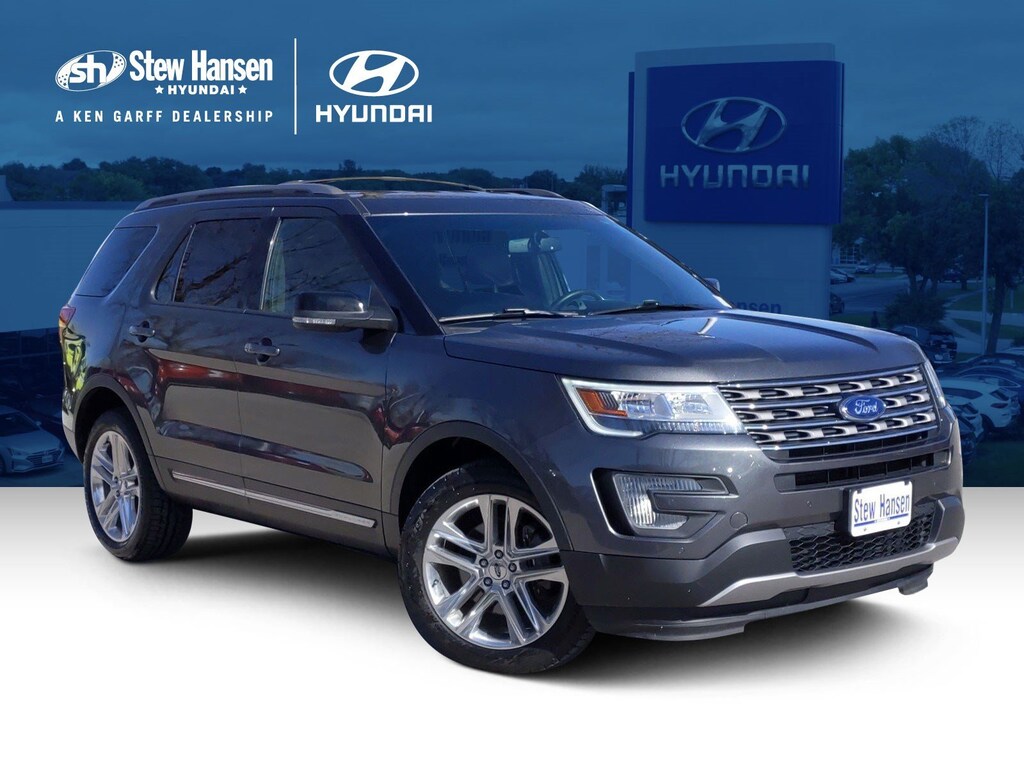 Magnetic Metallic 2017 Ford Explorer XLT w/Leather AWD 6-Speed Automatic with Select-Shift 3.5L 6-Cylinder SMPI DOHC AWD, Leather, CARFAX ONE OWNER, NON SMOKER, 2 Driver Configurable 4.2 Color LCD Displays, Auto-Dimming Rear-View Mirror, Driver Connect Package, Dual-Zone Electronic Automatic Temperature Ctrl, Equipment Group 201A, Hands-Free Foot-Activated Liftgate, Remote Start System, SYNC 3 Communications & Entertainment System, Unique Cloth Bucket Seats.STEW HANSEN HYUNDAI UPFRONT PRICING MEANS NO HASSLE NO HAGGLE NO SURPRISES, JUST GREAT DEALS AND SUPER SERVICE. Recent Arrival!Awards: * 2017 KBB.com Brand Image Awards * 2017 KBB.com 10 Most Awarded BrandsSTEW HANSEN HYUNDAI UPFRONT PRICING MEANS NO HASSLE NO HAGGLE NO SURPRISES, JUST GREAT DEALS AND SUPER SERVICE. PLEASE CALL OR STOP BY AND SEE WHY WE ARE ONE OF THE FASTEST GROWING DEALERS IN ALL OF THE MIDWEST.Reviews: * Plenty of high-tech features that are easy to use; cargo space is generous behind the third row; turbocharged V6 engine delivers plentiful power; cabin is quiet and comfortable on the highway. Source: Edmunds
