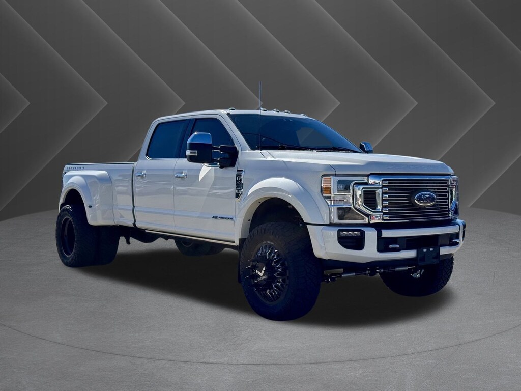 4WD, 10 Speakers, 120 Point Safety Inspection, 18 WHEELS, 19.5 Forged Polished Aluminum Wheels, 4-Wheel Disc Brakes, ABS brakes, Adjustable pedals, Air Conditioning, Alloy wheels, AM/FM radio: SiriusXM with 360L, Auto High-beam Headlights, Auto tilt-away steering wheel, Auto-dimming Rear-View mirror, Automatic temperature control, BLUETOOTH / HANDSFREE, Brake assist, Bumpers: body-color, CLEAN CARFAX!, Compass, Delay-off headlights, Driver door bin, Driver vanity mirror, Dual front impact airbags, Dual front side impact airbags, Dual rear wheels, Electronic Stability Control, Emergency communication system: SYNC 4 911 Assist, Exterior Backup Alarm (Pre-Installed), Exterior Parking Camera Rear, Flow-Through Console, Front anti-roll bar, Front Bucket Seats, Front Center Armrest, Front dual zone A/C, Front fog lights, Front reading lights, Fully automatic headlights, Garage door transmitter, GVWR: 14,000 lb Payload Package, Heated door mirrors, Heated front seats, Heated rear seats, Heated steering wheel, Illuminated entry, Leather steering wheel, Limited Slip w/4.30 Axle Ratio, LOCAL TRADE IN!, Memory seat, NAVIGATION, Navigation System, Navigation system: Connected Navigation, NON SMOKER VEHICLE, Outside temperature display, Overhead airbag, Overhead console, Panic alarm, Passenger door bin, Passenger vanity mirror, Pedal memory, Power door mirrors, Power driver seat, Power passenger seat, Power steering, Power windows, PROFESSIONALLY DETAILED FOR DELIVERY!, Radio data system, Radio: B&O Sound System by Bang & Olufsen, Rain sensing wipers, Rear anti-roll bar, Rear Parking Sensors, Rear reading lights, Rear seat center armrest, Rear step bumper, Rear window defroster, Remote keyless entry, Security system, SiriusXM Radio w/360L, Speed control, Speed-sensing steering, Split folding rear seat, Steering wheel memory, Steering wheel mounted A/C controls, Steering wheel mounted audio controls, SUNROOF/MOONROOF, SUPER LOW MILES!, SYNC 4 w/Enhanced Voice Recognition, Tachometer, Telescoping steering wheel, Tilt steering wheel, Traction control, Trip computer, Turn signal indicator mirrors, Twin Panel Power Moonroof, Unique Platinum Leather 40/Console/40 Seats, Variably intermittent wipers, Ventilated front seats. Certified.Big Star Buick GMC is pumped up to offer this stout 2022 Ford F-450SD. Platinum 4WD Star White Metallic Tri-CoatOdometer is 27978 miles below market average!Why should you buy from Big Star GMC Buick? Our unmatched service and diverse New and Used Buick, GMC, Cars and Trucks inventory have set us apart as the preferred dealer in Baytown. Visit us today to discover why we have the best reputation in the Baytown area. Advertised Prices do not include any dealer installed options and advertised prices exclude leases.
