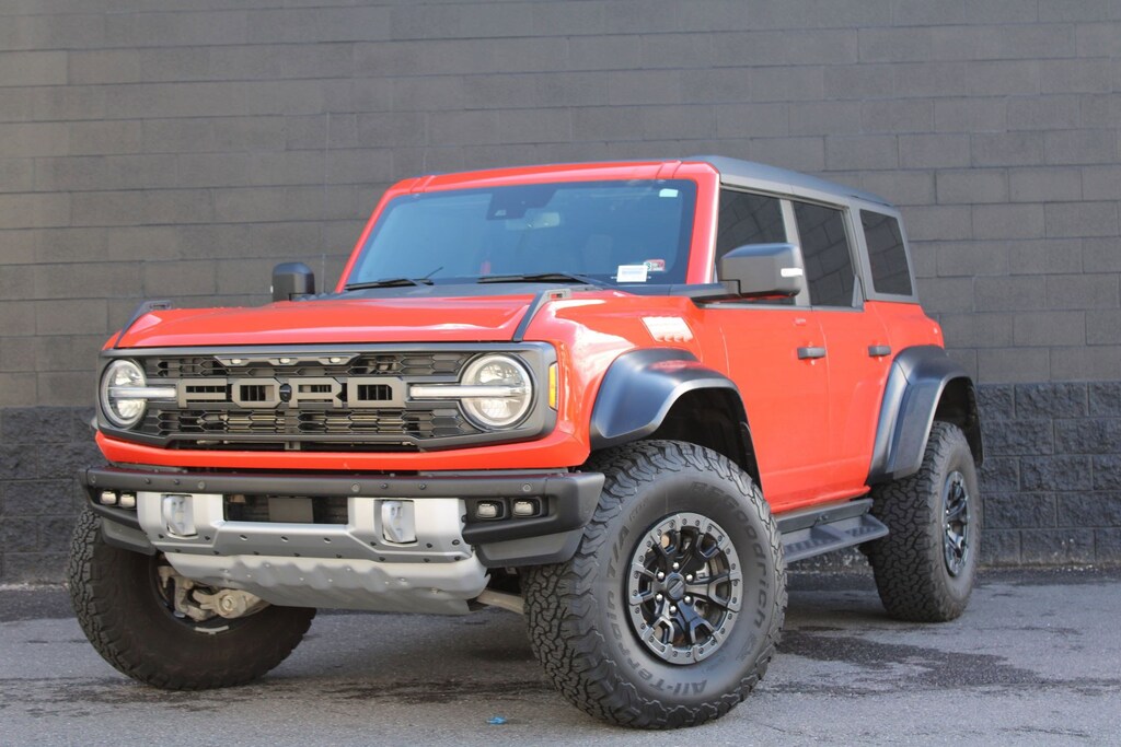 Clean Carfax! Code Orange 2023 Ford Bronco Raptor 4WD 10-Speed Automatic 3.0L EcoBoost V6 10 Speakers w/Subwoofer, 2 Smart Charging USB Ports In Dashboard, 4-Wheel Disc Brakes, 4.7 Axle Ratio, 7 Speakers, ABS brakes, Adaptive Cruise Control, Air Conditioning, Alloy wheels, AM/FM radio: SiriusXM with 360L, AM/FM Stereo, Auto High-beam Headlights, Auto-dimming Rear-View mirror, Automatic temperature control, Brake assist, Compass, Connected Built-In Navigation, Connected Navigation, Convertible HardTop, Convertible roof lining, Delay-off headlights, Driver door bin, Driver vanity mirror, Dual front impact airbags, Dual front side impact airbags, Electronic Stability Control, Emergency communication system: 911 Assist, Equipment Group 374A Lux Package, Evasive Steering Assist, Exterior Parking Camera Rear, Front anti-roll bar, Front Bucket Seats, Front Center Armrest, Front dual zone A/C, Front fog lights, Front reading lights, Front wheel independent suspension, Fully automatic headlights, Glass rear window, Heated door mirrors, Heated front seats, Heated Steering Wheel, Illuminated entry, Integrated roll-over protection, Interior Carbon Fiber Pack 6, Leather Shift Knob, Leather-Trimmed/Vinyl Bucket Seats, Low tire pressure warning, Lux Package, Marine Grade Vinyl Bucket Seats, Navigation system: Connected Navigation, Occupant sensing airbag, Outside temperature display, Overhead airbag, Overhead console, Panic alarm, Passenger door bin, Passenger vanity mirror, Power door mirrors, Power steering, Power windows, Radio data system, Radio: B&O Sound System by Bang & Olufsen, Rear anti-roll bar, Rear seat center armrest, Rear window defroster, Rear window wiper, Remote keyless entry, Security system, SiriusXM Radio w/360L, Speed control, Split folding rear seat, Steering wheel mounted audio controls, SYNC 4, Tachometer, Telescoping steering wheel, Tilt steering wheel, Traction control, Trip computer, Turn signal indicator mirrors, Universal Garage Door Opener, Variably intermittent wipers, Voltmeter, Wheels: 17 Black High Gloss-Painted Aluminum, Wireless Charging Pad.Clean Title and Clean Carfax. Recent Arrival!