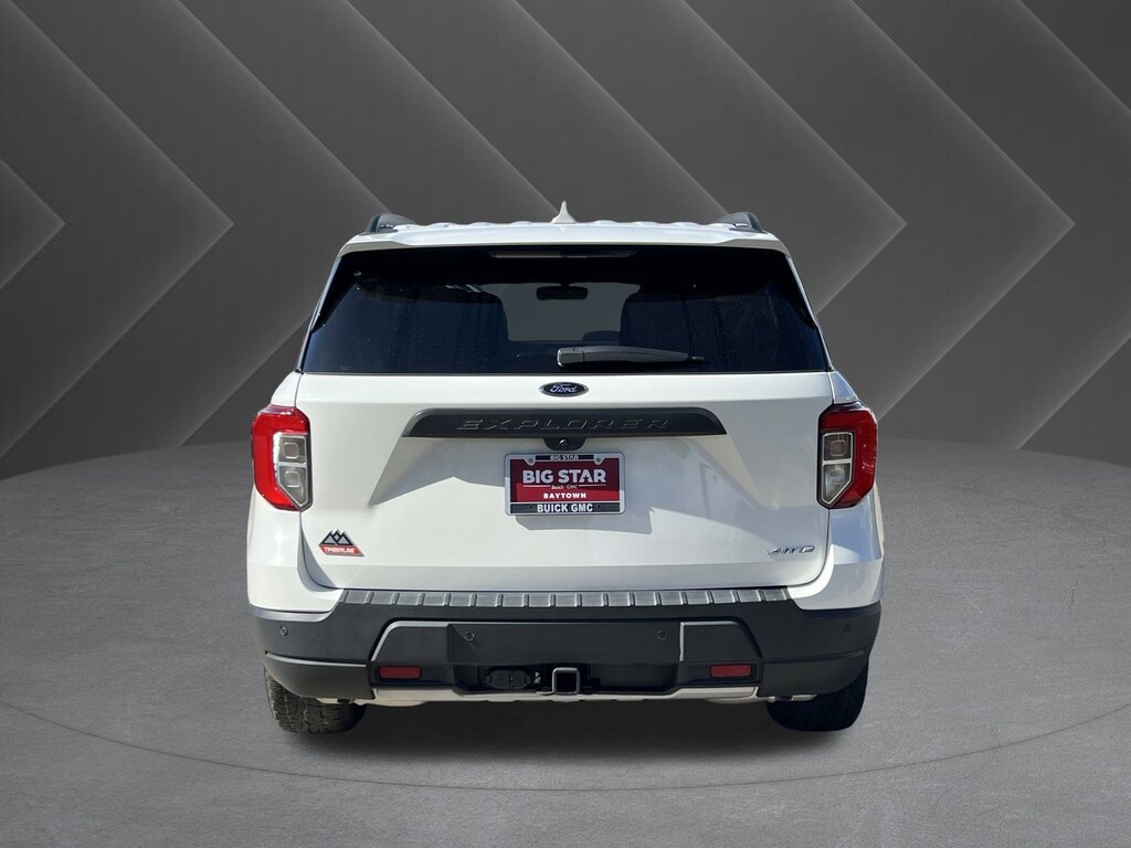 4WD, 110V/150W AC Power Outlet, 120 Point Safety Inspection, 20 WHEELS, 3.58 Torsen Limited Slip Rear Axle, 3rd Row PowerFold Seat, 3rd row seats: bench, 4-Wheel Disc Brakes, 4G LTE Wi-Fi Hotspot Credit, 6 Speakers, ABS brakes, Air Conditioning, Alloy wheels, AM/FM radio: SiriusXM, AM/FM Stereo, Auto High-beam Headlights, Auto Start-Stop Removal (DISC), Auto-Dimming Interior Rear-View Mirror, Automatic temperature control, BLUETOOTH / HANDSFREE, Brake assist, Bumpers: body-color, CLEAN CARFAX!, Compass, Delay-off headlights, Driver door bin, Driver vanity mirror, Dual front impact airbags, Dual front side impact airbags, Electronic Stability Control, Emergency communication system: SYNC 3 911 Assist, Equipment Group 800A, Exterior Parking Camera Rear, FordPass Connect, Four wheel independent suspension, Front anti-roll bar, Front Bucket Seats, Front Center Armrest, Front dual zone A/C, Front fog lights, Front reading lights, Fully automatic headlights, Heated ActiveX Trimmed Captain's Chairs, Heated door mirrors, Heated front seats, Heated rear seats, Heated steering wheel, Illuminated entry, Knee airbag, Leather steering wheel, LOCAL TRADE IN!, Low tire pressure warning, NAVIGATION, Navigation System, NON SMOKER VEHICLE, Occupant sensing airbag, Outside temperature display, Overhead airbag, Overhead console, Panic alarm, Passenger door bin, Passenger vanity mirror, Power door mirrors, Power driver seat, Power Liftgate, Power passenger seat, Power steering, Power windows, PROFESSIONALLY DETAILED FOR DELIVERY!, Radio: B&O Sound System by Bang & Olufsen, Rear anti-roll bar, Rear Auxiliary Controls Credit (DISC), Rear reading lights, Rear window wiper, Remote keyless entry, Roof rack: rails only, Security system, SelectShift Capability w/Paddle Shifters, Sideview Mirrors w/Gloss Black Caps, Speed control, Speed-sensing steering, Speed-Sensitive Wipers, Split folding rear seat, Spoiler, Sport steering wheel, Steering wheel mounted audio controls, SUNROOF/MOONROOF, SUPER LOW MILES!, SYNC 3 Communications & Entertainment System, SYNC 3/Apple CarPlay/Android Auto, Tachometer, Telescoping steering wheel, Tilt steering wheel, Timberline Technology Package, Traction control, Trip computer, Twin Panel Moonroof, Universal Garage Door Opener (UGDO), Variably intermittent wipers, Voice-Activated Touchscreen Navigation System, Wheels: 18 High Gloss Black-Painted Aluminum, Wireless Charging Pad. Clean CARFAX. Certified.Big Star Buick GMC is very proud to offer this charming 2023 Ford Explorer. Timberline 4WD Star White Metallic Tri-Coat CARFAX One-Owner.Odometer is 14530 miles below market average!Priced below KBB Fair Purchase Price!Why should you buy from Big Star GMC Buick? Our unmatched service and diverse New and Used Buick, GMC, Cars and Trucks inventory have set us apart as the preferred dealer in Baytown. Visit us today to discover why we have the best reputation in the Baytown area. Advertised Prices do not include any dealer installed options and advertised prices exclude leases.