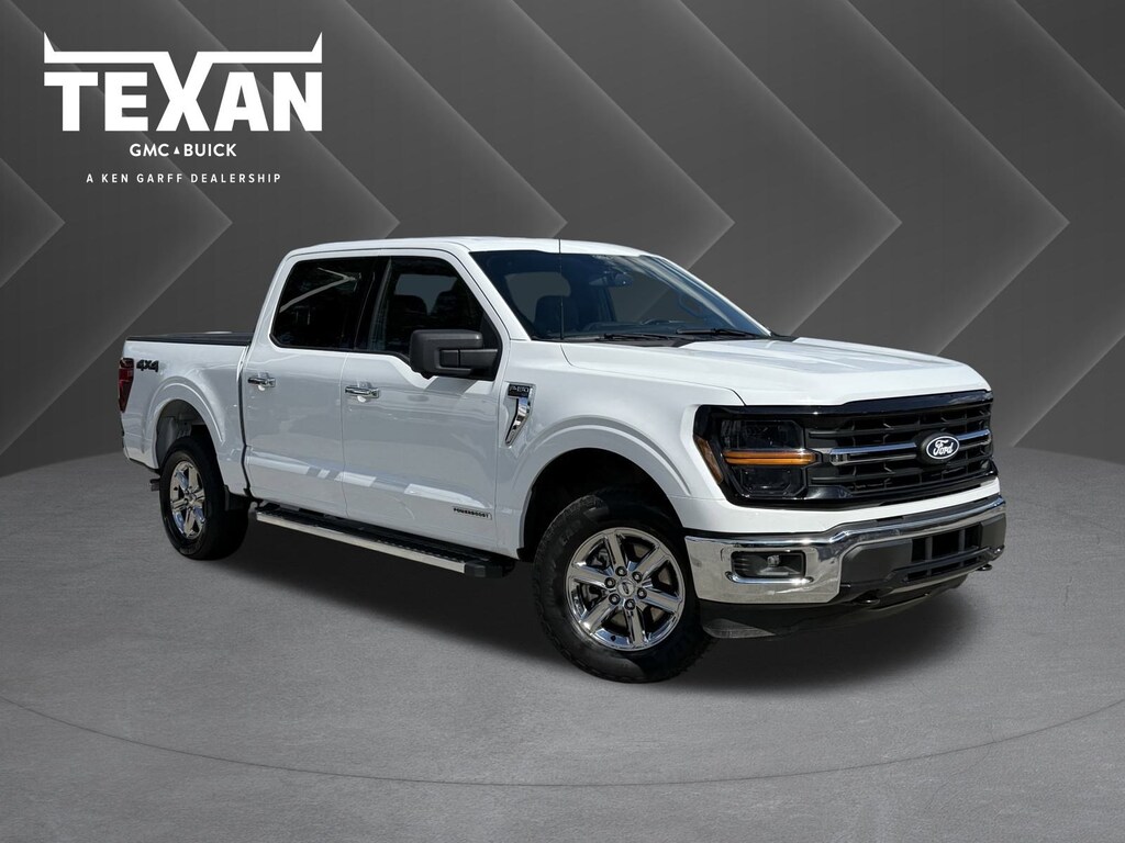 4-Wheel Disc Brakes, 6 Speakers, ABS brakes, Air Conditioning, Alloy wheels, AM/FM radio: SiriusXM with 360L, Auto High-beam Headlights, Auto-dimming Rear-View mirror, Automatic temperature control, Brake assist, Bumpers: chrome, Chrome wheels, Cloth 40/20/40 Front Seat, Cloth 40/Console/40 Front Seats, Compass, Console Worksurface, Delay-off headlights, Driver door bin, Driver vanity mirror, Dual front impact airbags, Dual front side impact airbags, Electronic Stability Control, Emergency communication system: SYNC 4 911 Assist, Equipment Group 301A Standard, Front anti-roll bar, Front Center Armrest w/Storage, Front dual zone A/C, Front fog lights, Front reading lights, Front wheel independent suspension, Fully automatic headlights, Heated door mirrors, Illuminated entry, Low tire pressure warning, Mobile Office Package, Navigation system: Connected Navigation, Occupant sensing airbag, Outside temperature display, Overhead airbag, Overhead console, Panic alarm, Partitioned Lockable Rear Storage, Passenger door bin, Passenger vanity mirror, Power door mirrors, Power driver seat, Power steering, Power windows, Radio data system, Radio: AM/FM SiriusXM w/360L, Rear reading lights, Rear step bumper, Rear window defroster, Remote keyless entry, Security system, Speed control, Split folding rear seat, Steering wheel mounted audio controls, SYNC 4 w/Enhanced Voice Recognition, Tachometer, Telescoping steering wheel, Tilt steering wheel, Traction control, Trip computer, Variably intermittent wipers, Voltmeter, Wheels: 18 Chrome-Like PVD.Texan GMC Buick is excited to offer this great-looking 2024 Ford F-150 XLT. 4WD Oxford WhiteCertified.Priced below KBB Fair Purchase Price!Service Loaners...Free WiFi.....Business Center....Roadside Assistance...All Included!! Our Mission: To be the most esteemed automotive group in the eyes of our employees, customers, and partners. Our Promise: We listen and provide a trusted, easy, and enjoyable experience. Our Philosophy: We create lifetime customers. Advertised Prices do not include any dealer installed options and advertised prices exclude leases.