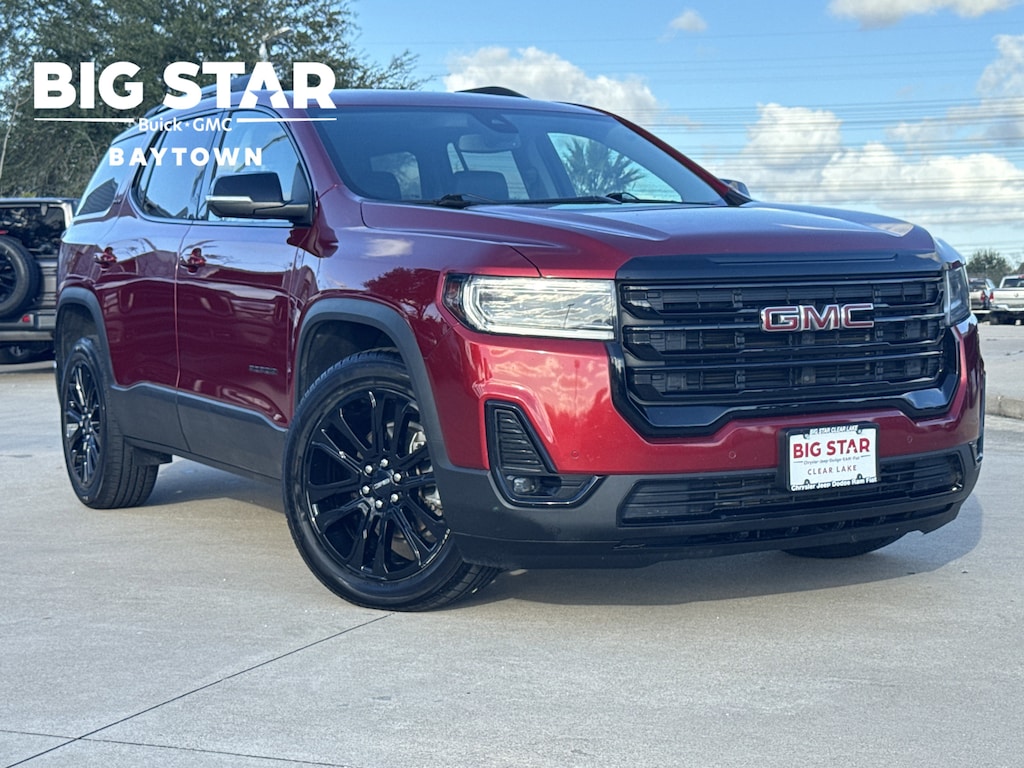 AWD, Jet Black Leather, 120 Point Safety Inspection, 170 Amp Alternator, 18 Aluminum Wheels, 18 WHEELS, 1st & 2nd Row All-Weather Floor Liner (LPO), 20 Machined Aluminum Wheels, 3.47 Final Drive Axle Ratio, 3rd Row All-Weather Floor Liner (LPO), 3rd row seats: split-bench, 4-Way Manual Passenger Seat Adjuster, 4-Wheel Disc Brakes, 6-Passenger (2-2-2 Seating Configuration), 8 Speakers, 8-Way Power Driver Seat Adjuster, 8-Way Power Passenger Seat Adjuster, ABS brakes, Air Conditioning, Alloy wheels, AM/FM radio: SiriusXM with 360L, Apple CarPlay/Android Auto, Auto High-beam Headlights, Auto-dimming Rear-View mirror, Automatic temperature control, BLUETOOTH / HANDSFREE, Bose Premium 8-Speaker Audio System Feature, Brake assist, Bumpers: body-color, CLEAN CARFAX!, Compass, Delay-off headlights, Driver door bin, Driver vanity mirror, Dual front impact airbags, Dual front side impact airbags, Electronic Stability Control, Elevation Edition, Emergency communication system: OnStar and GMC connected services capable, Floor Liner Package (LPO), Four wheel independent suspension, Front anti-roll bar, Front Bucket Seats, Front Center Armrest, Front dual zone A/C, Front fog lights, Front License Plate Bracket, Front reading lights, Fully automatic headlights, Garage door transmitter, Gloss Black Roof Rails, Heated & Ventilated Driver & Front Passenger Seats, Heated door mirrors, Heated Driver & Front Passenger Seats, Heated front seats, Heated Rear Outboard Seating Positions, Heated Steering Wheel, Heavy-Duty Cooling System, Hitch Guidance w/Hitch View, Illuminated entry, Integrated Cargo Liner (LPO), Knee airbag, LOCAL TRADE IN!, Low tire pressure warning, Luxury Package, Memory Package, NAVIGATION, Navigation System, NON SMOKER VEHICLE, Occupant sensing airbag, Outside temperature display, Overhead airbag, Overhead console, Panic alarm, Passenger door bin, Passenger vanity mirror, Perforated Leather-Appointed Seat Trim, Power door mirrors, Power Driver Lumbar Control Seat Adjuster, Power driver seat, Power Liftgate, Power Passenger Lumbar Control Seat Adjuster, Power steering, Power Tilt & Telescopic Steering Column, Power windows, Power-Adjustable Body-Color Outside Heated Mirrors, Preferred Equipment Group 4SA, Preferred Package, PROFESSIONALLY DETAILED FOR DELIVERY!, Radio data system, Radio: AM/FM 8 Diagonal Multi-Touch Navigation, Rear air conditioning, Rear anti-roll bar, Rear reading lights, Rear window defroster, Rear window wiper, Remote keyless entry, Roof rack: rails only, Security system, SiriusXM w/360L, Speed control, Speed-sensing steering, Spoiler, Steering wheel mounted audio controls, SUPER LOW MILES!, Tachometer, Telescoping steering wheel, Tilt steering wheel, Traction control, Trailering Assist Guidelines, Trailering Package, Trip computer, Turn signal indicator mirrors, Variably intermittent wipers, Voltmeter, Wireless Apple CarPlay/Wireless Android Auto. Clean CARFAX. Certified.Big Star Buick GMC is delighted to offer this attractive 2023 GMC Acadia. SLT AWD Volcanic Red Tintcoat CARFAX One-Owner.19/26 City/Highway MPGWhy should you buy from Big Star GMC Buick? Our unmatched service and diverse New and Used Buick, GMC, Cars and Trucks inventory have set us apart as the preferred dealer in Baytown. Visit us today to discover why we have the best reputation in the Baytown area. Advertised prices exclude leases. Vehicle may or may not be equipped with vehicle protection products or accessories that are not required for purchase.