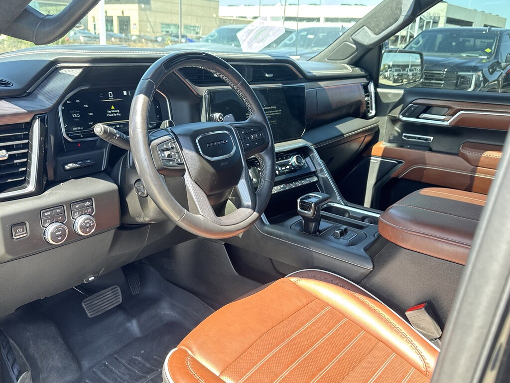 10-Speed Automatic, 4WD, Alpine Umber Leather, 12 Speakers, 120 Point Safety Inspection, 120-Volt Bed Mounted Power Outlet, 120-Volt Instrument Panel Power Outlet, 16-Way Power Driver Seat Adjuster w/Lumbar, 16-Way Power Passenger Seat Adjuster w/Lumbar, 170 Amp Alternator, 2 Charge/Data USB Ports Inside Center Console, 2 Type-C Charge-Only Rear USB Ports, 2 USB Ports, 22 WHEELS, 3.23 Rear Axle Ratio, 4-Wheel Disc Brakes, ABS brakes, Adaptive suspension, Air Conditioning, Alloy wheels, AM/FM radio, Apple CarPlay/Android Auto, Auto High-beam Headlights, Auto-dimming door mirrors, Auto-dimming Rear-View mirror, Auto-Locking Rear Differential, Automatic Emergency Braking, Automatic temperature control, Bed View Camera, BLUETOOTH / HANDSFREE, Bose Premium Series w/12-Speaker System, Brake assist, Buckle to Drive, Bumpers: body-color, Chrome Recovery Hooks, CLEAN CARFAX!, Color-Keyed Carpeting Floor Covering, Compass, Deep-Tinted Glass, Delay-off headlights, Denali Premium Suspension w/Adaptive Ride Control, Driver door bin, Driver Memory, Driver vanity mirror, Dual front impact airbags, Dual front side impact airbags, Electric Rear-Window Defogger, Electrical Steering Column Lock, Electronic Stability Control, Emergency communication system: OnStar and GMC connected services capable, Enhanced Automatic Emergency Braking, Floor-Mounted Center Console, Following Distance Indicator, Forward Collision Alert, Front anti-roll bar, Front Bucket Seats, Front Center Armrest, Front dual zone A/C, Front fog lights, Front License Plate Kit, Front Pedestrian Braking, Front Rainsensing Wipers, Front reading lights, Front wheel independent suspension, Full Grain Leather Seat Trim, Fully automatic headlights, Garage door transmitter, Genuine wood console insert, Genuine wood dashboard insert, Genuine wood door panel insert, GMC Connected Access Capable, HD Surround Vision, Heads-Up Display, Heated 2nd Row Outboard Seats, Heated door mirrors, Heated Driver & Front Outboard Passenger Seating, Heated front seats, Heated rear seats, Heated steering wheel, Heavy-Duty Air Filter, Hill Descent Control, Hitch Guidance, Hitch Guidance w/Hitch View, Illuminated entry, In-Vehicle Trailering App, Integrated Trailer Brake Controller, IntelliBeam Automatic High Beam On/Off, Keyless Open & Start, Lane Keep Assist w/Lane Departure Warning, LED Cargo Area Lighting, LOCAL TRADE IN!, Low tire pressure warning, Memory seat, Multicolor 15 Diagonal Head-Up Display, MultiPro Audio System by Kicker (LPO), NAVIGATION, Navigation System, NON SMOKER VEHICLE, Not Equipped w/Steering Column Lock, Occupant sensing airbag, OnStar & GMC Connected Services Capable, Outside temperature display, Overhead airbag, Overhead console, Panic alarm, Passenger door bin, Passenger vanity mirror, Perimeter Lighting, Power Door Locks, Power door mirrors, Power driver seat, Power Front Passenger Windows w/Express Up/Down, Power Front Windows w/Driver Express Up/Down, Power moonroof, Power passenger seat, Power Rake & Telescoping Steering Column, Power Rear Windows w/Express Down, Power Sliding Rear Window w/Rear Defogger, Power steering, Power Sunroof, Power windows, Preferred Equipment Group 5SB, Premium audio system: GMC Infotainment System, PROFESSIONALLY DETAILED FOR DELIVERY!, Push Button Start, Radio data system, Radio: Premium GMC Infotainment Audio System, Rain sensing wipers, Rear Cross Traffic Braking, Rear Pedestrian Detection, Rear reading lights, Rear seat center armrest, Rear step bumper, Rear Wheelhouse Liners, Rear window defroster, Remote keyless entry, Remote Vehicle Starter System, Safety Alert Seat, Security system, SiriusXM w/360L, Speed control, Speed-sensing steering, Split folding rear seat, Spray-On Pickup Bed Liner w/Denali Logo, Steering Wheel Audio Controls, Steering wheel mounted audio controls, SUNROOF/MOONROOF, Super Cruise, SUPER LOW MILES!, Tachometer, Telescoping steering wheel, Theft Deterrent System (Unauthorized Entry), Tilt steering wheel, Traction cont
