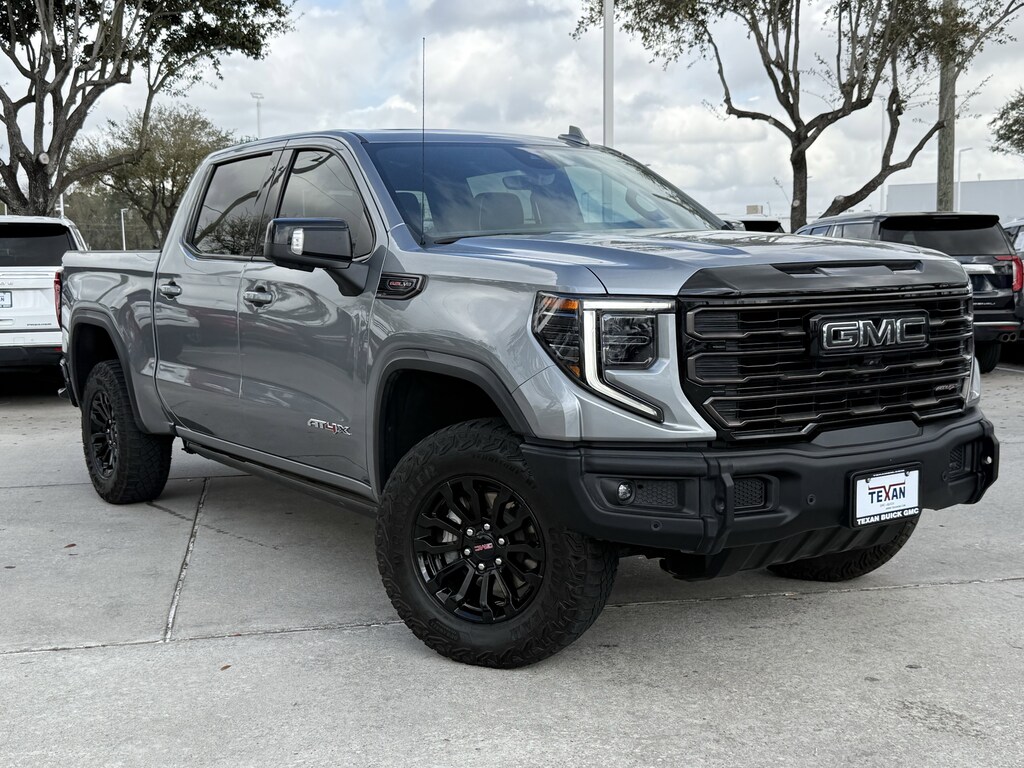 12 Speakers, 120-Volt Bed Mounted Power Outlet, 120-Volt Instrument Panel Power Outlet, 16-Way Power Driver Seat Adjuster w/Lumbar, 16-Way Power Passenger Seat Adjuster w/Lumbar, 2 Charge/Data USB Ports Inside Center Console, 2 Type-C Charge-Only Rear USB Ports, 2 USB Ports, 3.23 Rear Axle Ratio, 4-Wheel Disc Brakes, ABS brakes, Air Conditioning, Alloy wheels, AM/FM radio, Apple CarPlay/Android Auto, Auto High-beam Headlights, Auto-dimming door mirrors, Auto-dimming Rear-View mirror, Automatic Emergency Braking, Automatic temperature control, Bed View Camera, Bose Premium Series w/12-Speaker System, Brake assist, Buckle to Drive, Color-Keyed Carpeting Floor Covering, Compass, Deep-Tinted Glass, Delay-off headlights, Driver door bin, Driver Memory, Driver vanity mirror, Driver-Selectable Full-Locking Front Differential, Driver-Selectable Full-Locking Rear Differential, Dual front impact airbags, Dual front side impact airbags, Electric Rear-Window Defogger, Electrical Steering Column Lock, Electronic Stability Control, Emergency communication system: OnStar and GMC connected services capable, Floor-Mounted Center Console, Following Distance Indicator, Forward Collision Alert, Front anti-roll bar, Front Bucket Seats, Front Center Armrest, Front dual zone A/C, Front fog lights, Front License Plate Kit, Front Pedestrian Braking, Front Prem Floor Liners w/Removable Carpet Insert, Front Rainsensing Wipers, Front reading lights, Front wheel independent suspension, Full Grain Leather Seat Trim, Fully automatic headlights, Garage door transmitter, Genuine wood dashboard insert, Genuine wood door panel insert, Gloss Black Header w/Drk Nickel Grille Insert Bars, GMC Connected Access Capable, HD Surround Vision, Heads-Up Display, Heated 2nd Row Outboard Seats, Heated door mirrors, Heated Driver & Front Outboard Passenger Seating, Heated front seats, Heated rear seats, Heated steering wheel, Heavy-Duty Air Filter, Hill Descent Control, Hitch Guidance, Hitch Guidance w/Hitch View, Illuminated entry, In-Vehicle Trailering App, Integrated Trailer Brake Controller, IntelliBeam Automatic High Beam On/Off, Keyless Open & Start, Lane Keep Assist w/Lane Departure Warning, LED Cargo Area Lighting, Low tire pressure warning, Memory seat, Multicolor 15 Diagonal Head-Up Display, MultiPro Audio System by Kicker (LPO), Navigation System, Not Equipped w/Steering Column Lock, Occupant sensing airbag, Off-Road High Clearance Step (LPO), Off-Road Suspension, OnStar & GMC Connected Services Capable, Outside temperature display, Overhead airbag, Overhead console, Panic alarm, Passenger door bin, Passenger vanity mirror, Perimeter Lighting, Power Door Locks, Power door mirrors, Power driver seat, Power Front Passenger Windows w/Express Up/Down, Power Front Windows w/Driver Express Up/Down, Power moonroof, Power passenger seat, Power Rake & Telescoping Steering Column, Power Rear Windows w/Express Down, Power Sliding Rear Window w/Rear Defogger, Power steering, Power Sunroof, Power windows, Preferred Equipment Group 4SG, Premium audio system: GMC Infotainment System, Push Button Start, Radio data system, Radio: Premium GMC Infotainment Audio System, Rain sensing wipers, Rear Cross Traffic Braking, Rear Pedestrian Detection, Rear Prem Floor Liners w/Removable Carpet Insert, Rear reading lights, Rear seat center armrest, Rear step bumper, Rear Wheelhouse Liners, Rear window defroster, Remote keyless entry, Remote Vehicle Starter System, Safety Alert Seat, Security system, SiriusXM w/360L, Speed control, Speed-sensing steering, Split folding rear seat, Spray-On Pickup Bed Liner w/AT4X Logo, Steering Wheel Audio Controls, Steering wheel mounted audio controls, Tachometer, Telescoping steering wheel, Theft Deterrent System (Unauthorized Entry), Tilt steering wheel, Traction control, Trailer Camera Provisions, Trailer Side Blind Zone Alert, Trailer Tire Pressure Monitor System, Trailering Package, Trip computer, Ultrasonic Front & Rear Park Assist, Universal Home Re