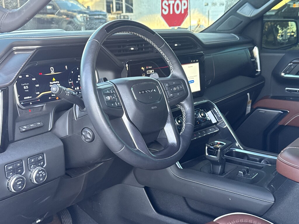 10-Speed Automatic, 4WD, Alpine Umber Leather, 12 Speakers, 120 Point Safety Inspection, 120-Volt Bed Mounted Power Outlet, 120-Volt Interior Power Outlet, 16-Way Power Driver Seat Adjuster w/Lumbar, 16-Way Power Passenger Seat Adjuster w/Lumbar, 170 Amp Alternator, 2 Charge/Data USB Ports Inside Center Console, 2 Type-C Charge-Only Rear USB Ports, 2 USB Ports, 22 WHEELS, 3.23 Rear Axle Ratio, 4-Wheel Disc Brakes, ABS brakes, Adaptive suspension, Air Conditioning, Alloy wheels, AM/FM radio: SiriusXM with 360L, Apple CarPlay/Android Auto, Auto High-beam Headlights, Auto-dimming door mirrors, Auto-dimming Rear-View mirror, Auto-Locking Rear Differential, Automatic temperature control, Bed View Camera, BLUETOOTH / HANDSFREE, Bose Premium Series w/12-Speaker System, Brake assist, Buckle to Drive, Bumpers: body-color, Chrome Recovery Hooks, CLEAN CARFAX!, Color-Keyed Carpeting Floor Covering, Compass, Deep-Tinted Glass, Delay-off headlights, Denali Premium Suspension w/Adaptive Ride Control, Driver door bin, Driver Memory, Driver vanity mirror, Dual Active Exhaust, Dual front impact airbags, Dual front side impact airbags, Electric Rear-Window Defogger, Electronic Stability Control, Emergency communication system: OnStar and GMC connected services capable, Enhanced Automatic Emergency Braking, Floor-Mounted Center Console, Following Distance Indicator, Forward Collision Alert, Front anti-roll bar, Front Bucket Seats, Front Center Armrest, Front dual zone A/C, Front fog lights, Front License Plate Kit, Front Pedestrian Braking, Front Rain-Sensing Wipers, Front reading lights, Front wheel independent suspension, Full Grain Leather Seat Trim, Fully automatic headlights, Garage door transmitter, Genuine wood console insert, Genuine wood dashboard insert, Genuine wood door panel insert, GMC Connected Access Capable, HD Surround Vision, Heads-Up Display, Heated 2nd Row Outboard Seats, Heated door mirrors, Heated Driver & Front Outboard Passenger Seating, Heated front seats, Heated rear seats, Heated steering wheel, Heavy-Duty Air Filter, Hill Descent Control, Hitch Guidance, Hitch View, Illuminated entry, In-Vehicle Trailering System App, Integrated Trailer Brake Controller, IntelliBeam Automatic High Beam On/Off, Keyless Open & Start, Lane Keep Assist w/Lane Departure Warning, LED Cargo Area Lighting, LOCAL TRADE IN!, Low tire pressure warning, Memory seat, Multicolor 15 Diagonal Head-Up Display, MultiPro Tailgate Audio System by Kicker (LPO), NAVIGATION, Navigation System, NON SMOKER VEHICLE, Occupant sensing airbag, OnStar & GMC Connected Services Capable, Outside temperature display, Overhead airbag, Overhead console, Panic alarm, Passenger door bin, Passenger vanity mirror, Perimeter Lighting, Power Door Locks, Power door mirrors, Power driver seat, Power Front Passenger Windows w/Express Up/Down, Power Front Windows w/Driver Express Up/Down, Power moonroof, Power passenger seat, Power Rake & Telescoping Steering Column, Power Rear Windows w/Express Down, Power Sliding Rear Window w/Rear Defogger, Power steering, Power Sunroof, Power windows, Preferred Equipment Group 5SB, Premium audio system: GMC Infotainment System, PROFESSIONALLY DETAILED FOR DELIVERY!, Push Button Start, Radio data system, Radio: Premium GMC Infotainment Audio System, Rain sensing wipers, Rear Cross Traffic Braking, Rear Pedestrian Detection, Rear reading lights, Rear seat center armrest, Rear step bumper, Rear Wheelhouse Liners, Rear window defroster, Remote keyless entry, Remote Vehicle Starter System, Safety Alert Seat, Security system, SiriusXM w/360L, Speed control, Speed-sensing steering, Split folding rear seat, Spray-On Pickup Bedliner w/Denali Logo, Steering Wheel Audio Controls, Steering wheel mounted audio controls, SUNROOF/MOONROOF, Super Cruise, SUPER LOW MILES!, Tachometer, Telescoping steering wheel, Theft Deterrent System (Unauthorized Entry), Tilt steering wheel, Traction control, Trailer Camera Provisions, Trailer Side Blind Zone Alert, Trai