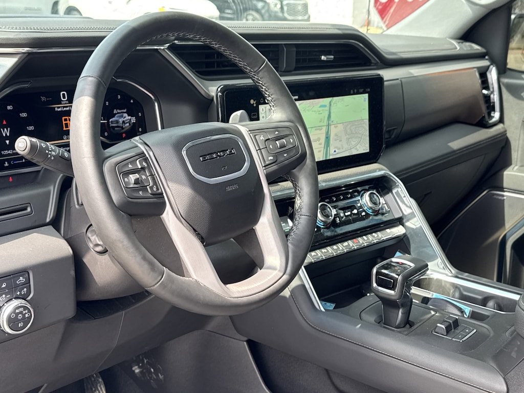 10-Speed Automatic, 4WD, Jet Black w/Leather-Appointed Seat Trim, 12-Way Power Driver Seat Adjuster w/Lumbar, 12-Way Power Passenger Seat Adjuster w/Lumbar, 120 Point Safety Inspection, 120-Volt Bed Mounted Power Outlet, 120-Volt Interior Power Outlet, 170 Amp Alternator, 2 Charge/Data USB Ports Inside Center Console, 2 Type-C Charge-Only Rear USB Ports, 2 USB Ports, 20 WHEELS, 3.23 Rear Axle Ratio, 4-Wheel Disc Brakes, 7 Speakers, ABS brakes, Adaptive suspension, Air Conditioning, Alloy wheels, AM/FM radio: SiriusXM with 360L, Apple CarPlay/Android Auto, Auto High-beam Headlights, Auto-dimming door mirrors, Auto-dimming Rear-View mirror, Auto-Locking Rear Differential, Automatic temperature control, Auxiliary External Transmission Oil Cooler, Bed View Camera, BLUETOOTH / HANDSFREE, Brake assist, Buckle to Drive, Bumpers: body-color, Chrome Header w/Signature Denali Chrome Grille, Chrome Recovery Hooks, Chrome Wheel To Wheel Assist Steps, CLEAN CARFAX!, Color-Keyed Carpeting Floor Covering, Compass, Deep-Tinted Glass, Delay-off headlights, Denali Premium Suspension w/Adaptive Ride Control, Driver door bin, Driver Memory, Driver vanity mirror, Dual front impact airbags, Dual front side impact airbags, Electric Rear-Window Defogger, Electronic Stability Control, Emergency communication system: OnStar and GMC connected services capable, Enhanced Automatic Emergency Braking, Floor-Mounted Center Console, Following Distance Indicator, Forge Perforated Leather Seat Trim, Forward Collision Alert, Front anti-roll bar, Front Bucket Seats, Front Center Armrest, Front dual zone A/C, Front fog lights, Front Pedestrian Braking, Front Rain-Sensing Wipers, Front reading lights, Front wheel independent suspension, Fully automatic headlights, Garage door transmitter, Genuine wood console insert, Genuine wood dashboard insert, Genuine wood door panel insert, GMC Connected Access Capable, HD Surround Vision, Heated 2nd Row Outboard Seats, Heated door mirrors, Heated Driver & Front Outboard Passenger Seating, Heated front seats, Heated rear seats, Heated steering wheel, Heavy-Duty Air Filter, Hill Descent Control, Hitch Guidance, Hitch View, Illuminated entry, In-Vehicle Trailering System App, Integrated Trailer Brake Controller, IntelliBeam Automatic High Beam On/Off, Keyless Open & Start, Lane Keep Assist w/Lane Departure Warning, LED Cargo Area Lighting, LOCAL TRADE IN!, Low tire pressure warning, Memory seat, NAVIGATION, Navigation System, NON SMOKER VEHICLE, Occupant sensing airbag, OnStar & GMC Connected Services Capable, Outside temperature display, Overhead airbag, Overhead console, Panic alarm, Passenger door bin, Passenger vanity mirror, Perimeter Lighting, Power Door Locks, Power door mirrors, Power driver seat, Power Front Passenger Windows w/Express Up/Down, Power Front Windows w/Driver Express Up/Down, Power passenger seat, Power Rake & Telescoping Steering Column, Power Rear Windows w/Express Down, Power Sliding Rear Window w/Rear Defogger, Power steering, Power Sunroof, Power windows, Preferred Equipment Group 5SA, Premium audio system: GMC Infotainment System, Premium Bose 7-Speaker Sound System, PROFESSIONALLY DETAILED FOR DELIVERY!, Push Button Start, Pwr-Adjustable Vertical Trailering Outside Mirrors, Radio data system, Radio: Premium GMC Infotainment Audio System, Rain sensing wipers, Rear Cross Traffic Braking, Rear Pedestrian Detection, Rear reading lights, Rear seat center armrest, Rear step bumper, Rear Wheelhouse Liners, Rear window defroster, Remote keyless entry, Remote Vehicle Starter System, Safety Alert Seat, Security system, SiriusXM w/360L, Speed control, Speed-sensing steering, Split folding rear seat, Spray-On Pickup Bedliner w/Denali Logo, Steering Wheel Audio Controls, Steering wheel mounted audio controls, SUNROOF/MOONROOF, SUPER LOW MILES!, Tachometer, Telescoping steering wheel, Theft Deterrent System (Unauthorized Entry), Tilt steering wheel, Traction control, Trailer Camera Provisions, Trailer Side Blind