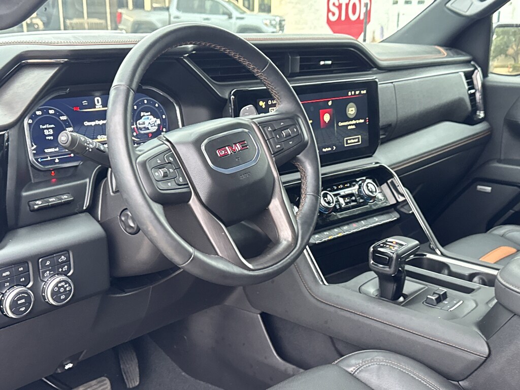 10-Speed Automatic, 4WD, Jet Black With Kalahari Accents Leather, 10-Way Power Driver Seat Adjuster w/Lumbar, 10-Way Power Passenger Seat Adjuster w/Lumbar, 120 Point Safety Inspection, 120-Volt Bed Mounted Power Outlet, 120-Volt Interior Power Outlet, 170 Amp Alternator, 18 WHEELS, 18 x 8.5 Machined Aluminum Wheels, 2 Charge/Data USB Ports Inside Center Console, 2 Type-C Charge-Only Rear USB Ports, 2 USB Ports, 220 Amp Alternator, 3.23 Rear Axle Ratio, 4-Wheel Disc Brakes, 7 Speakers, ABS brakes, Air Conditioning, Alloy wheels, AM/FM radio: SiriusXM with 360L, Apple CarPlay/Android Auto, AT4 Preferred Package, AT4 Premium Package, Auto High-beam Headlights, Auto-dimming door mirrors, Auto-dimming Rear-View mirror, Auto-Locking Rear Differential, Automatic Emergency Braking, Automatic temperature control, Auxiliary External Transmission Oil Cooler, Bed View Camera, Black Chrome Header & Grille Insert Bars, Black Sport Step (LPO), Block heater, BLUETOOTH / HANDSFREE, Brake assist, Buckle to Drive, Bumpers: body-color, CLEAN CARFAX!, Color-Keyed Carpeting Floor Covering, Compass, Deep-Tinted Glass, Delay-off headlights, Driver door bin, Driver Memory, Driver vanity mirror, Dual Active Exhaust, Dual front impact airbags, Dual front side impact airbags, Electric Rear-Window Defogger, Electronic Stability Control, External Engine Oil Cooling, Floor-Mounted Center Console, Following Distance Indicator, Forward Collision Alert, Front anti-roll bar, Front Bucket Seats, Front Center Armrest, Front dual zone A/C, Front fog lights, Front License Plate Kit, Front Pedestrian Braking, Front Prem Floor Liners w/Removable Carpet Insert, Front Rain-Sensing Wipers, Front reading lights, Front wheel independent suspension, Fully automatic headlights, GMC Connected Access Capable, GMC MultiPro Tailgate Step Lights (LPO), HD Surround Vision, Heated 2nd Row Outboard Seats, Heated door mirrors, Heated Driver & Front Outboard Passenger Seating, Heated front seats, Heated rear seats, Heated steering wheel, Heavy-Duty Air Filter, Hill Descent Control, Hitch Guidance, Hitch View, Illuminated entry, In-Vehicle Trailering System App, Integrated Trailer Brake Controller, IntelliBeam Automatic High Beam On/Off, Keyless Open & Start, Lane Keep Assist w/Lane Departure Warning, LED Cargo Area Lighting, LOCAL TRADE IN!, Low tire pressure warning, Memory seat, Multicolor 15 Diagonal Head-Up Display, NAVIGATION, Navigation System, NON SMOKER VEHICLE, Occupant sensing airbag, Off-Road High Clearance Step (LPO), Off-Road Suspension, OnStar & GMC Connected Services Capable, Outside temperature display, Overhead airbag, Overhead console, Panic alarm, Passenger door bin, Passenger vanity mirror, Perforated Front Leather Seat Trim, Perimeter Lighting, Power Door Locks, Power door mirrors, Power driver seat, Power Front Passenger Windows w/Express Up/Down, Power Front Windows w/Driver Express Up/Down, Power passenger seat, Power Rake & Telescoping Steering Column, Power Rear Windows w/Express Down, Power Sliding Rear Window w/Rear Defogger, Power steering, Power Sunroof, Power windows, Preferred Equipment Group 4SB, Premium audio system: GMC Infotainment System, Premium Bose 7-Speaker Sound System, PROFESSIONALLY DETAILED FOR DELIVERY!, Push Button Start, Radio data system, Radio: Premium GMC Infotainment Audio System, Rain sensing wipers, Rear Camera Mirror, Rear Cross Traffic Braking, Rear Pedestrian Detection, Rear Prem Floor Liners w/Removable Carpet Insert, Rear reading lights, Rear seat center armrest, Rear step bumper, Rear Underseat Storage (LPO), Rear Wheelhouse Liners, Rear window defroster, Red Recovery Hooks, Remote keyless entry, Remote Vehicle Starter System, Safety Alert Seat, Security system, SiriusXM w/360L, Speed control, Speed-sensing steering, Split folding rear seat, Spray-On Pickup Bedliner w/AT4 Logo, Steering Wheel Audio Controls, Steering wheel mounted audio controls, SUNROOF/MOONROOF, SUPER LOW MILES!, Tachometer, Technology Package, Telesc